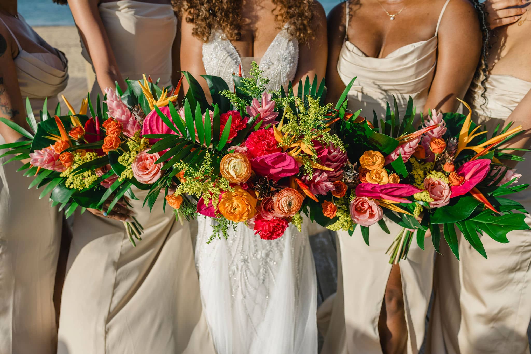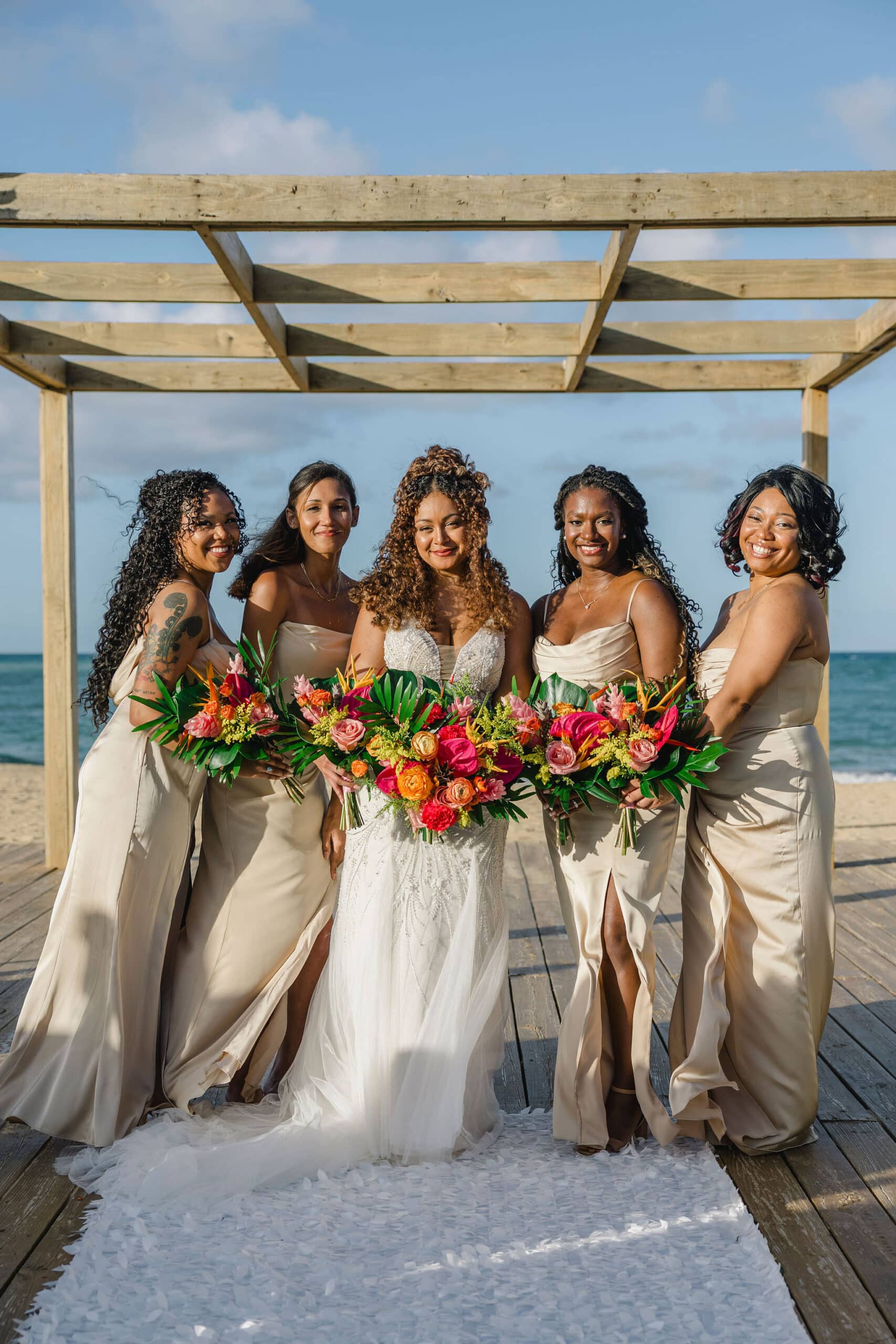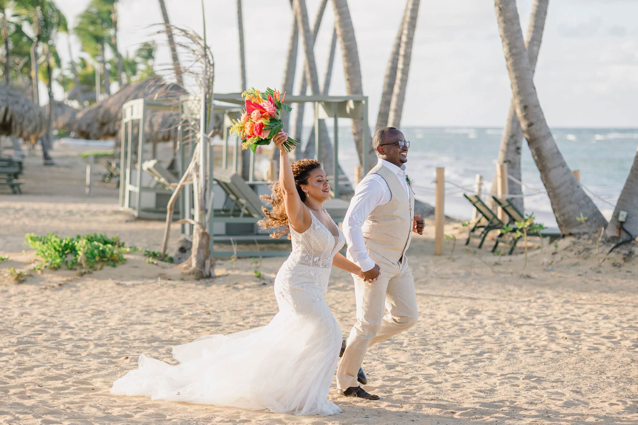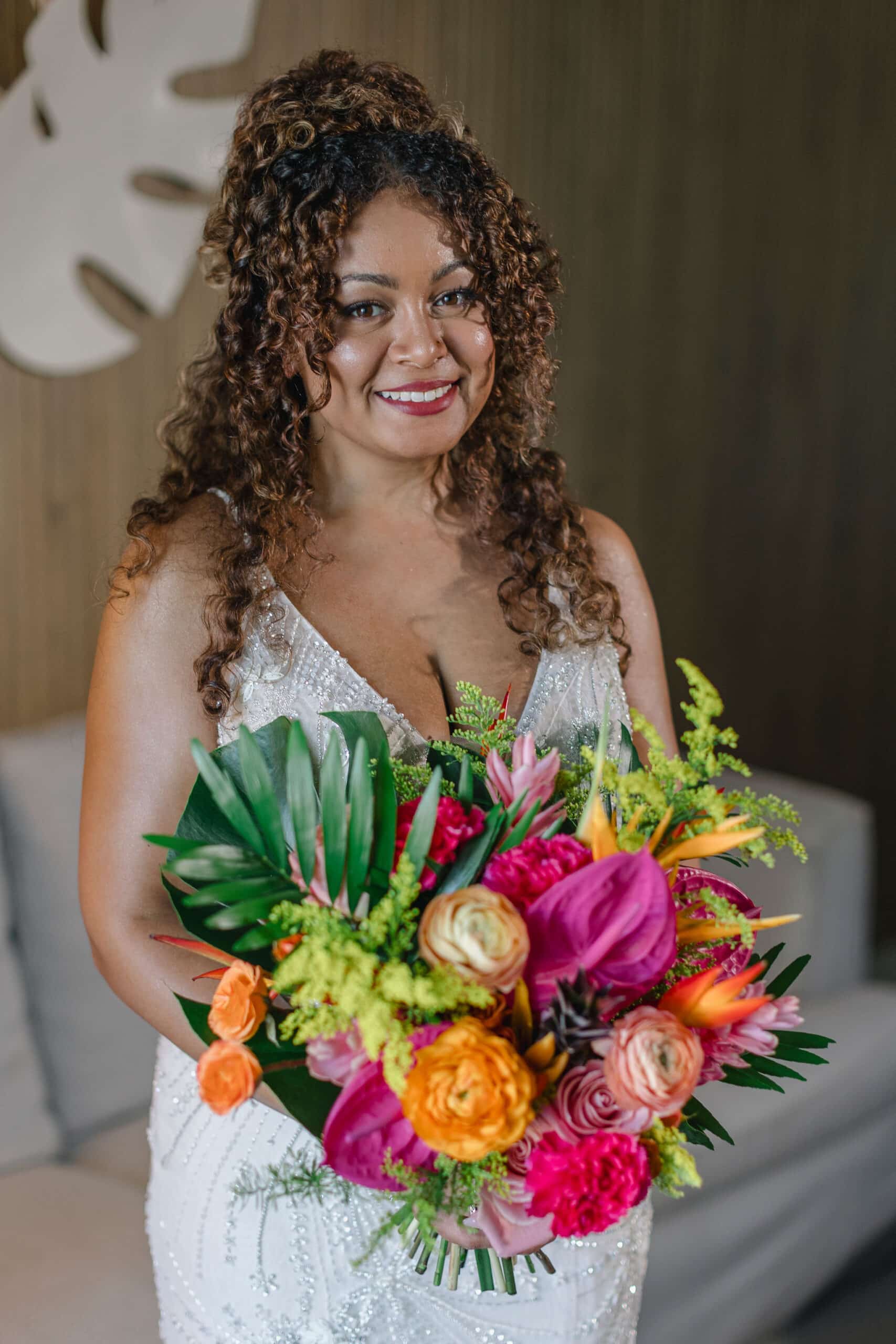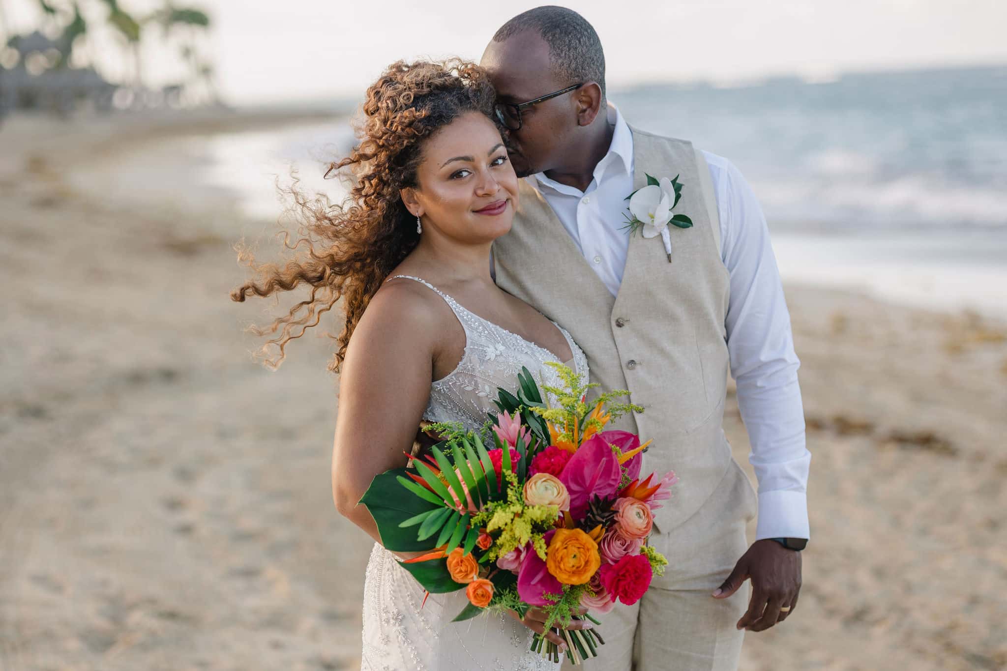 Brittany and Nixon’s wedding at Finest Resorts Punta Cana was a celebration bursting with color, energy, and heartfelt emotion. From the vibrant tropical florals to the serene sea breeze that welcomed their guests, every detail was crafted with intention and love. The bride’s bouquet, an explosion of pinks, oranges, and lush greens, set the tone for a joyful and visually stunning day. As she got ready in her elegant suite, laughter and anticipation filled the air. Nixon’s neutral-toned vest and natural backdrop highlighted the perfect blend of casual beach style and refined sophistication.