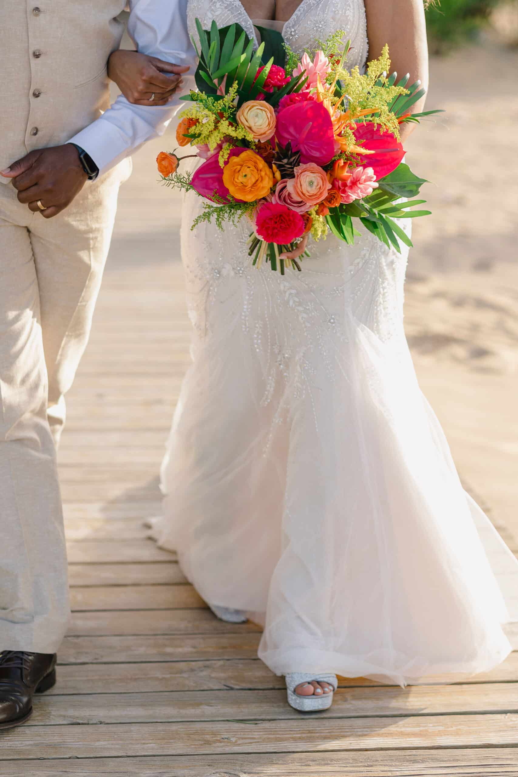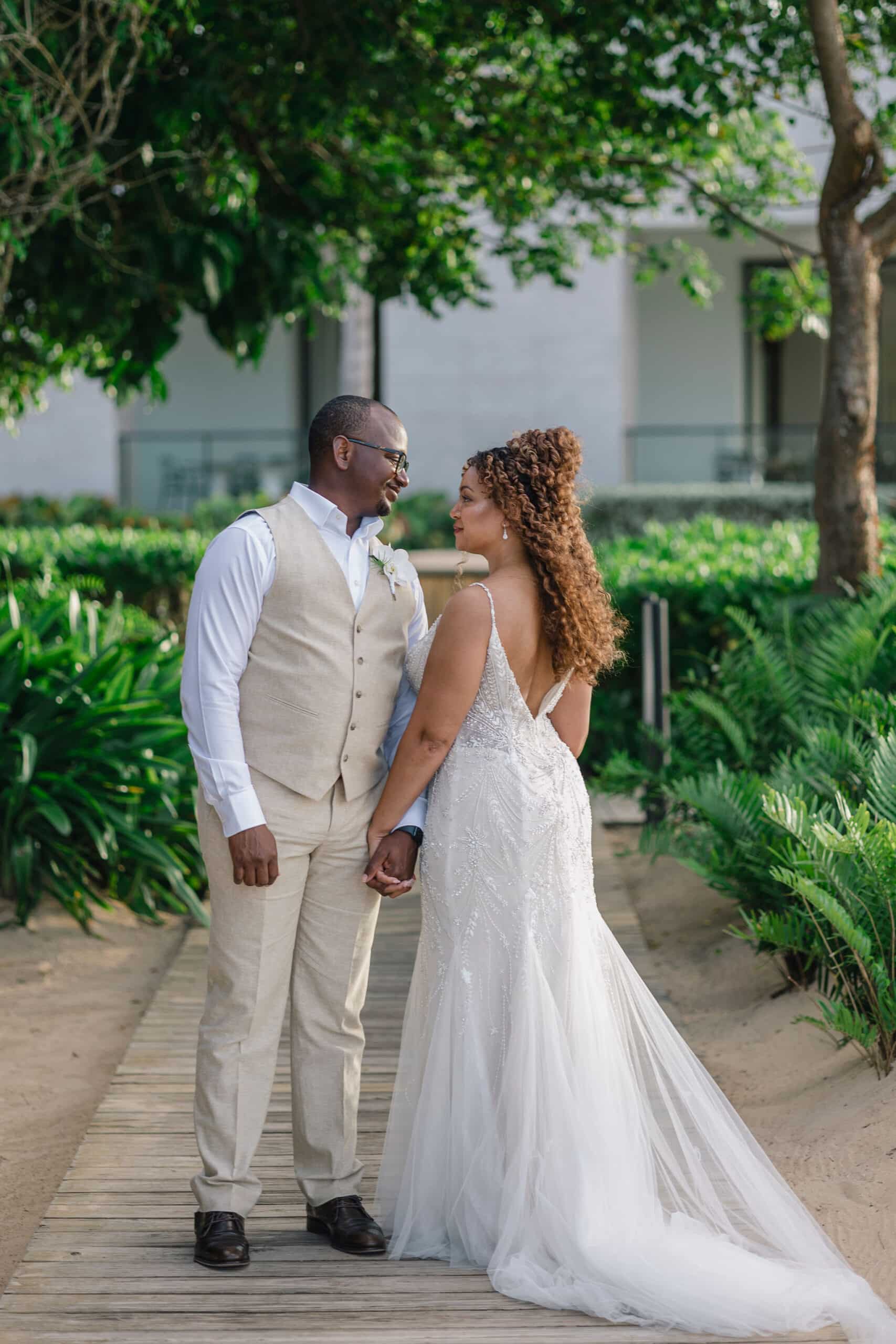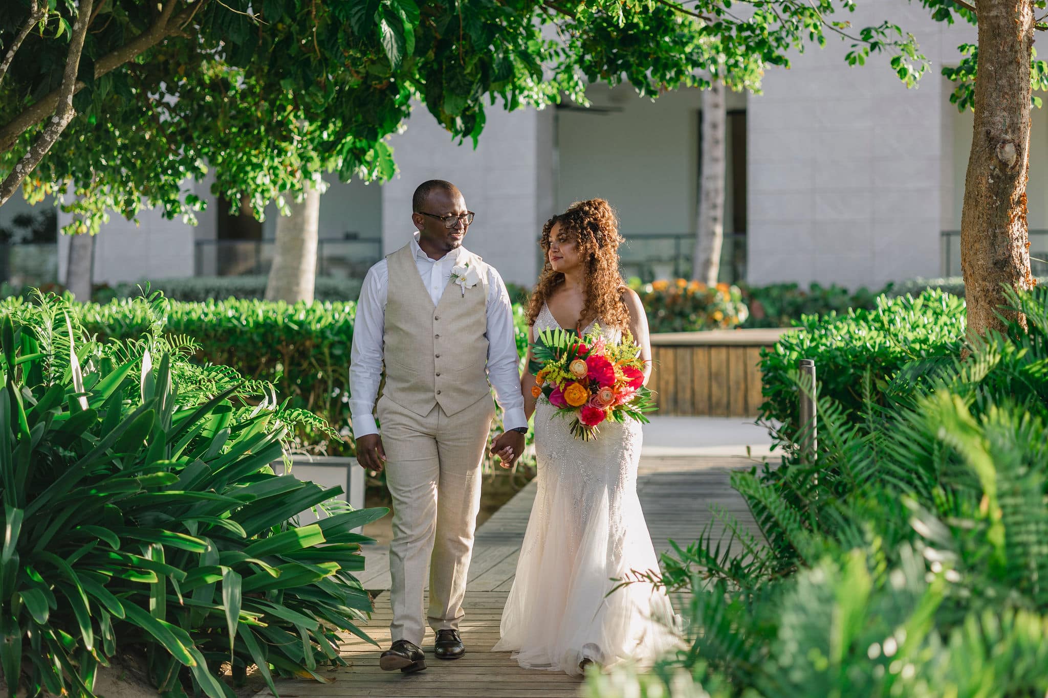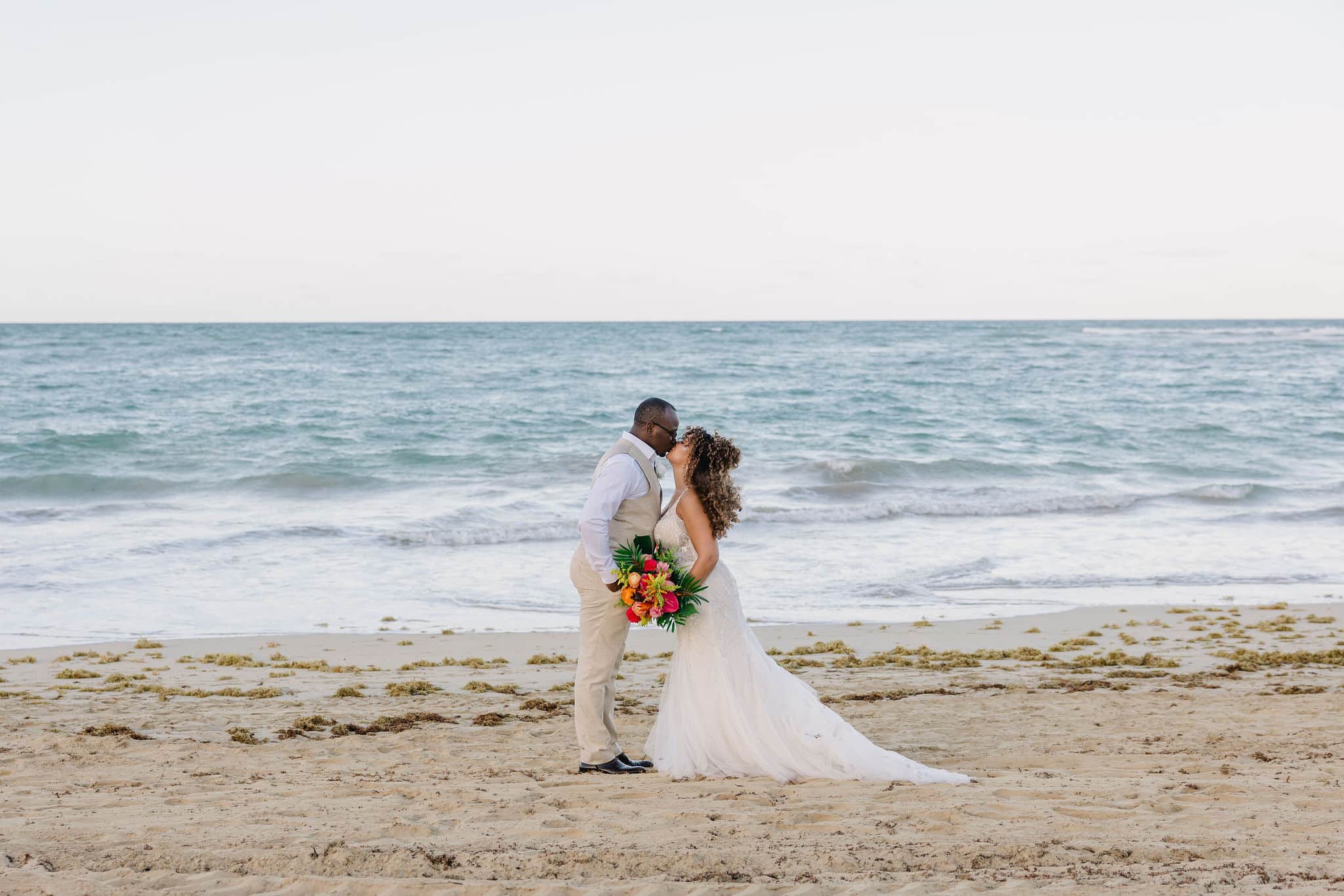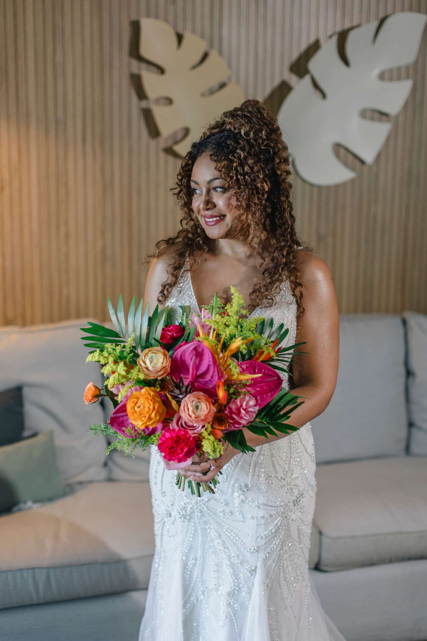 Brittany and Nixon’s wedding at Finest Resorts Punta Cana was a celebration bursting with color, energy, and heartfelt emotion. From the vibrant tropical florals to the serene sea breeze that welcomed their guests, every detail was crafted with intention and love. The bride’s bouquet, an explosion of pinks, oranges, and lush greens, set the tone for a joyful and visually stunning day. As she got ready in her elegant suite, laughter and anticipation filled the air. Nixon’s neutral-toned vest and natural backdrop highlighted the perfect blend of casual beach style and refined sophistication.