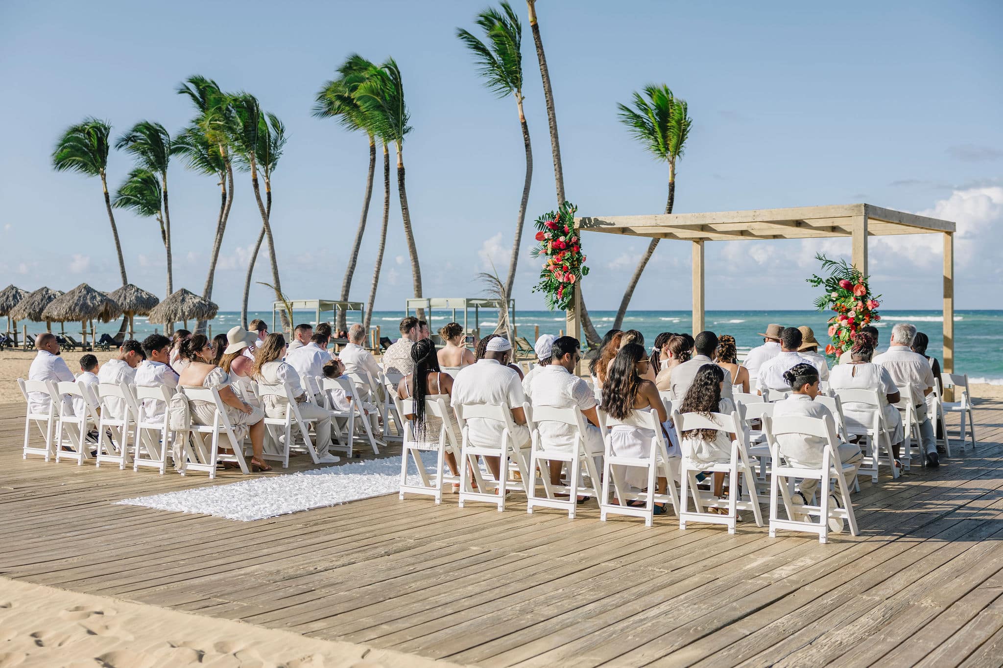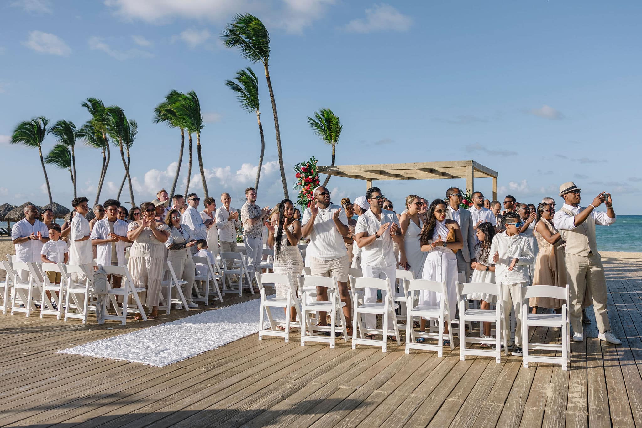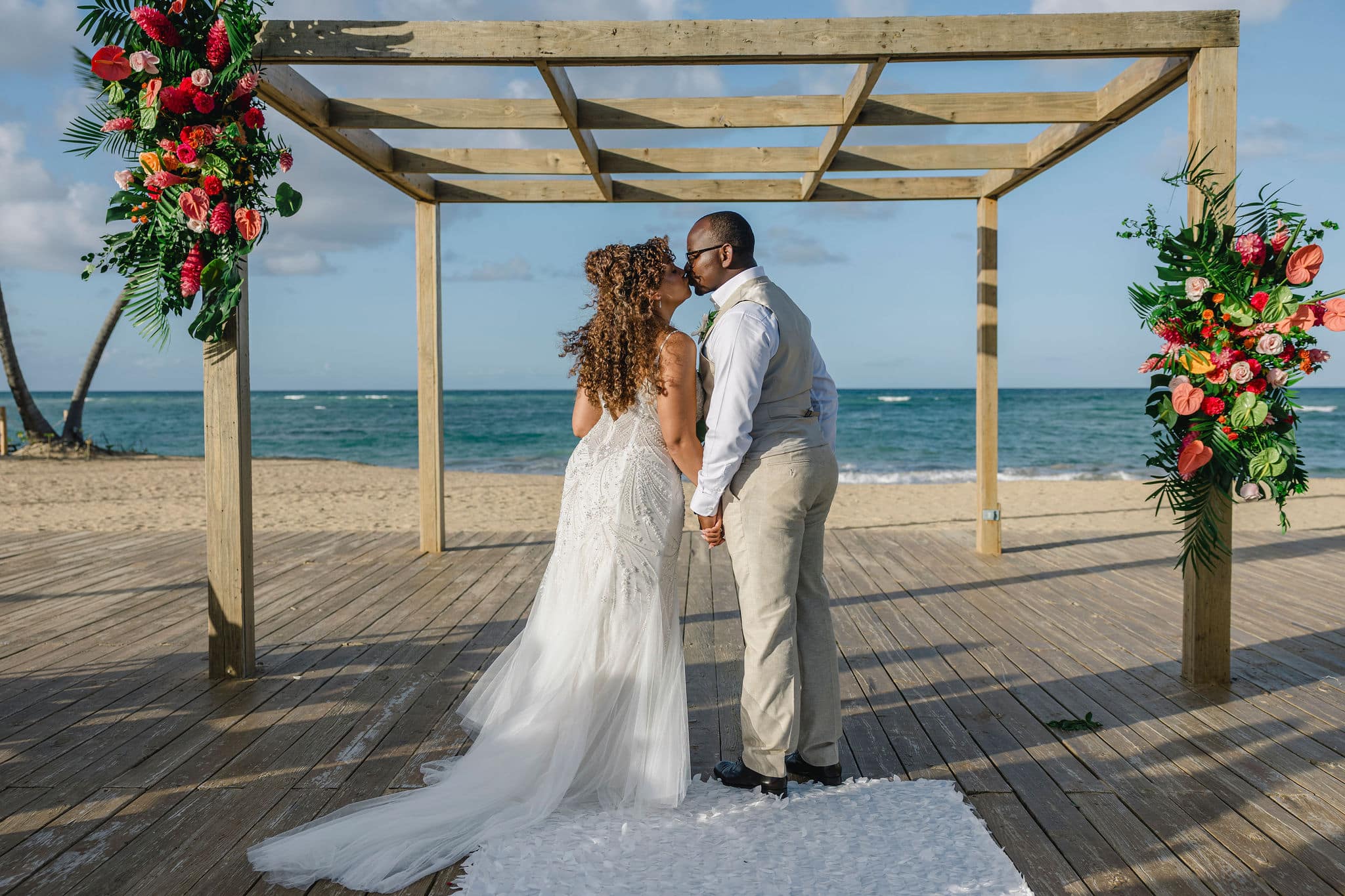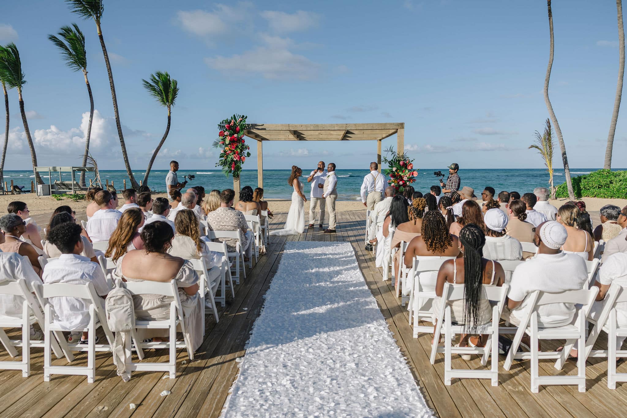 As the sun began to set, the celebration continued with elegance and warmth. The reception, held on a spacious wooden deck by the beach, was filled with laughter, dancing, and heartfelt toasts. The decor, from the flower-adorned cake to the romantic table settings, reflected the couple’s unique taste—fresh, colorful, and full of life. Brittany and Nixon’s wedding wasn’t just a ceremony; it was a full-sensory experience, crafted to reflect their love, heritage, and joy. Capturing these unforgettable moments at Finest Resorts Punta Cana was an absolute honor for our team.