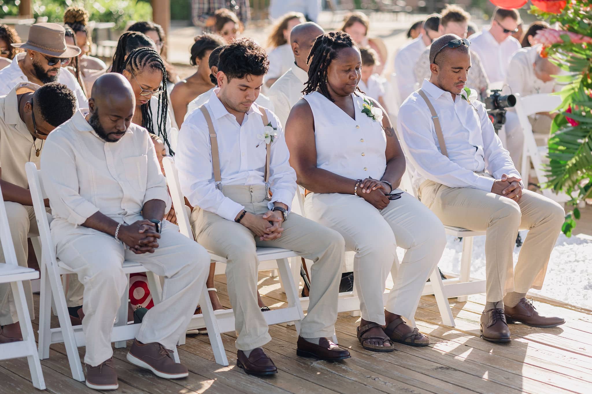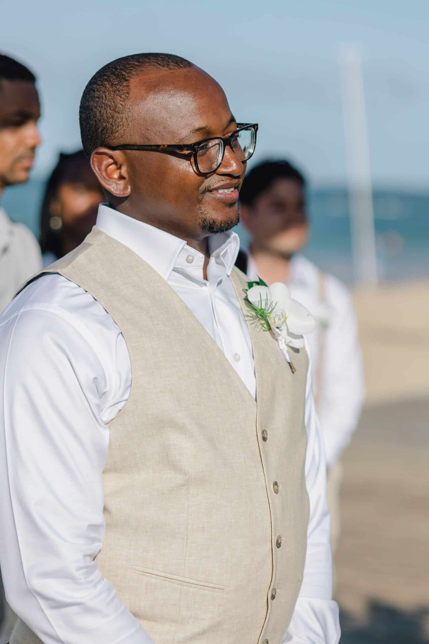 Their beachfront ceremony was nothing short of breathtaking. Set against a bright turquoise sea, the aisle was lined with white petals and flanked by tropical arrangements that echoed the vibrant Caribbean landscape. Guests gathered in warm neutral tones, and the couple exchanged vows under a wooden arch adorned with vivid florals. Intimate moments of prayer, joyful tears, and bursts of laughter created a deeply meaningful atmosphere. Every glance and gesture between Brittany and Nixon reflected their strong bond and the beautiful future they’re stepping into.