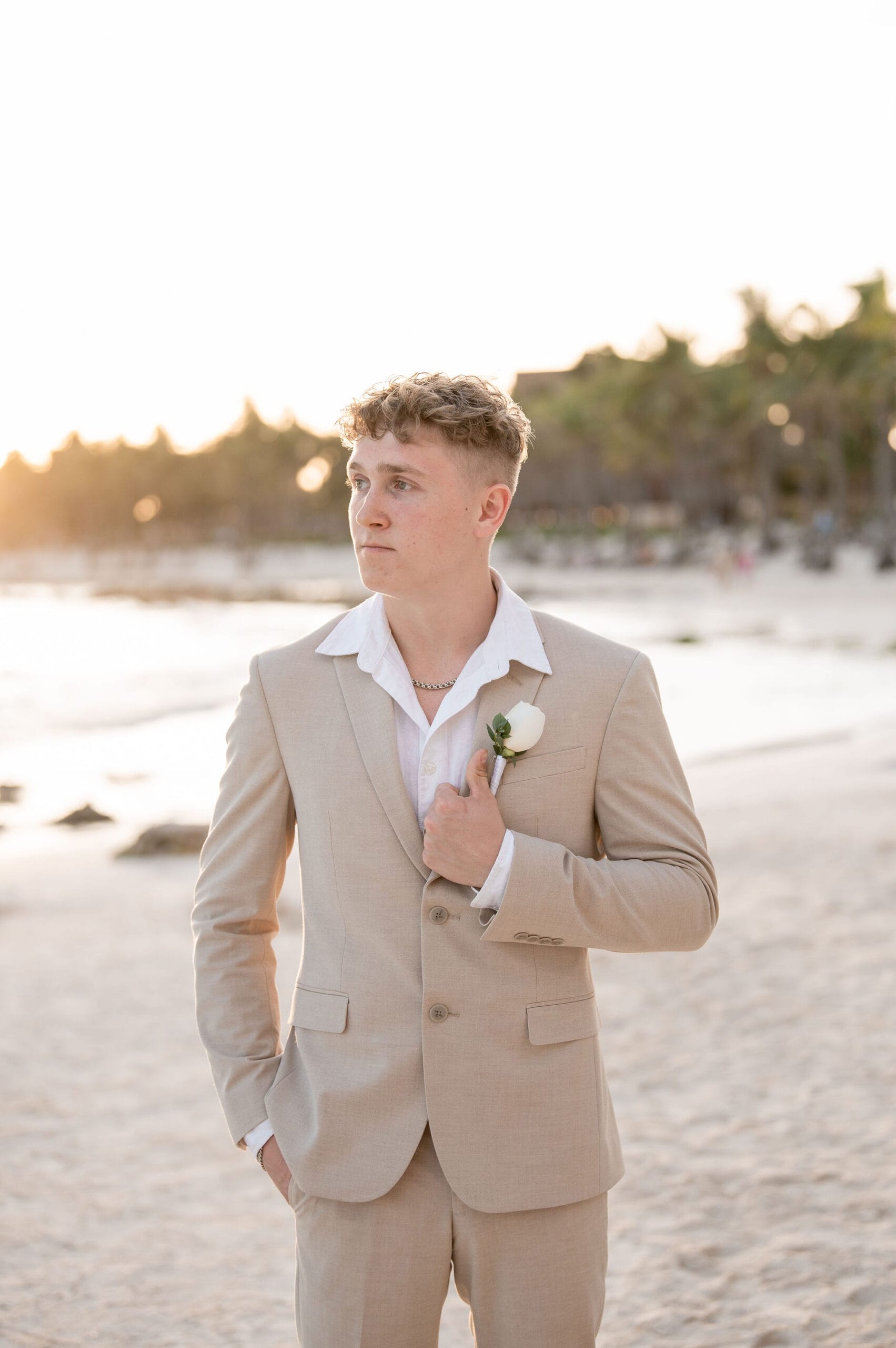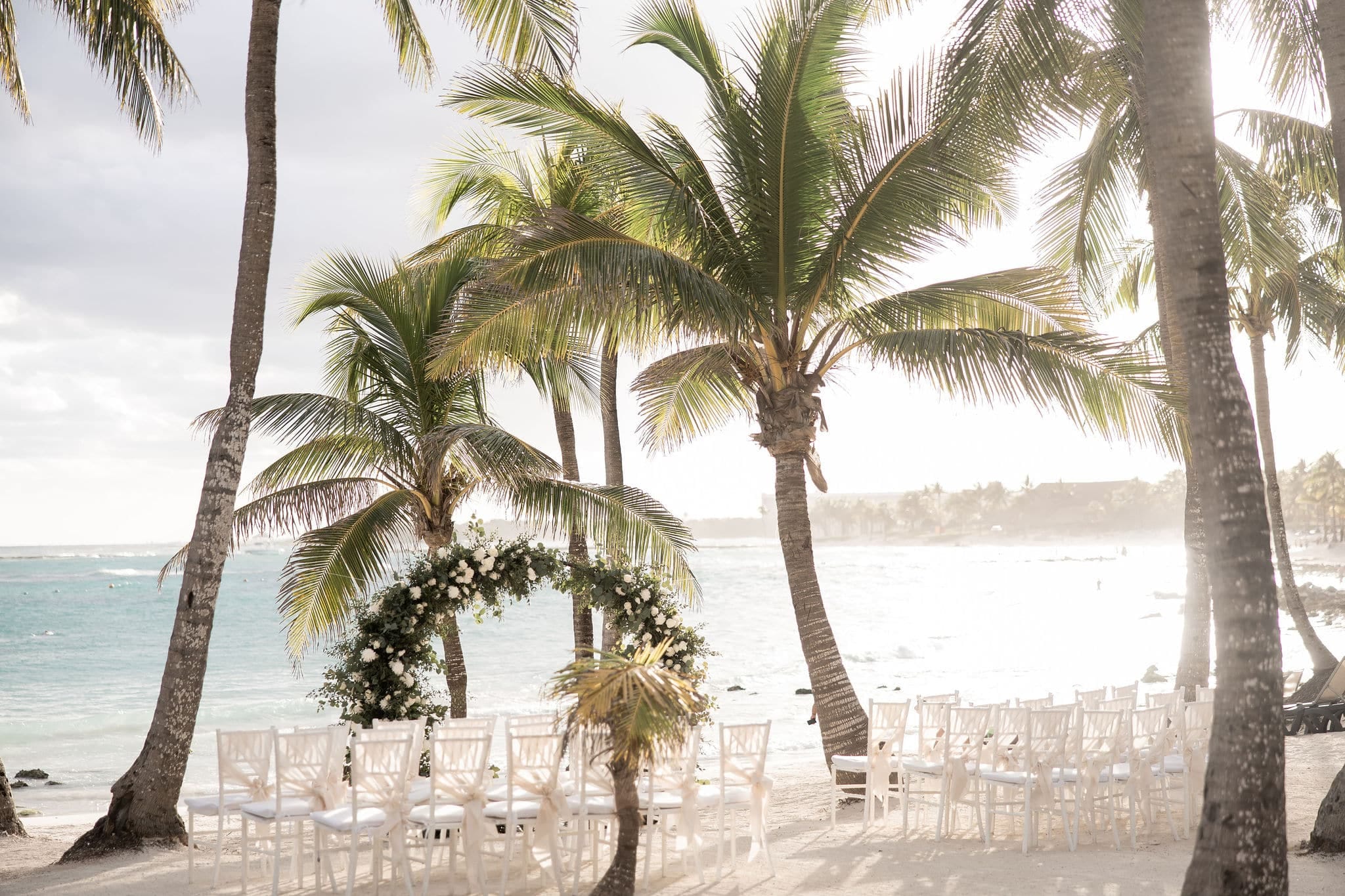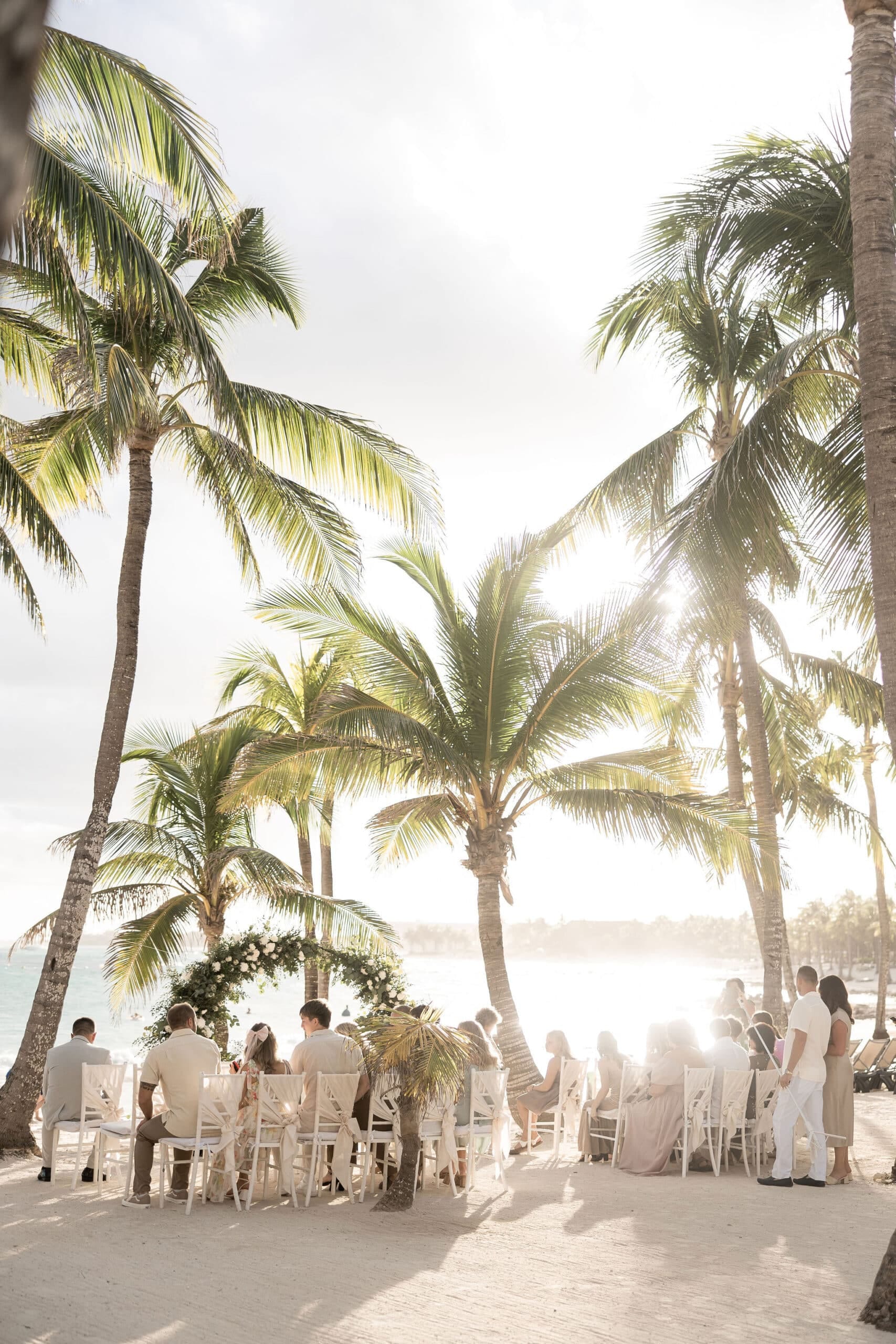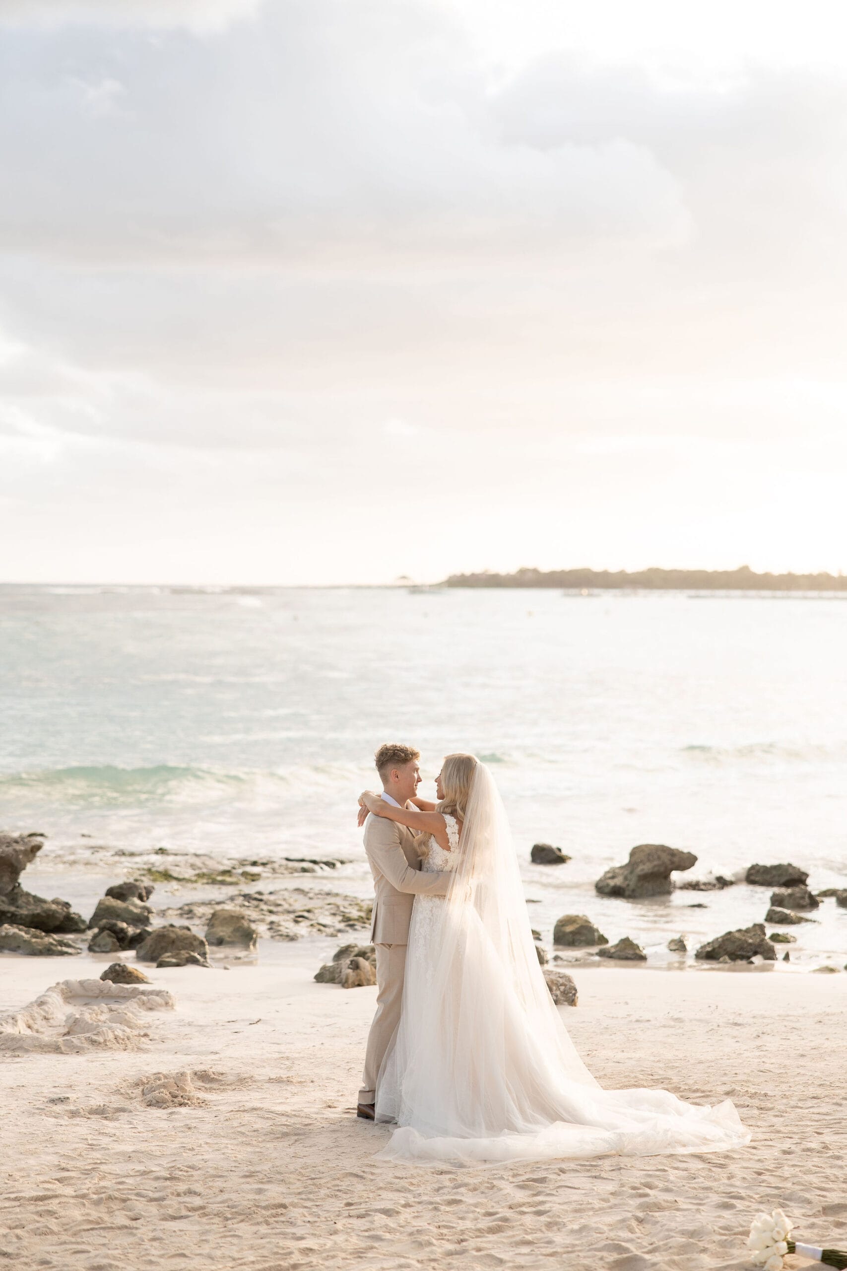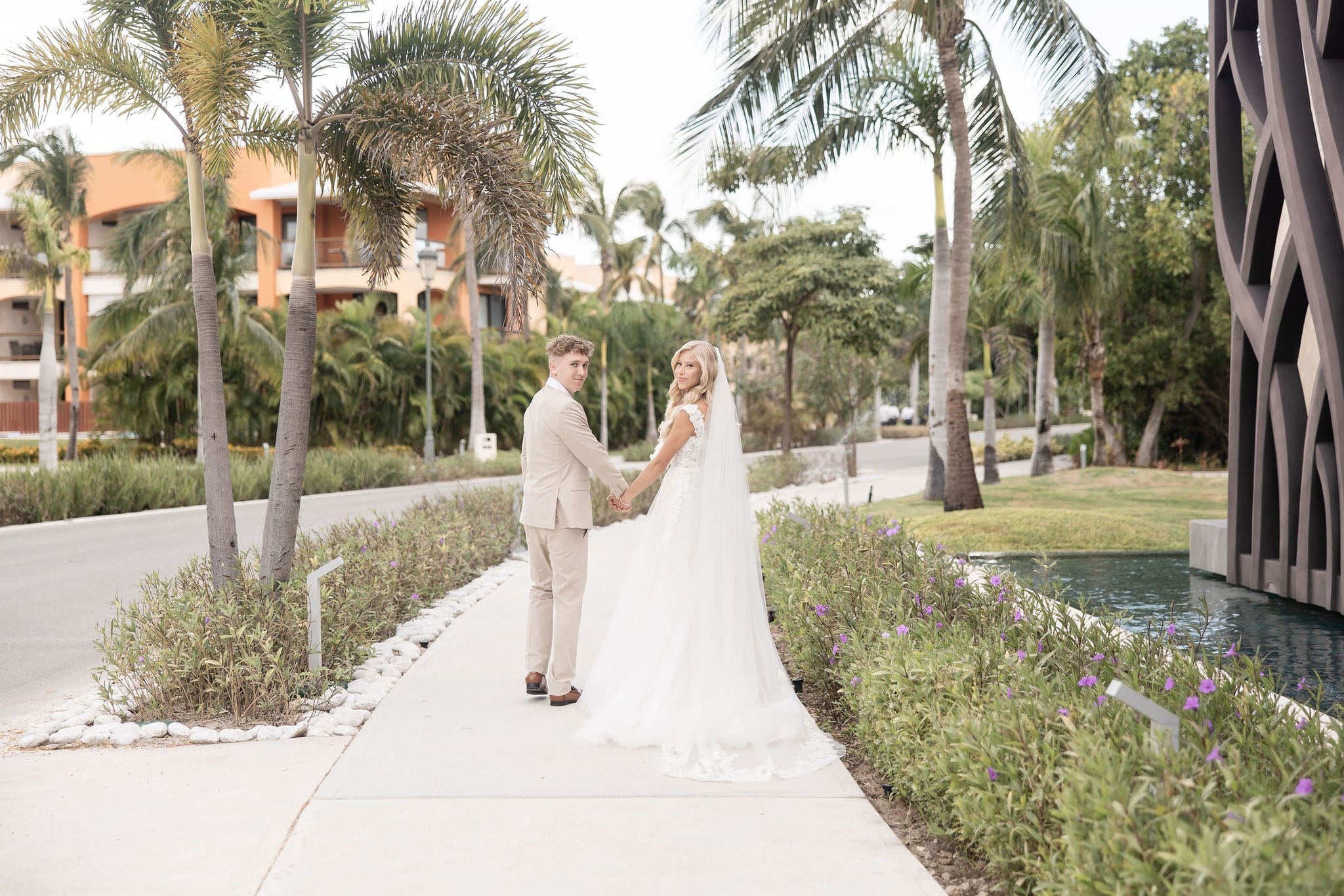 Deanna and Timothy’s wedding at Barceló Maya Palace was a breathtaking celebration set along the stunning Riviera Maya coastline. The couple exchanged vows under a romantic floral arch, with the turquoise waters of the Caribbean and swaying palm trees providing the perfect backdrop. Deanna, radiant in her lace gown and carrying a bouquet of pristine white roses, walked down the sandy aisle to meet Timothy, who was beaming with joy. The natural beauty of the beachfront setting, combined with elegant decor and the golden glow of the setting sun, created a truly magical atmosphere for their ceremony.