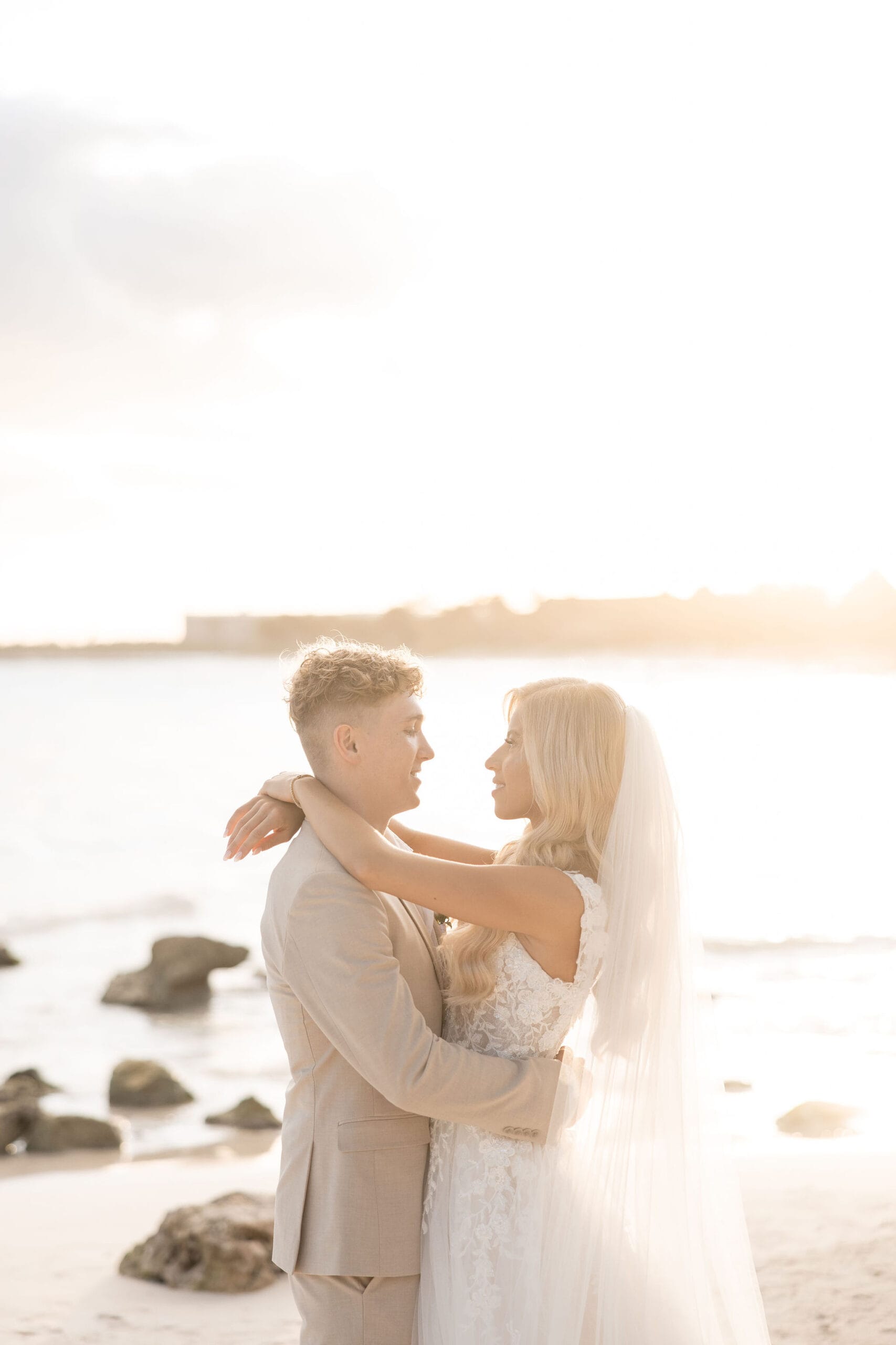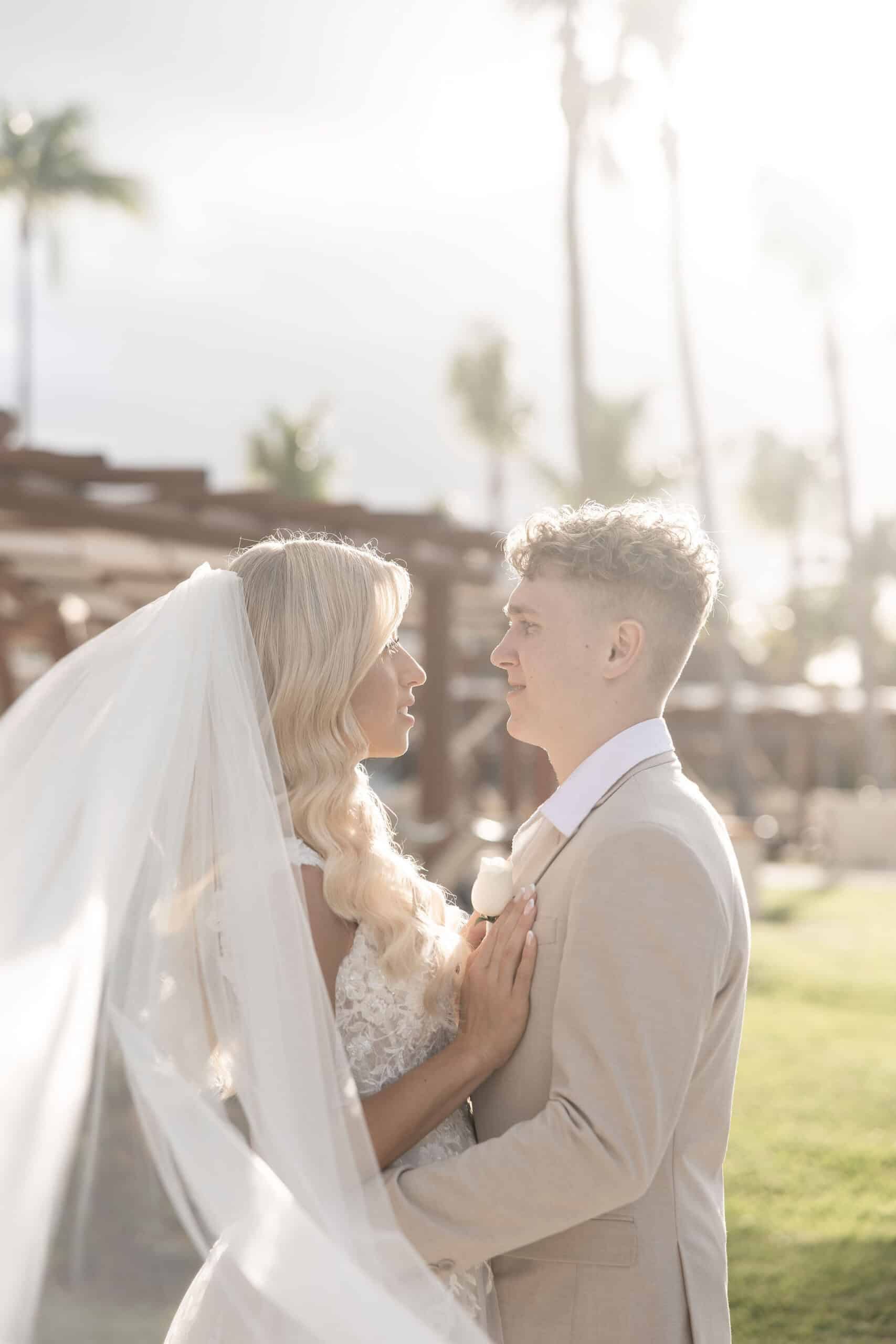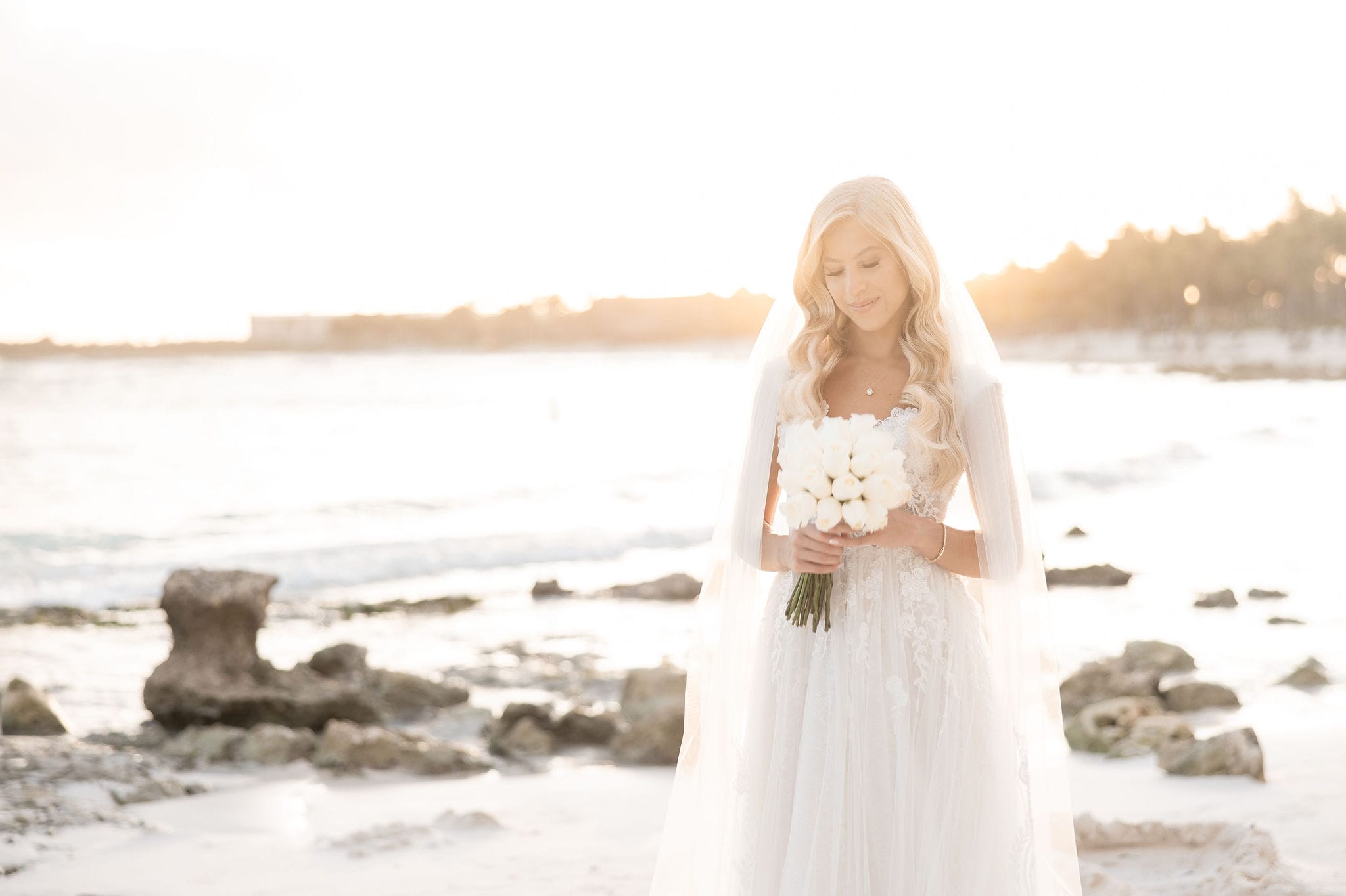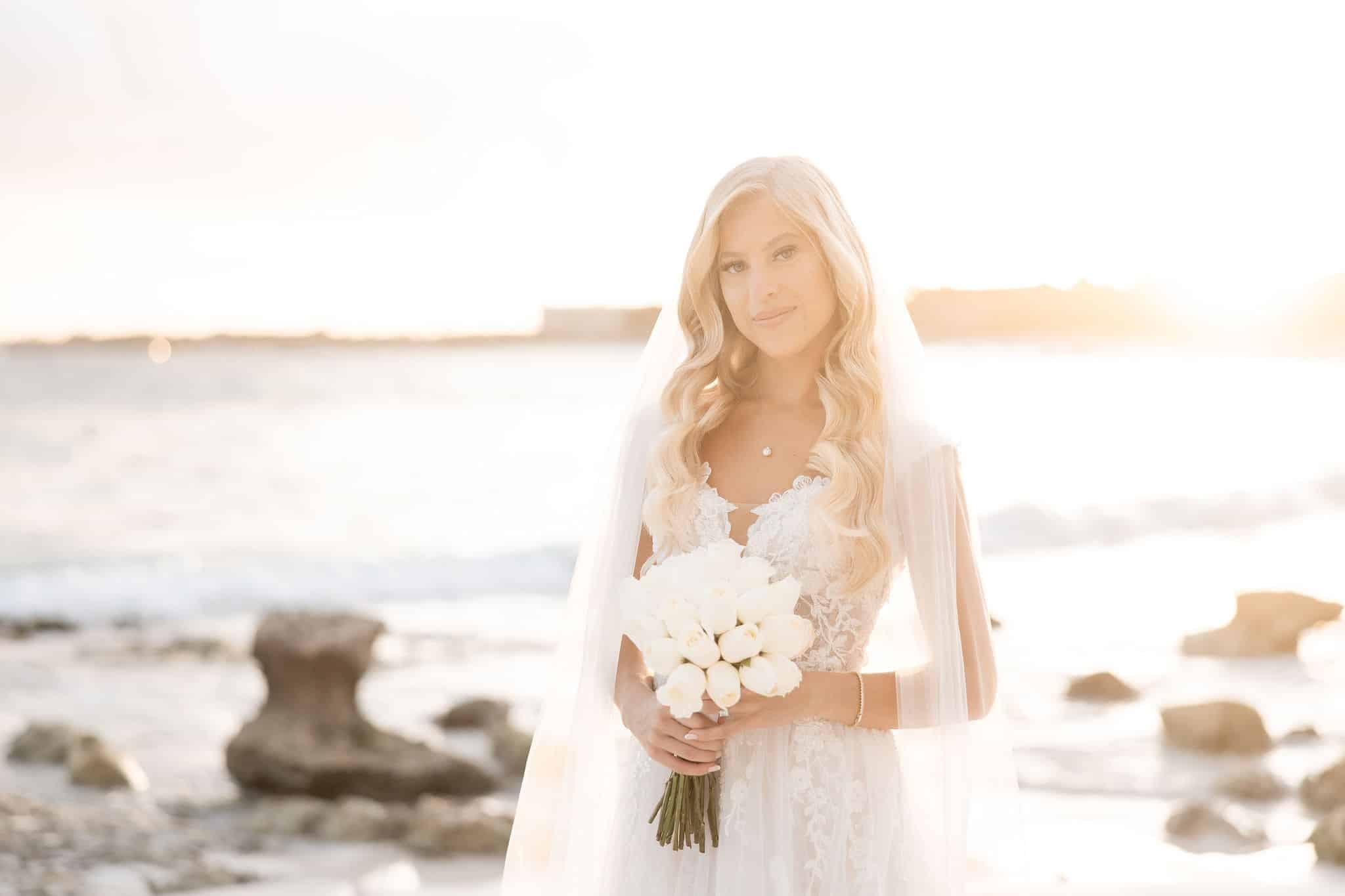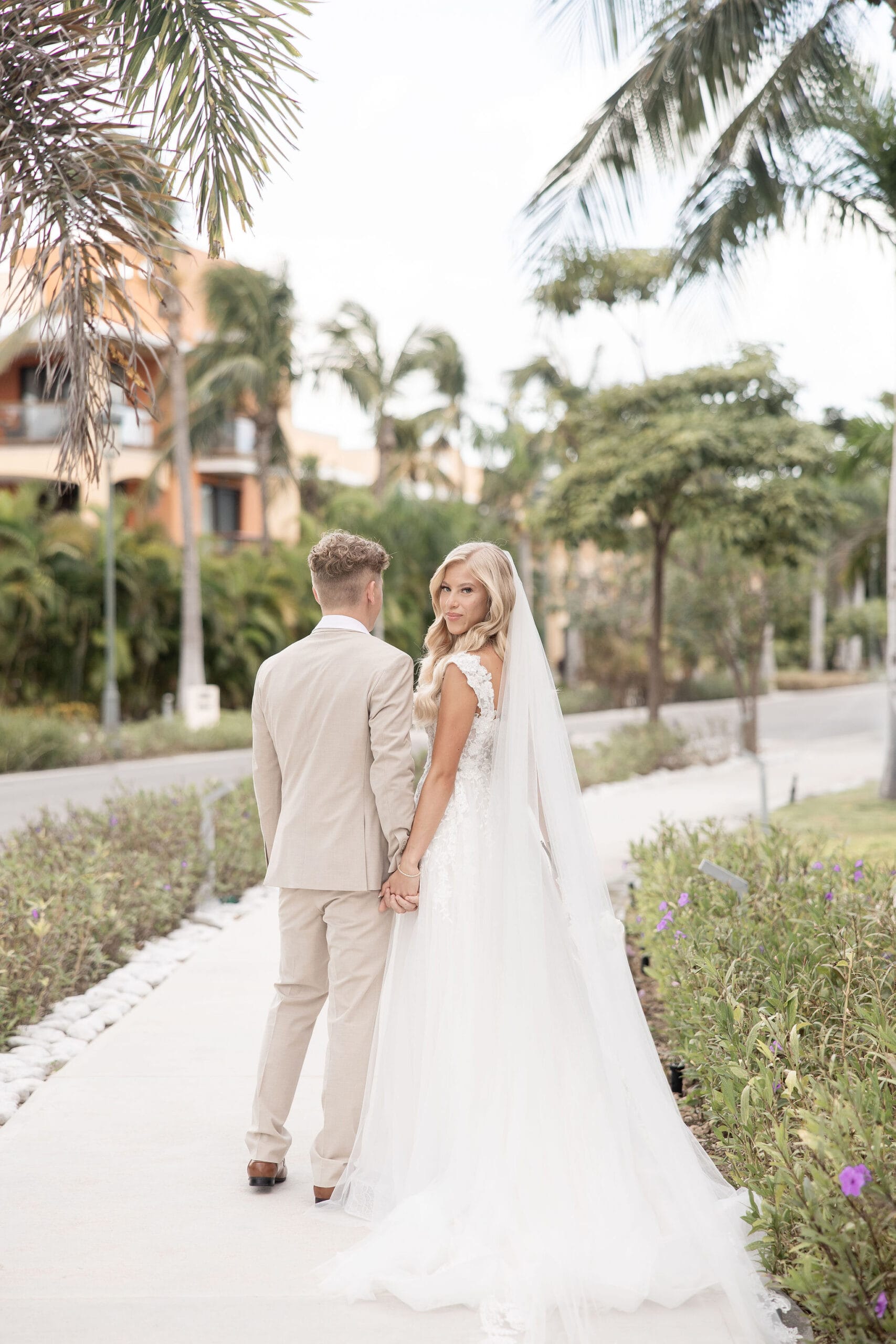 Deanna and Timothy’s wedding at Barceló Maya Palace was a breathtaking celebration set along the stunning Riviera Maya coastline. The couple exchanged vows under a romantic floral arch, with the turquoise waters of the Caribbean and swaying palm trees providing the perfect backdrop. Deanna, radiant in her lace gown and carrying a bouquet of pristine white roses, walked down the sandy aisle to meet Timothy, who was beaming with joy. The natural beauty of the beachfront setting, combined with elegant decor and the golden glow of the setting sun, created a truly magical atmosphere for their ceremony.