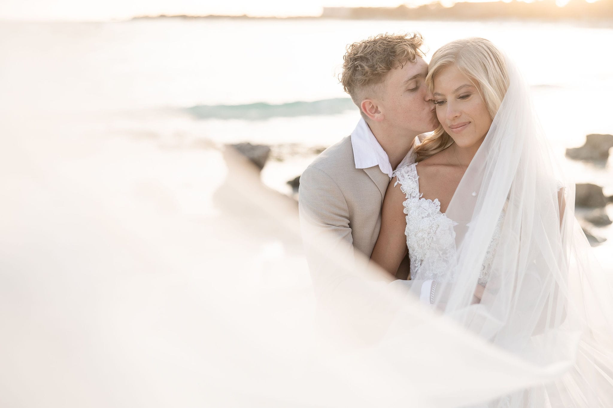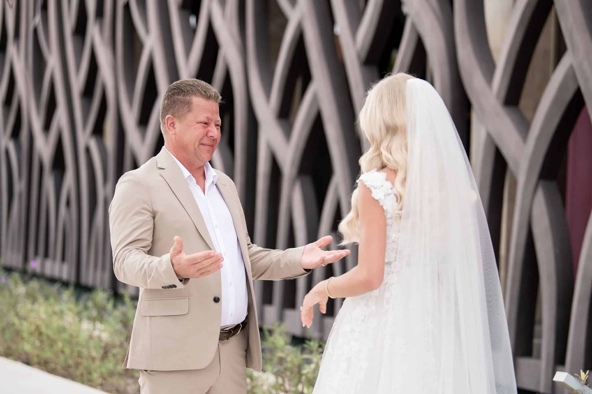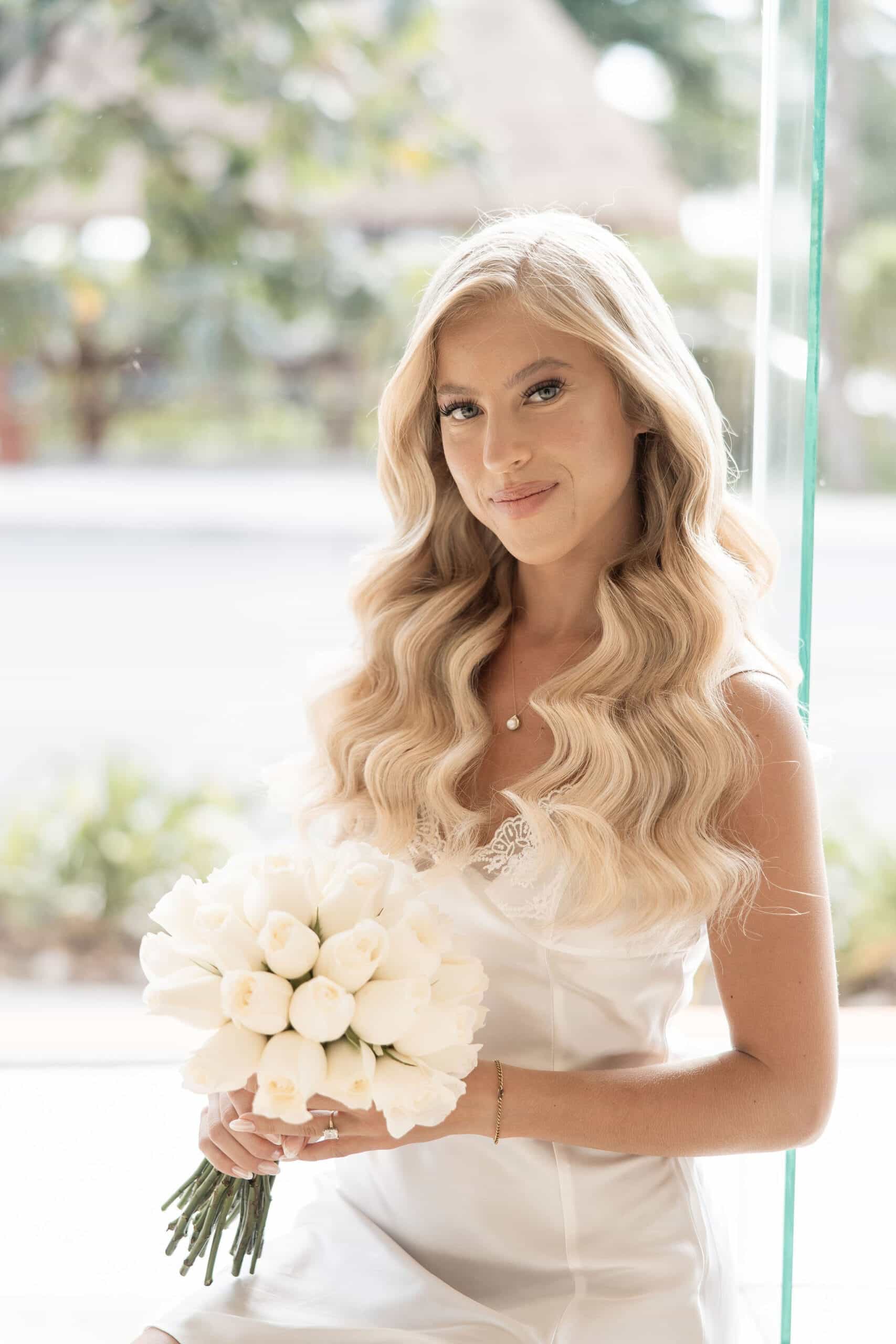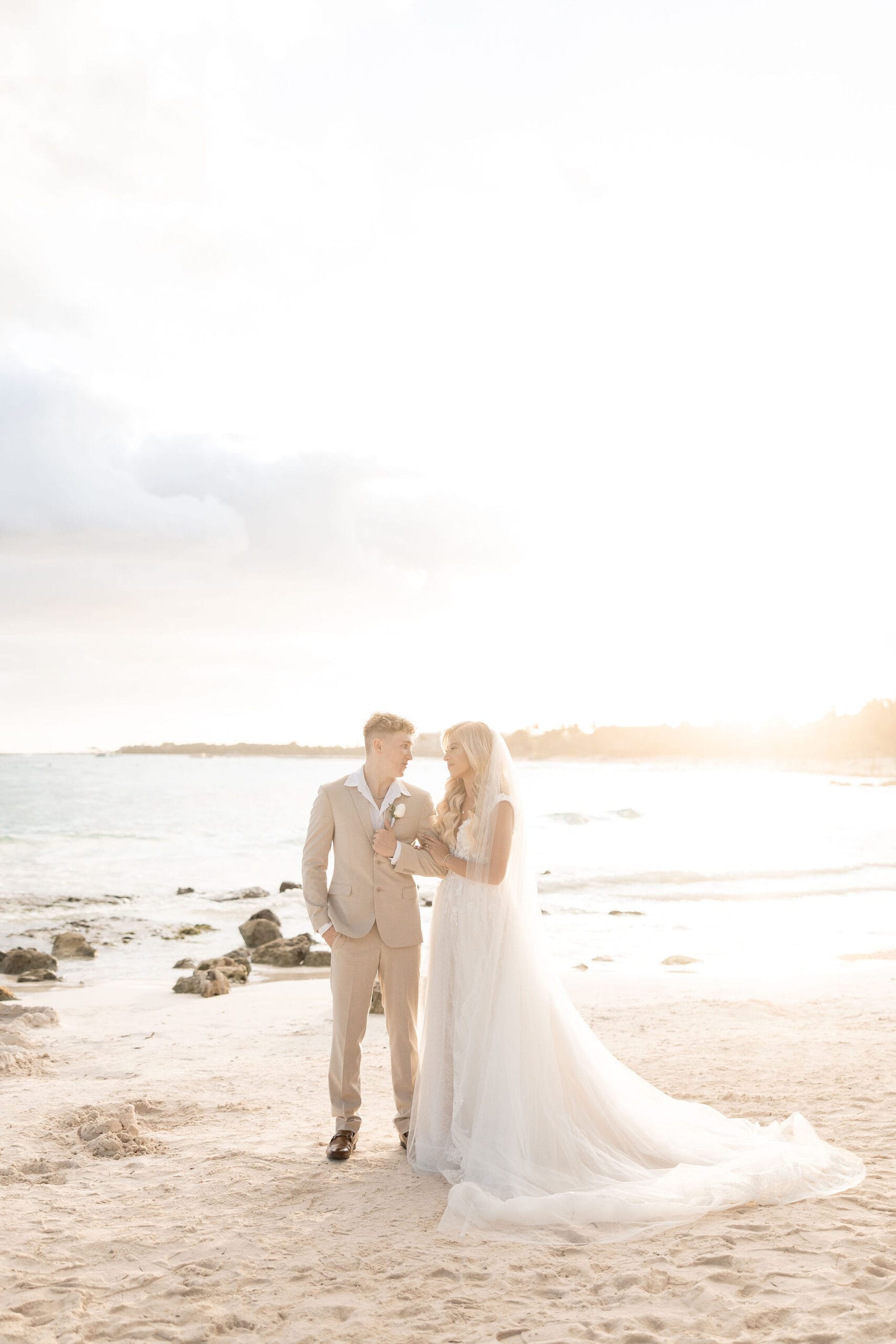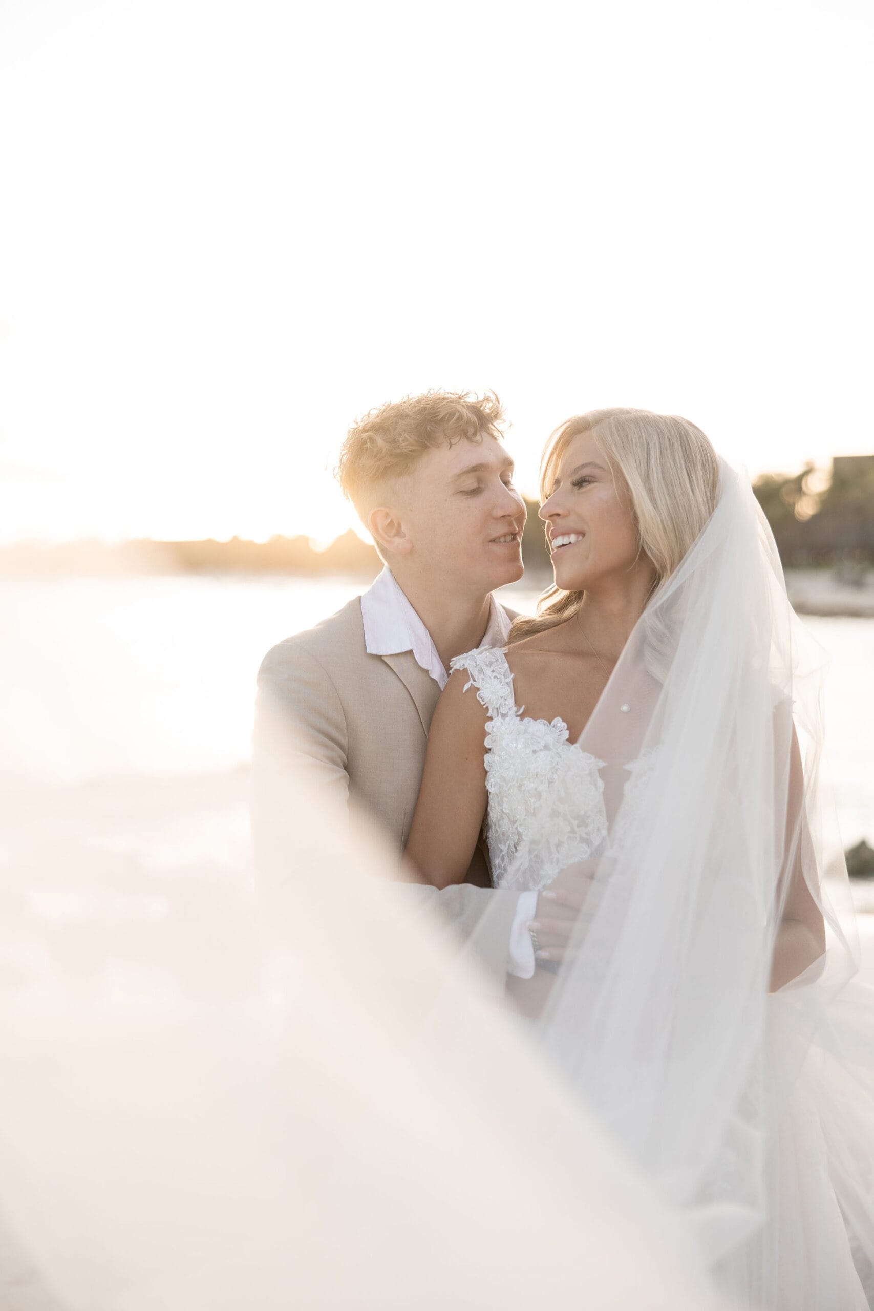 Deanna and Timothy’s wedding at Barceló Maya Palace was a breathtaking celebration set along the stunning Riviera Maya coastline. The couple exchanged vows under a romantic floral arch, with the turquoise waters of the Caribbean and swaying palm trees providing the perfect backdrop. Deanna, radiant in her lace gown and carrying a bouquet of pristine white roses, walked down the sandy aisle to meet Timothy, who was beaming with joy. The natural beauty of the beachfront setting, combined with elegant decor and the golden glow of the setting sun, created a truly magical atmosphere for their ceremony.