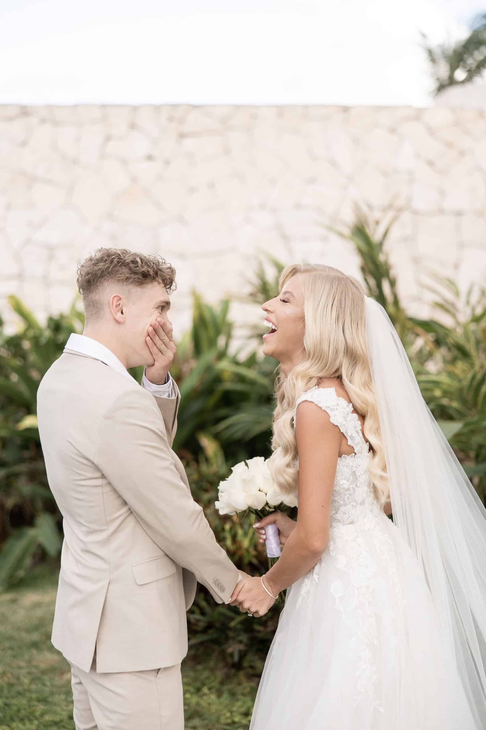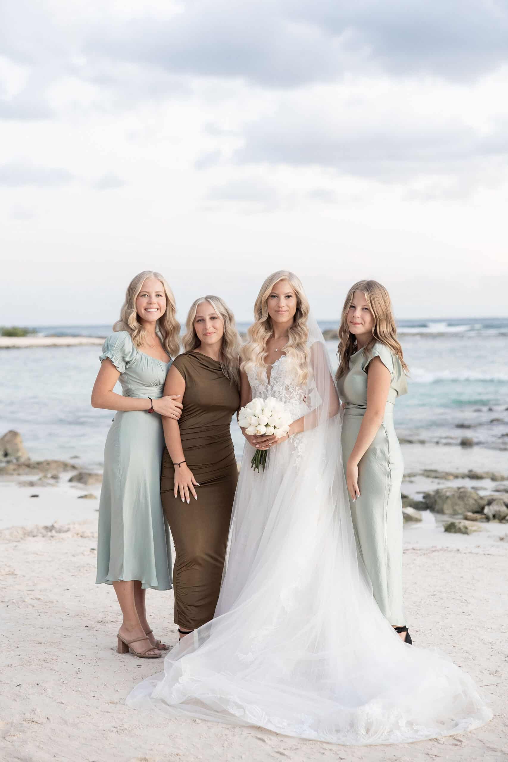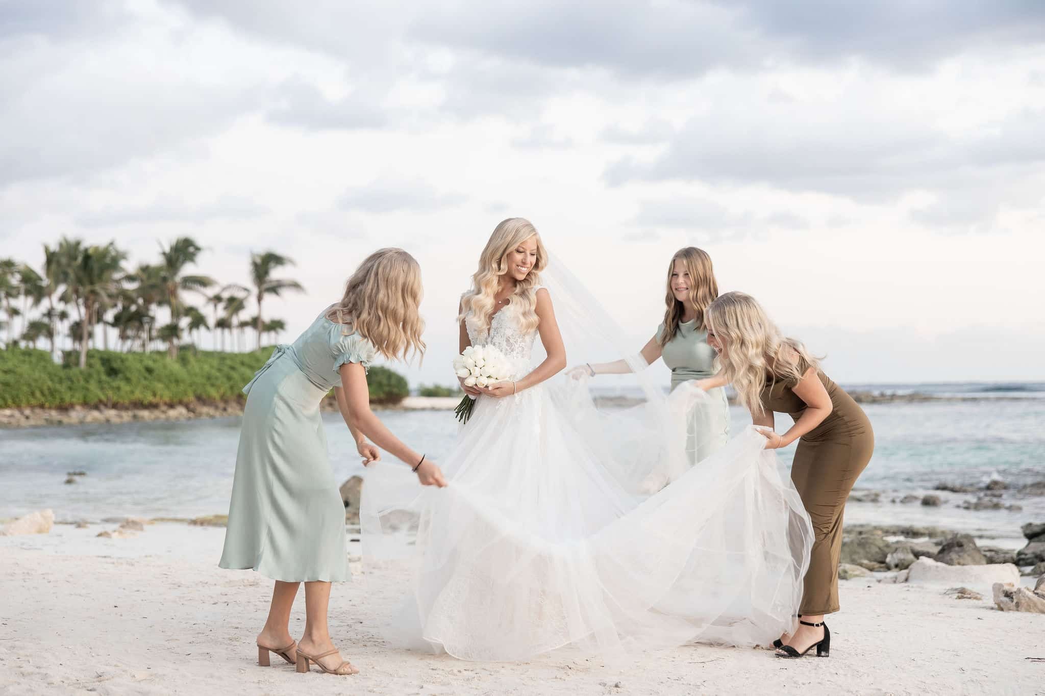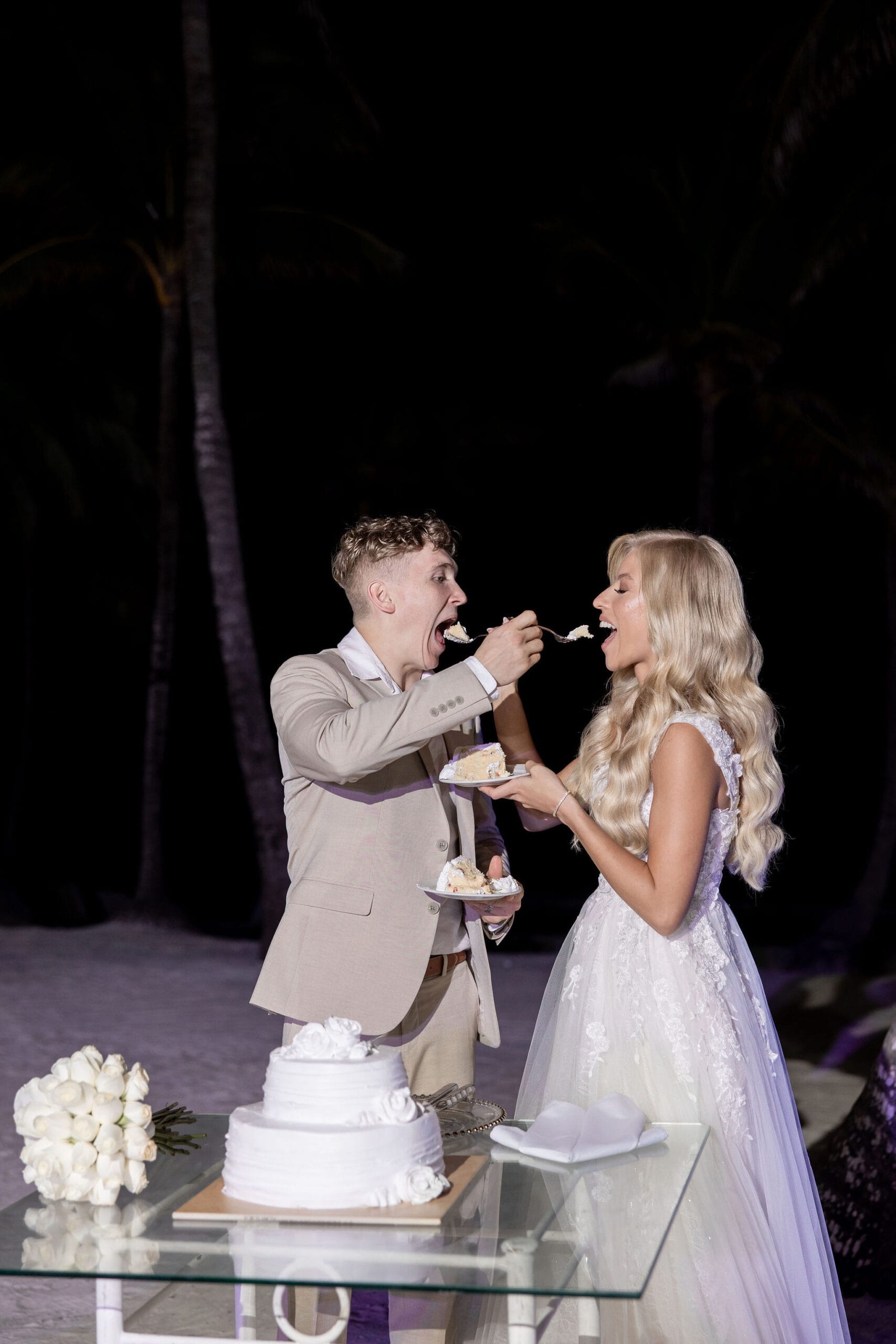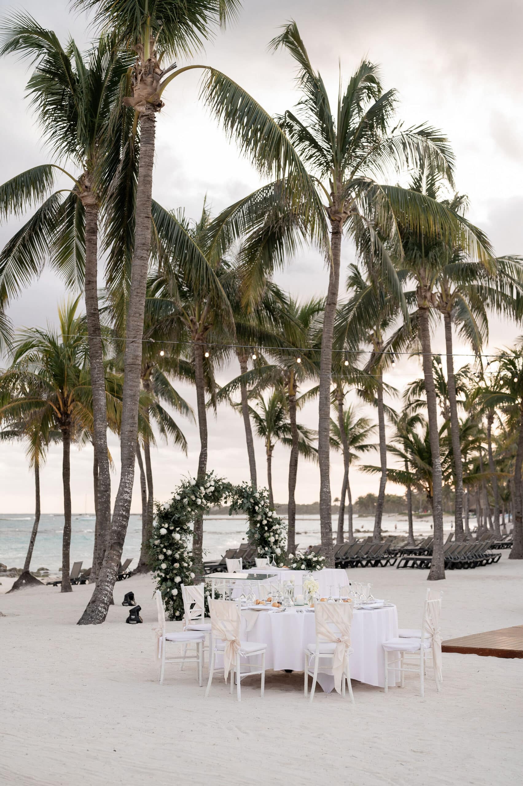 Following the heartfelt vows, the couple and their guests enjoyed an intimate reception filled with love and laughter. Set beneath the stars, the reception featured soft lighting, tropical accents, and a lively ambiance. Deanna and Timothy shared their first dance as husband and wife against the calming sound of waves, while their friends and family celebrated with dancing, gourmet cuisine, and joyful toasts. Every detail, from the picturesque setting to the warm, festive atmosphere, made Deanna and Timothy’s wedding at Barceló Maya Palace a day to remember forever.