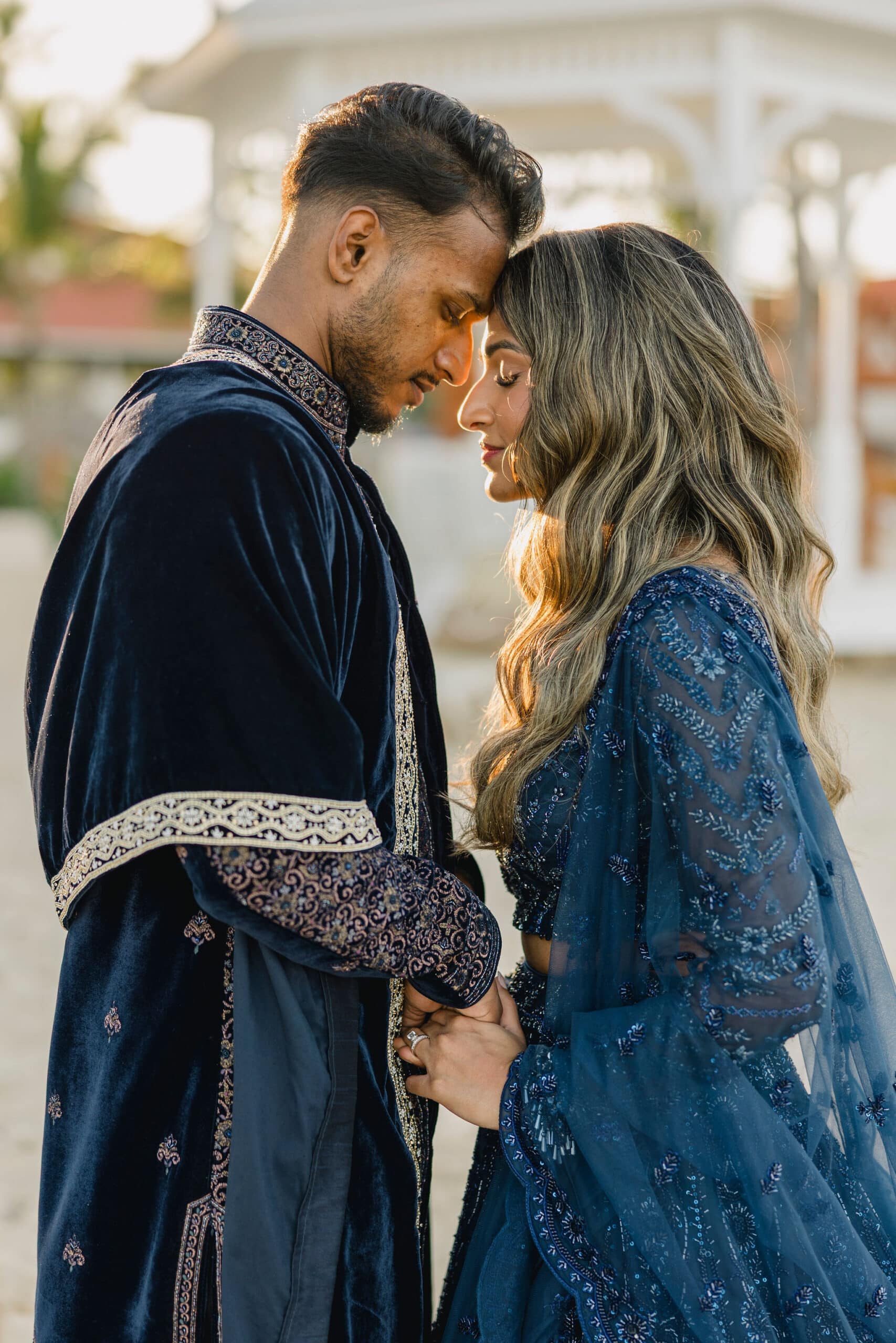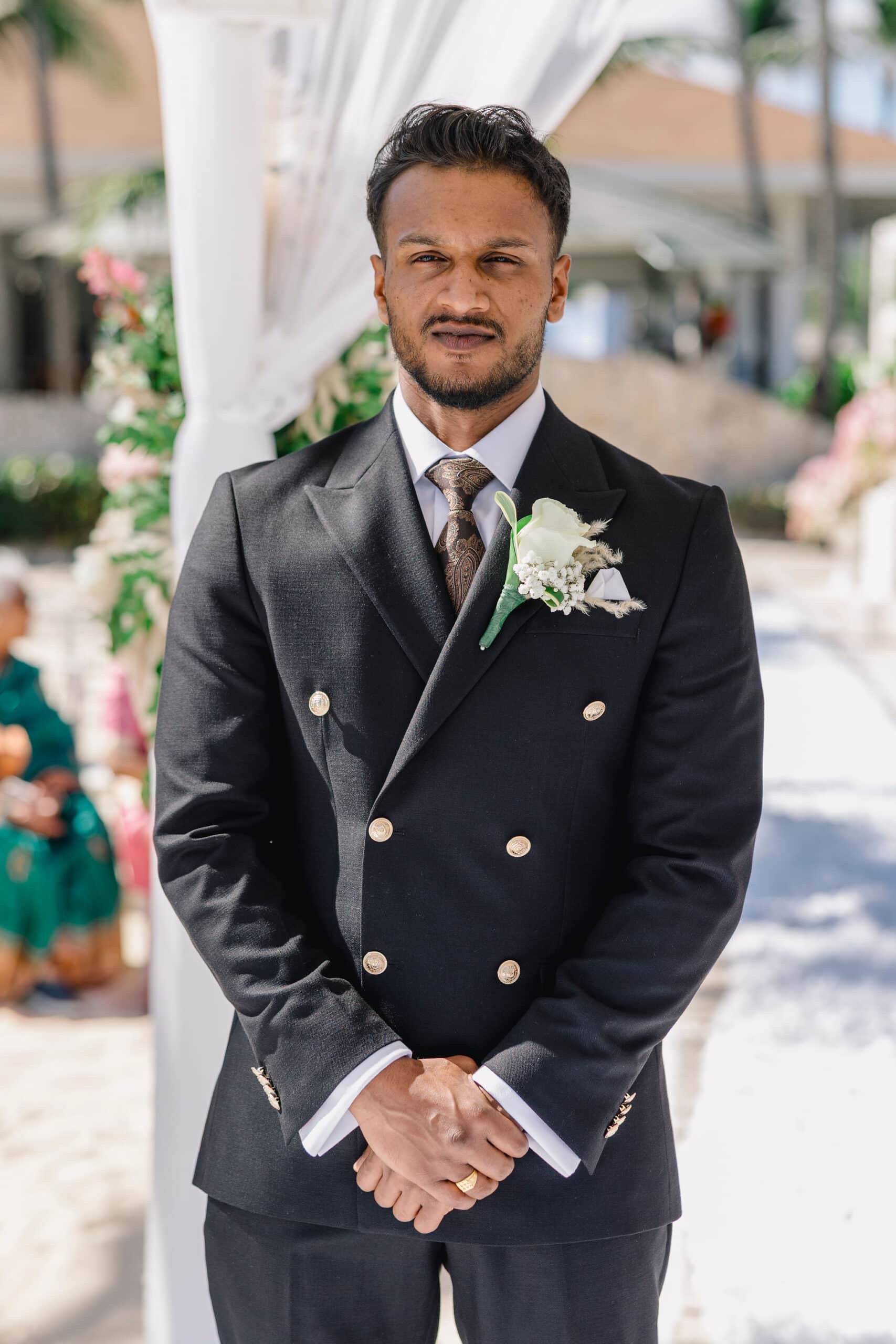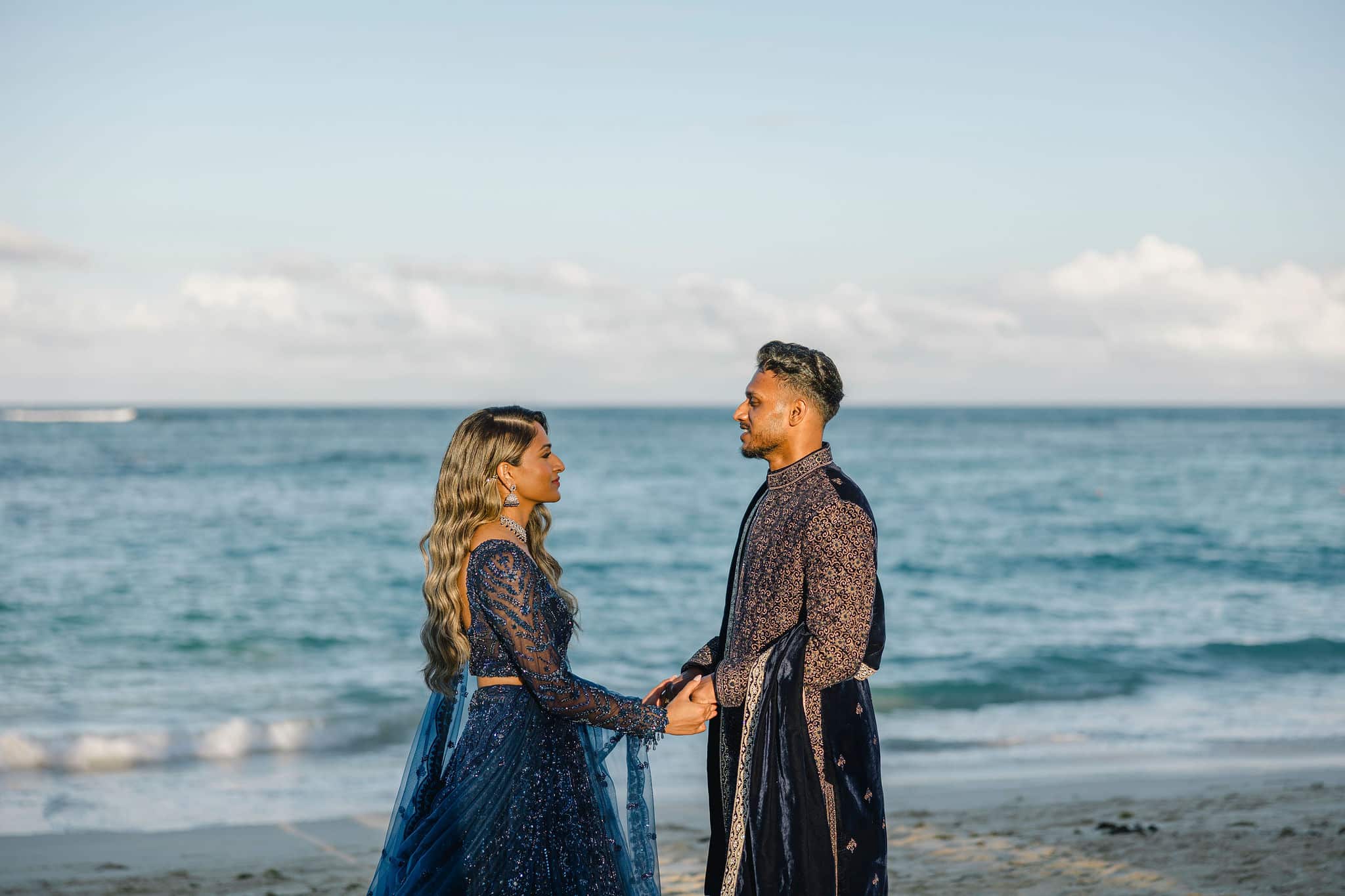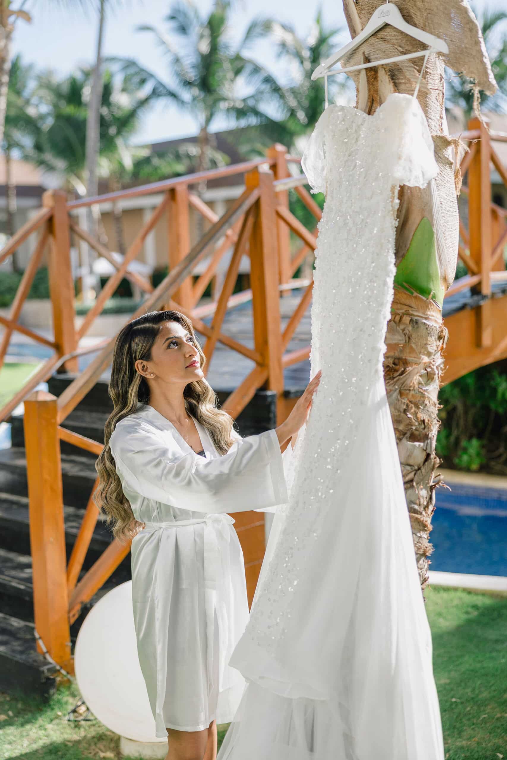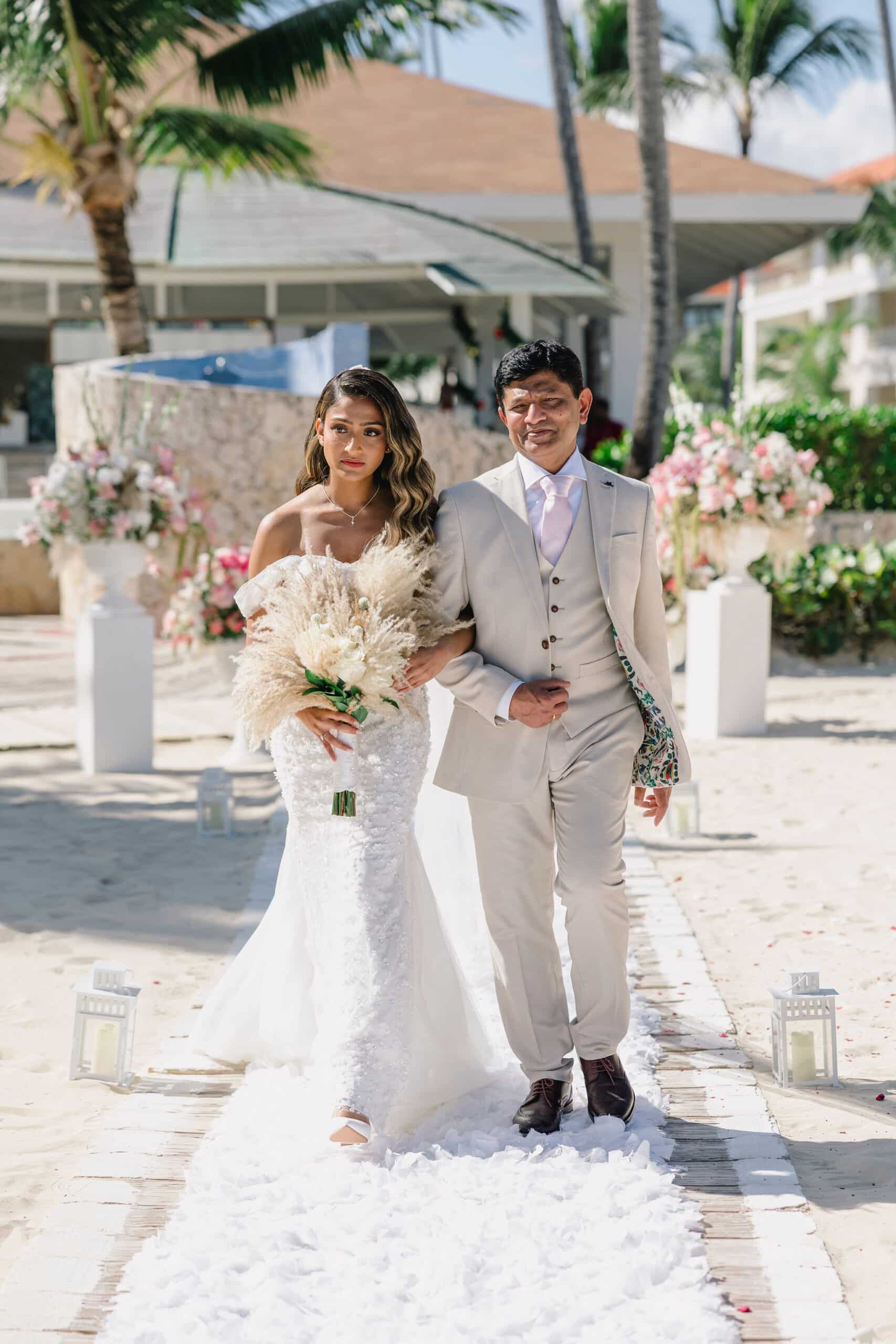 Hanshika and Kajalakshan’s wedding at Majestic Mirage Punta Cana was a breathtaking fusion of elegance, culture, and emotion, set against the stunning backdrop of the Caribbean. Their celebration began with an intimate and deeply emotional first look, where the couple stood back-to-back, holding hands before seeing each other. That quiet moment, filled with anticipation and love, perfectly captured the essence of their connection. Surrounded by lush tropical greenery and soft natural light, Hanshika looked radiant in her intricately detailed gown, while Kajalakshan’s classic look complemented the timeless feel of the moment. It was a beautiful beginning to a day that would unfold with both grace and vibrancy.
