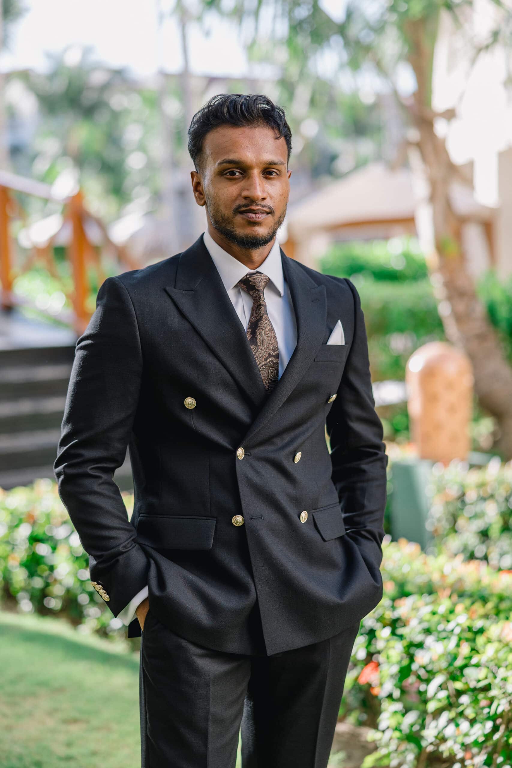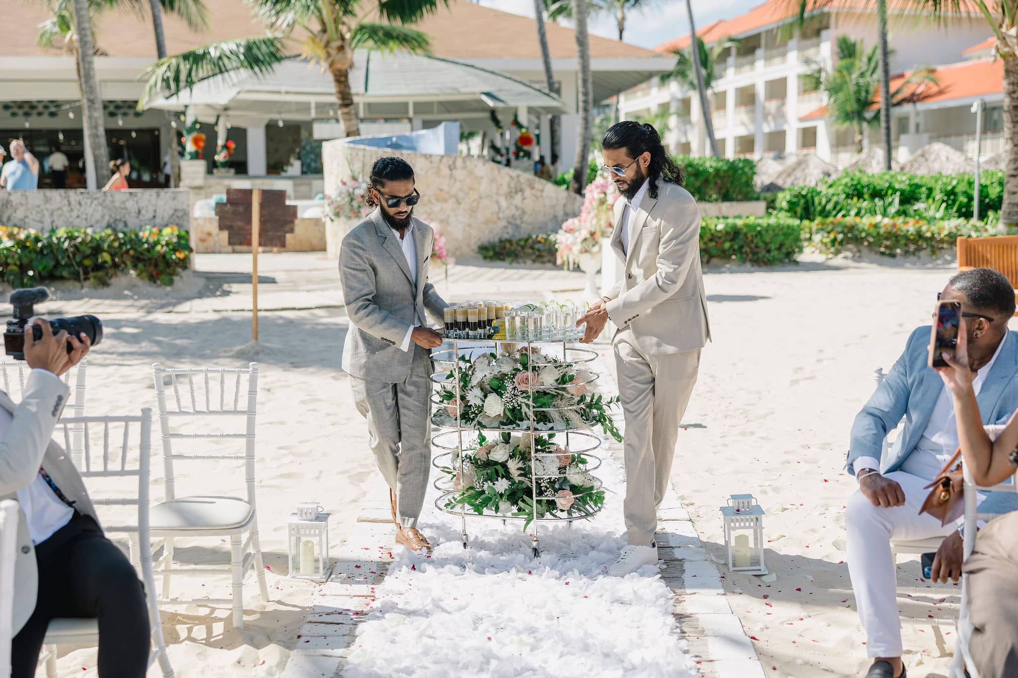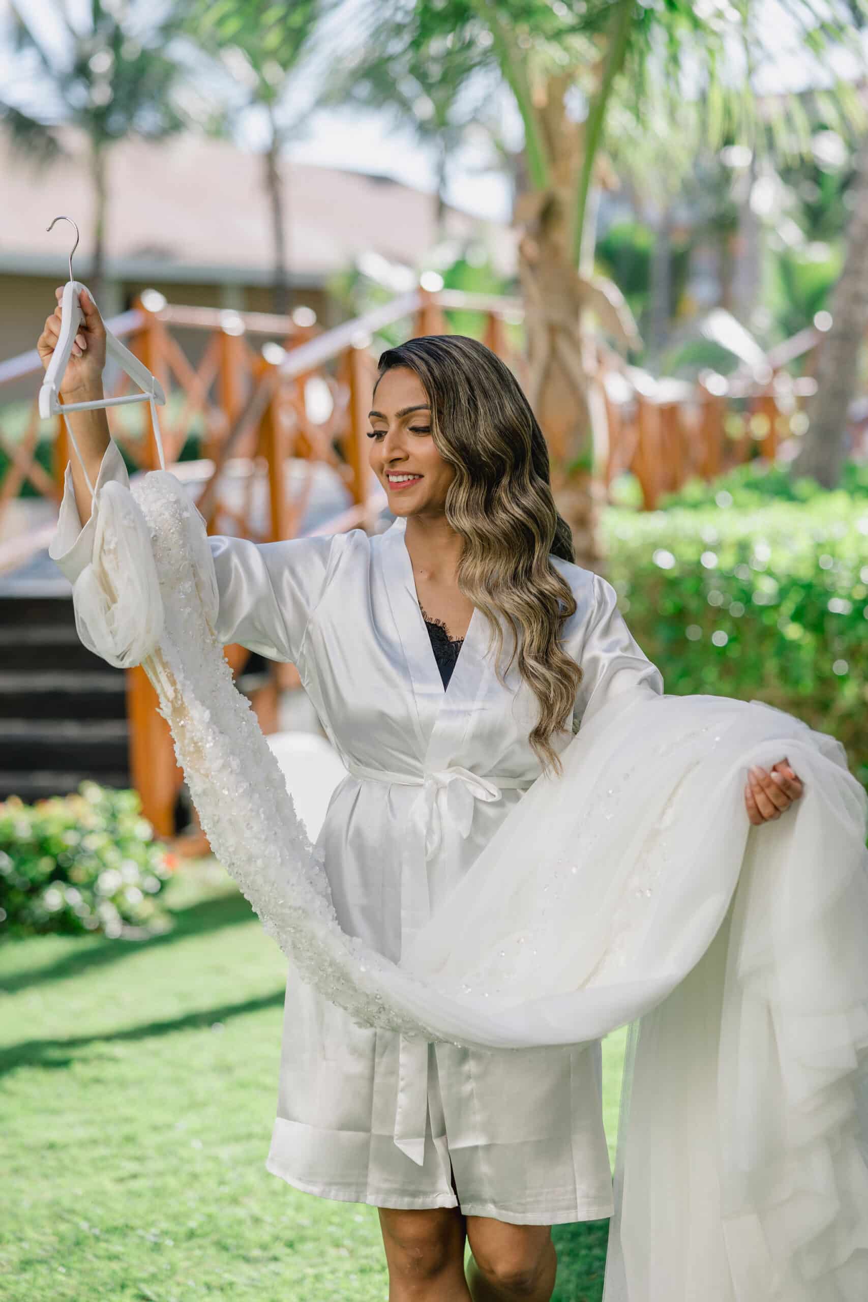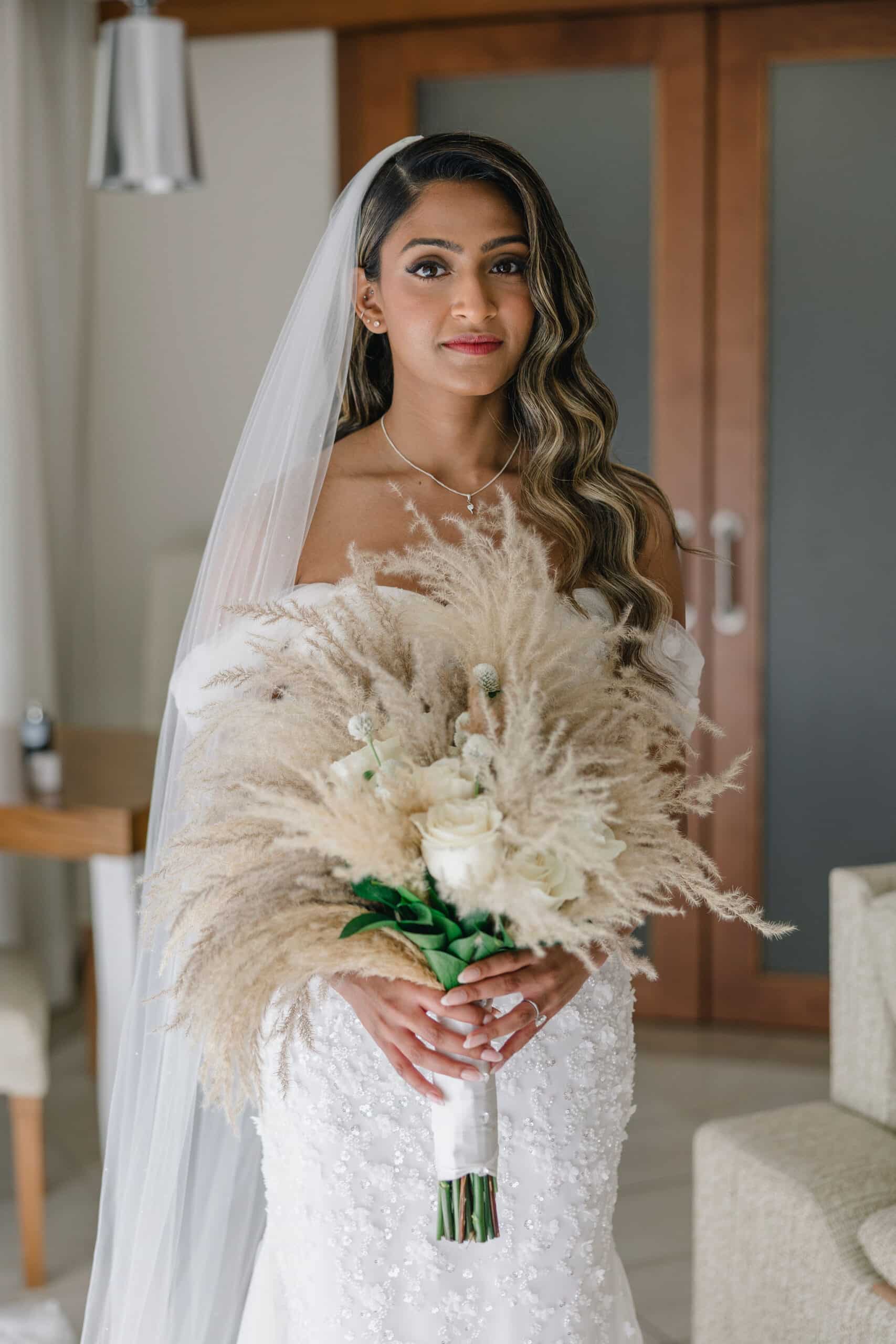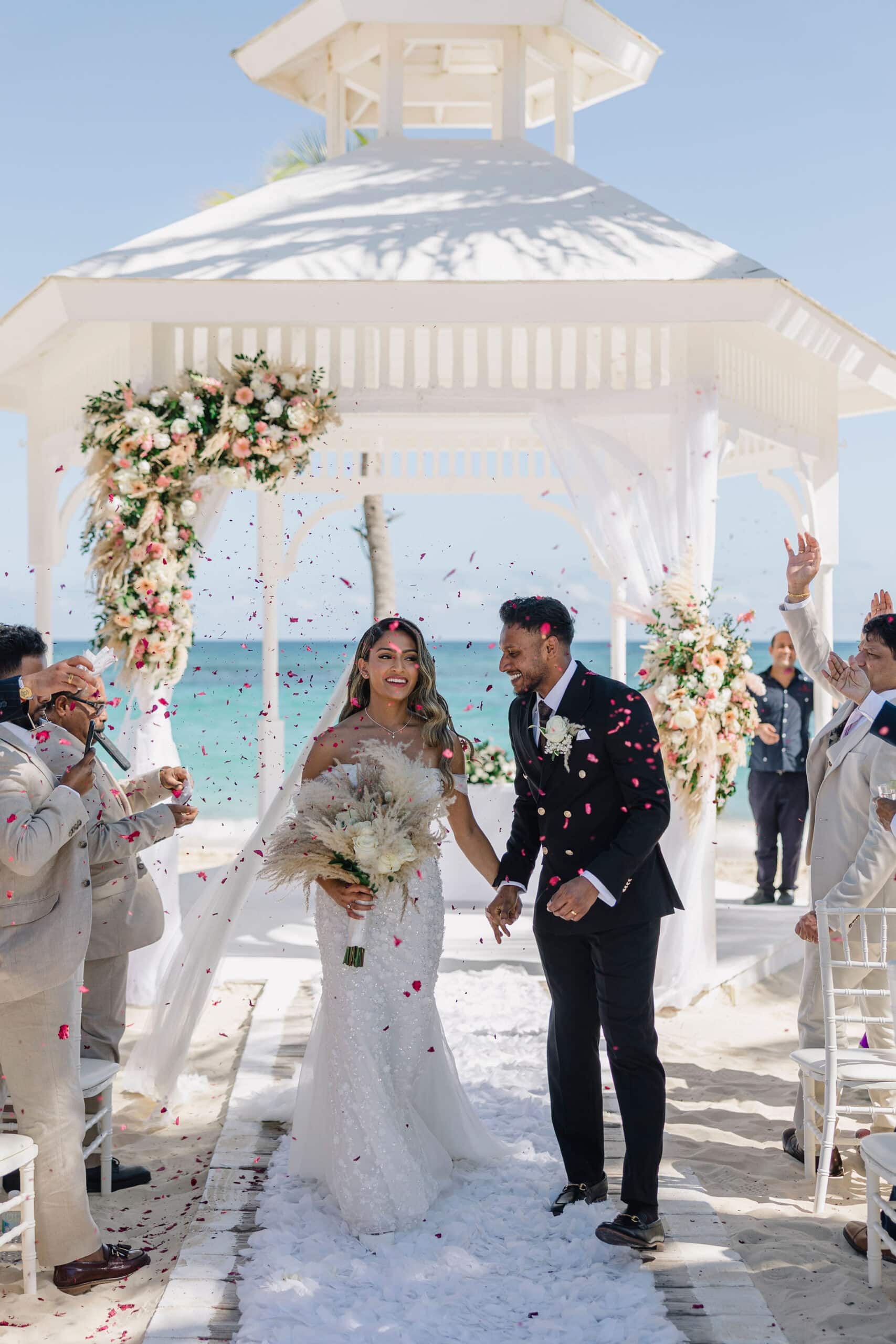 Hanshika and Kajalakshan’s wedding at Majestic Mirage Punta Cana was a breathtaking fusion of elegance, culture, and emotion, set against the stunning backdrop of the Caribbean. Their celebration began with an intimate and deeply emotional first look, where the couple stood back-to-back, holding hands before seeing each other. That quiet moment, filled with anticipation and love, perfectly captured the essence of their connection. Surrounded by lush tropical greenery and soft natural light, Hanshika looked radiant in her intricately detailed gown, while Kajalakshan’s classic look complemented the timeless feel of the moment. It was a beautiful beginning to a day that would unfold with both grace and vibrancy.