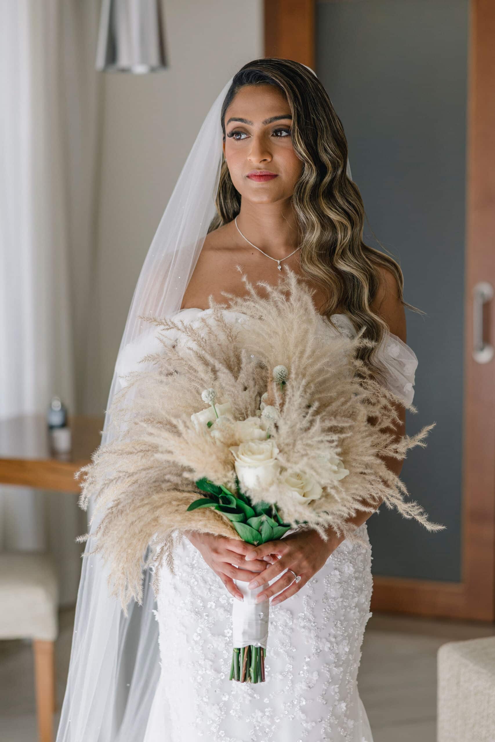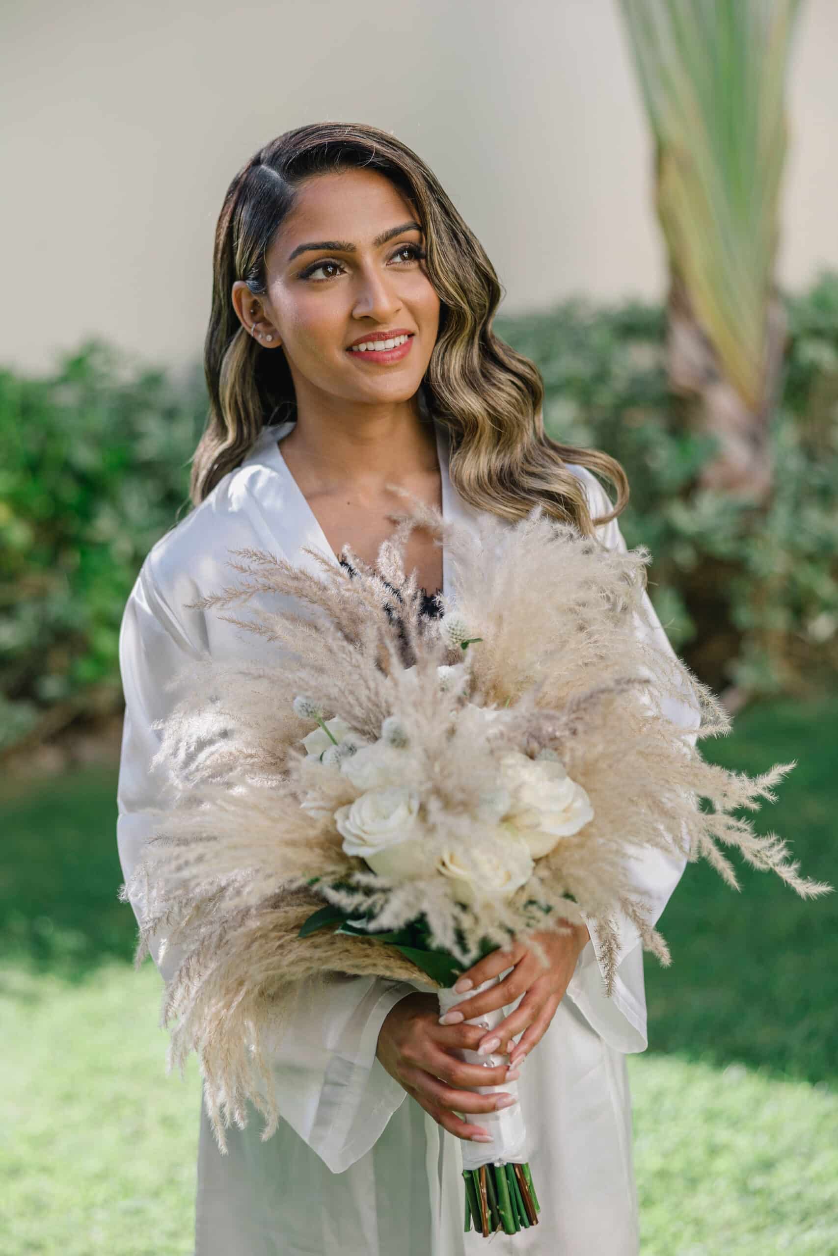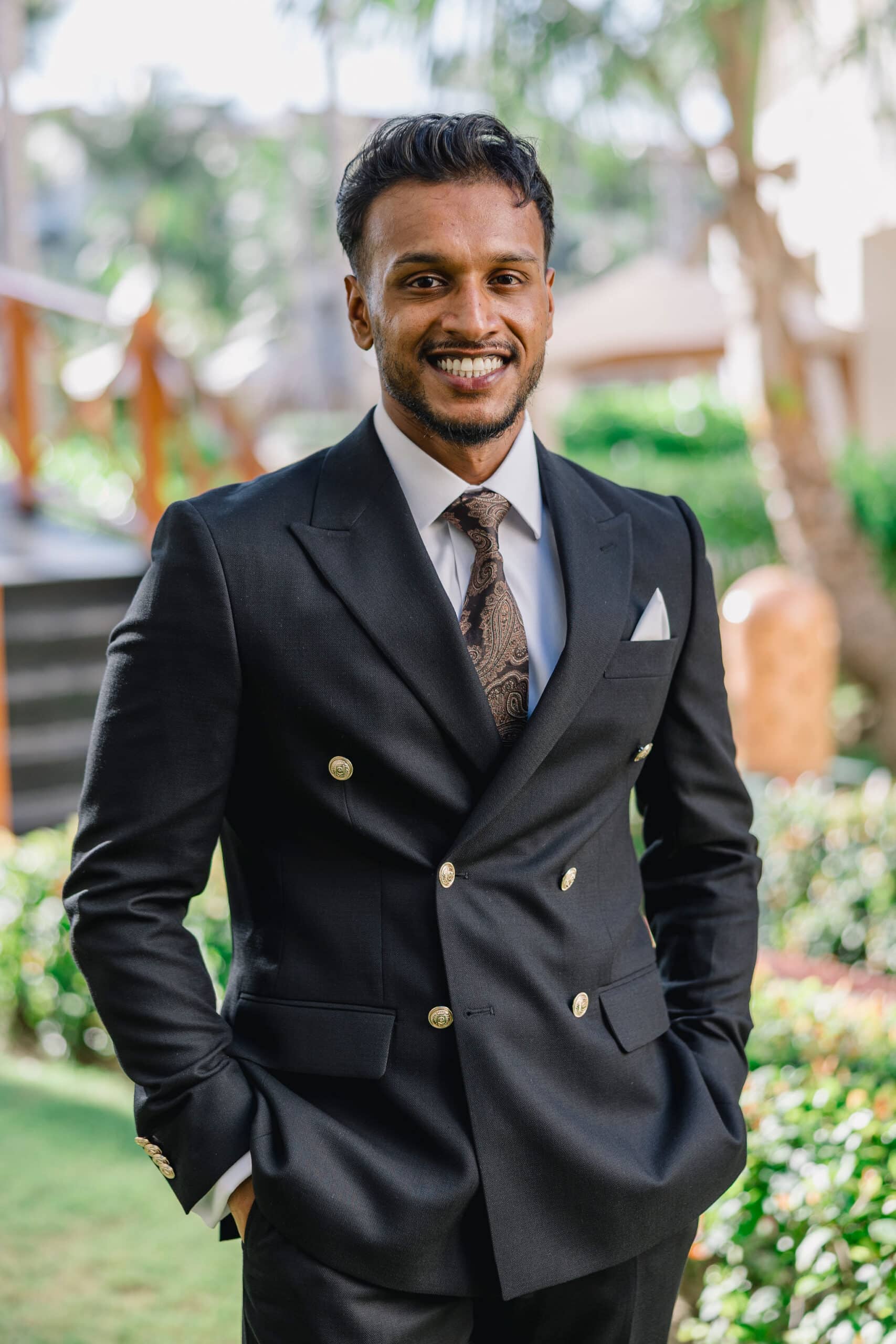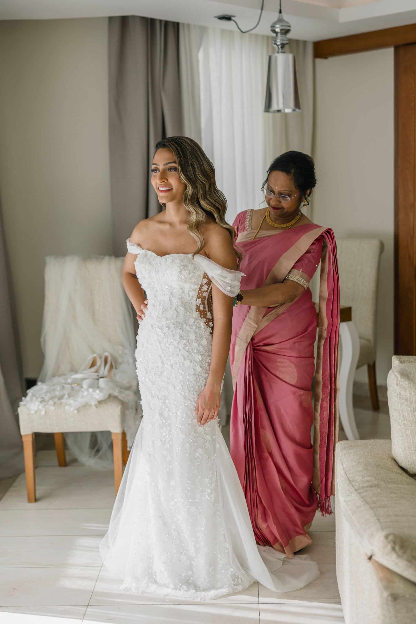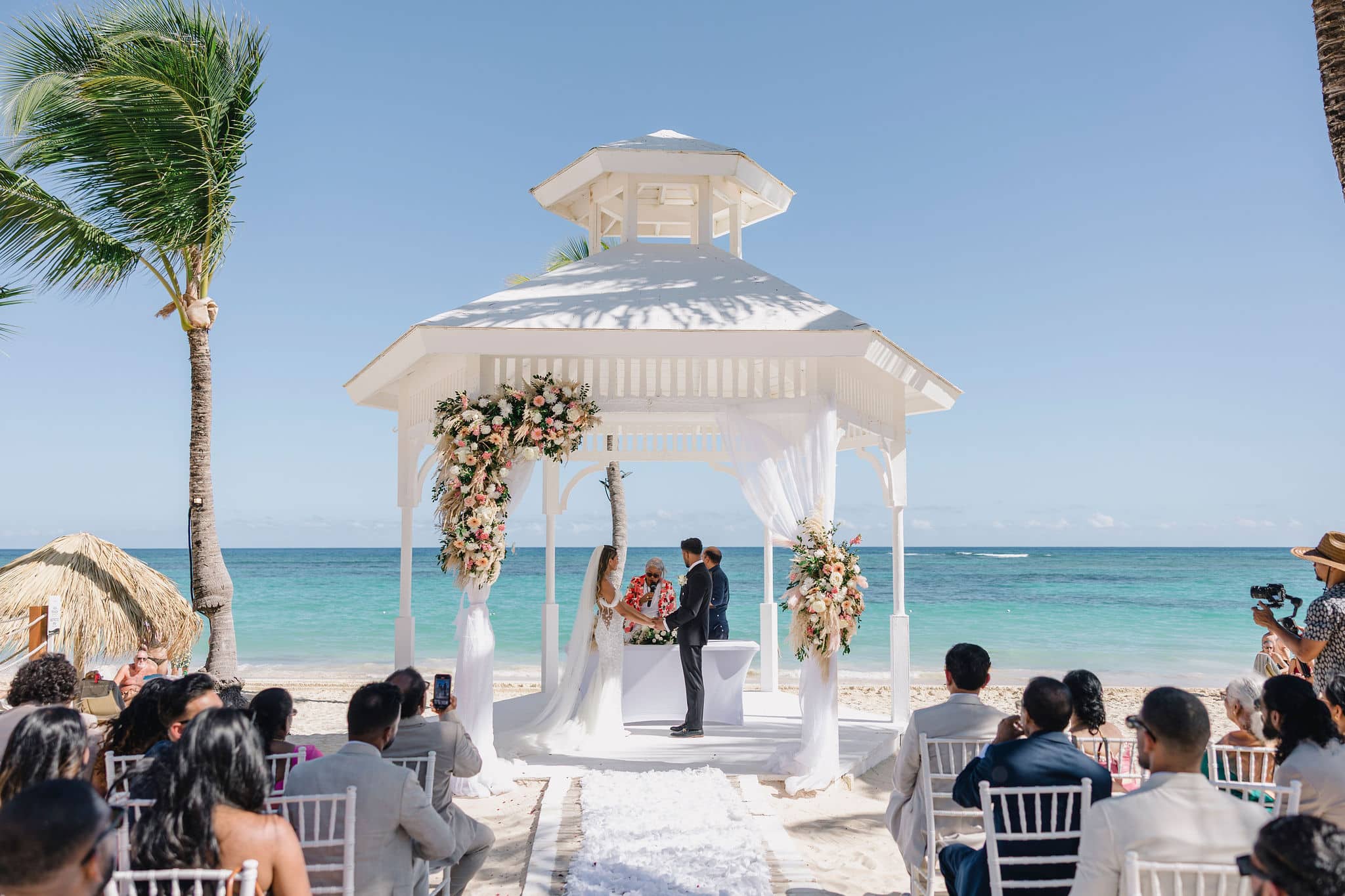 Hanshika and Kajalakshan’s wedding at Majestic Mirage Punta Cana was a breathtaking fusion of elegance, culture, and emotion, set against the stunning backdrop of the Caribbean. Their celebration began with an intimate and deeply emotional first look, where the couple stood back-to-back, holding hands before seeing each other. That quiet moment, filled with anticipation and love, perfectly captured the essence of their connection. Surrounded by lush tropical greenery and soft natural light, Hanshika looked radiant in her intricately detailed gown, while Kajalakshan’s classic look complemented the timeless feel of the moment. It was a beautiful beginning to a day that would unfold with both grace and vibrancy.
