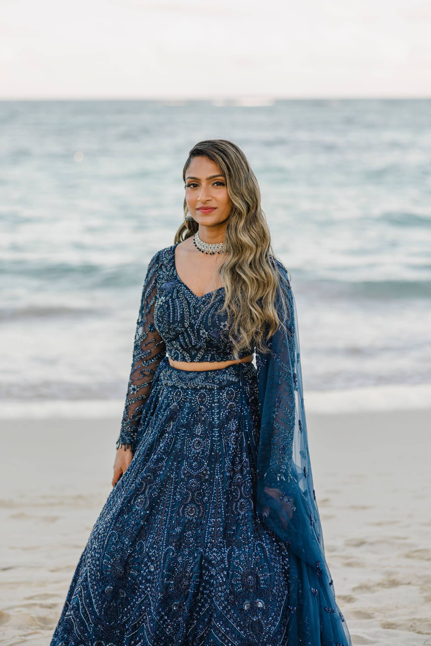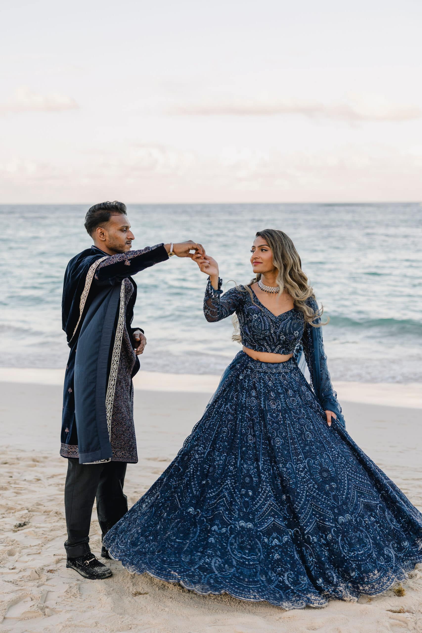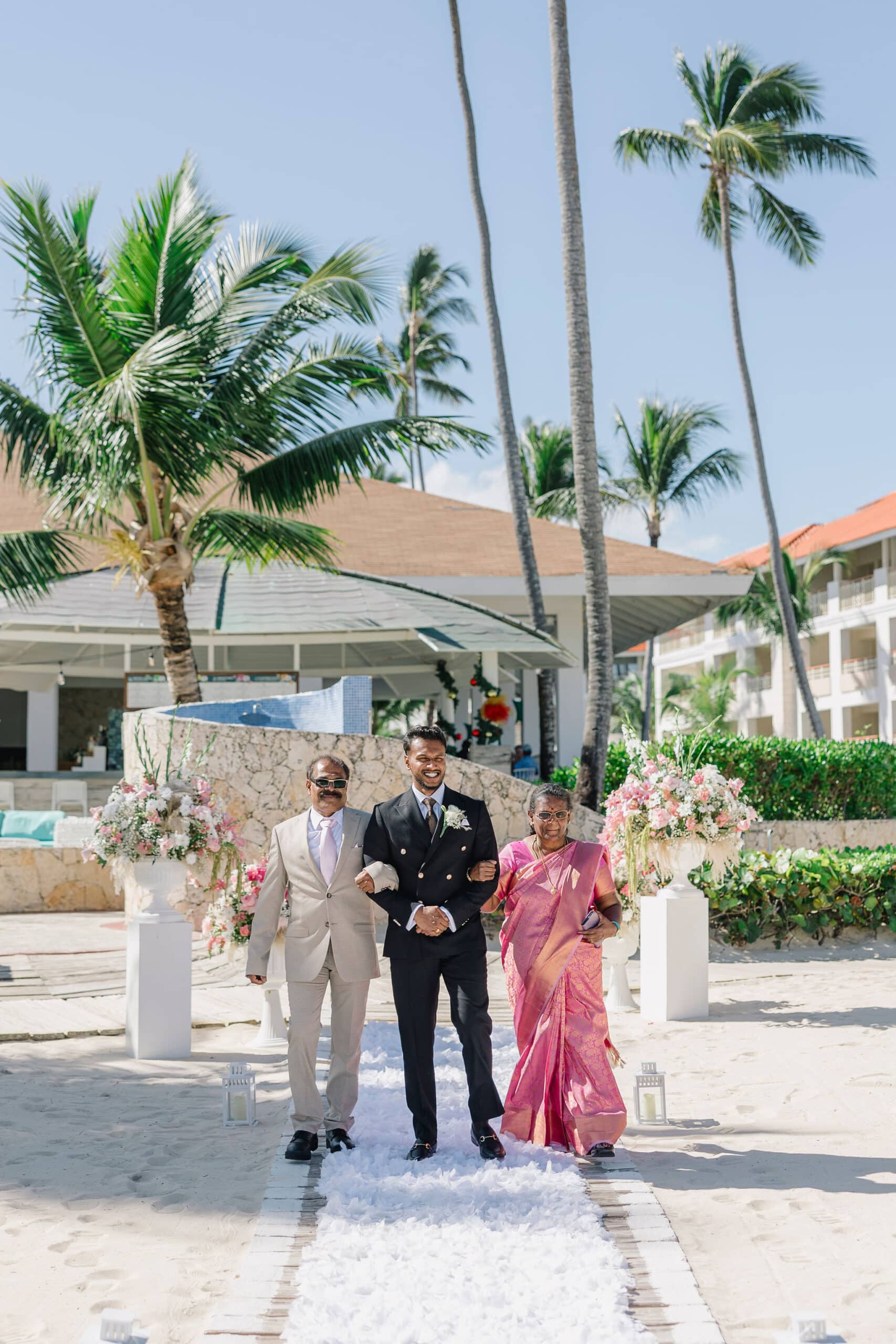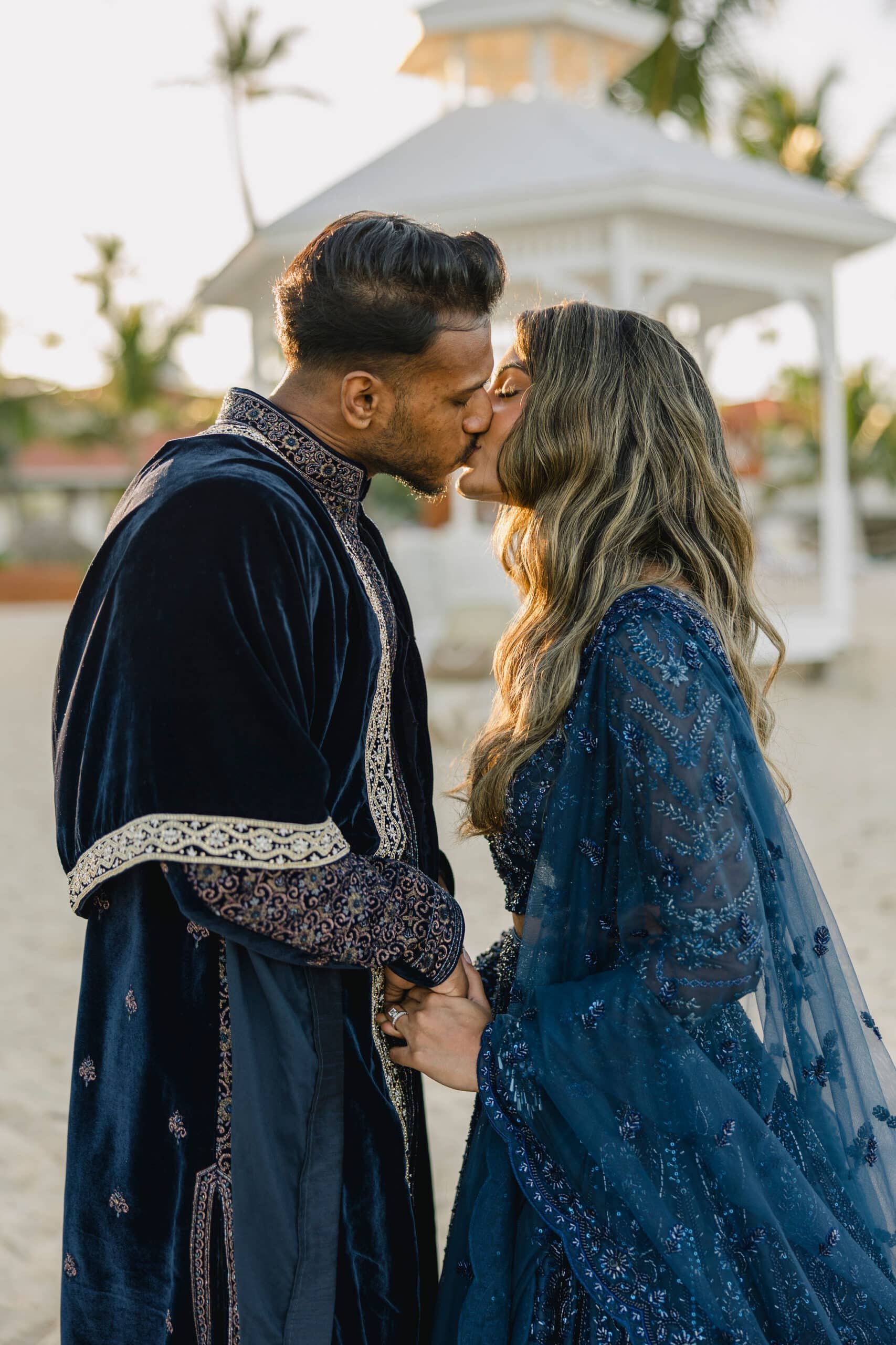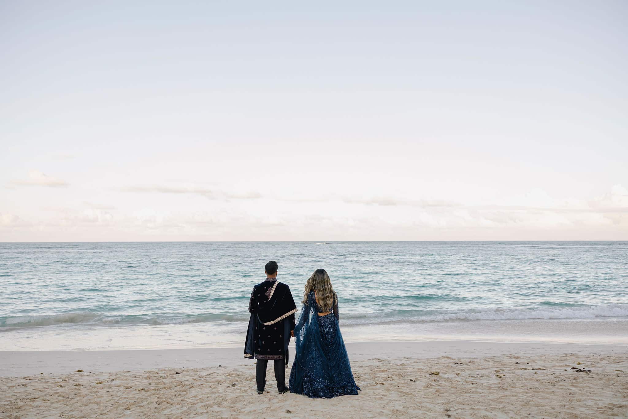 As the day transitioned into evening, the celebration took on a more intimate and romantic tone. Dressed in elegant traditional attire, Hanshika and Kajalakshan embraced their cultural roots, sharing quiet, heartfelt moments along the beach at sunset. Later, under the night sky, they stood together overlooking the glowing lights of the resort as fireworks lit up the darkness, symbolizing the beginning of their new journey together. Every part of their wedding—from the serene morning moments to the vibrant ceremony and magical night—told a story of love, unity, and beauty, making their wedding at Majestic Mirage Punta Cana truly unforgettable.