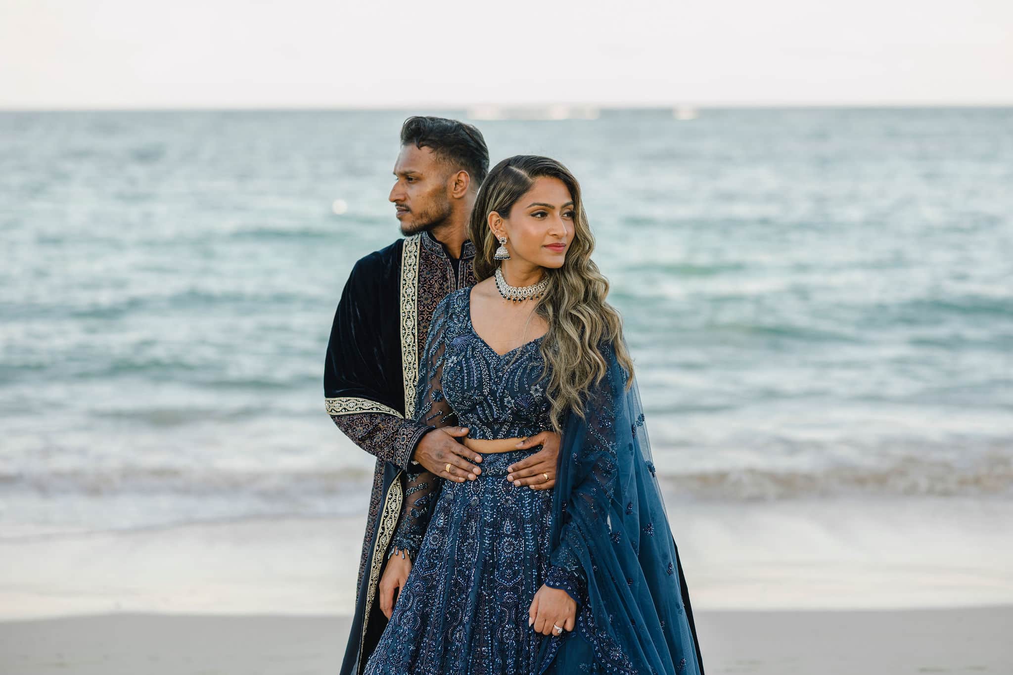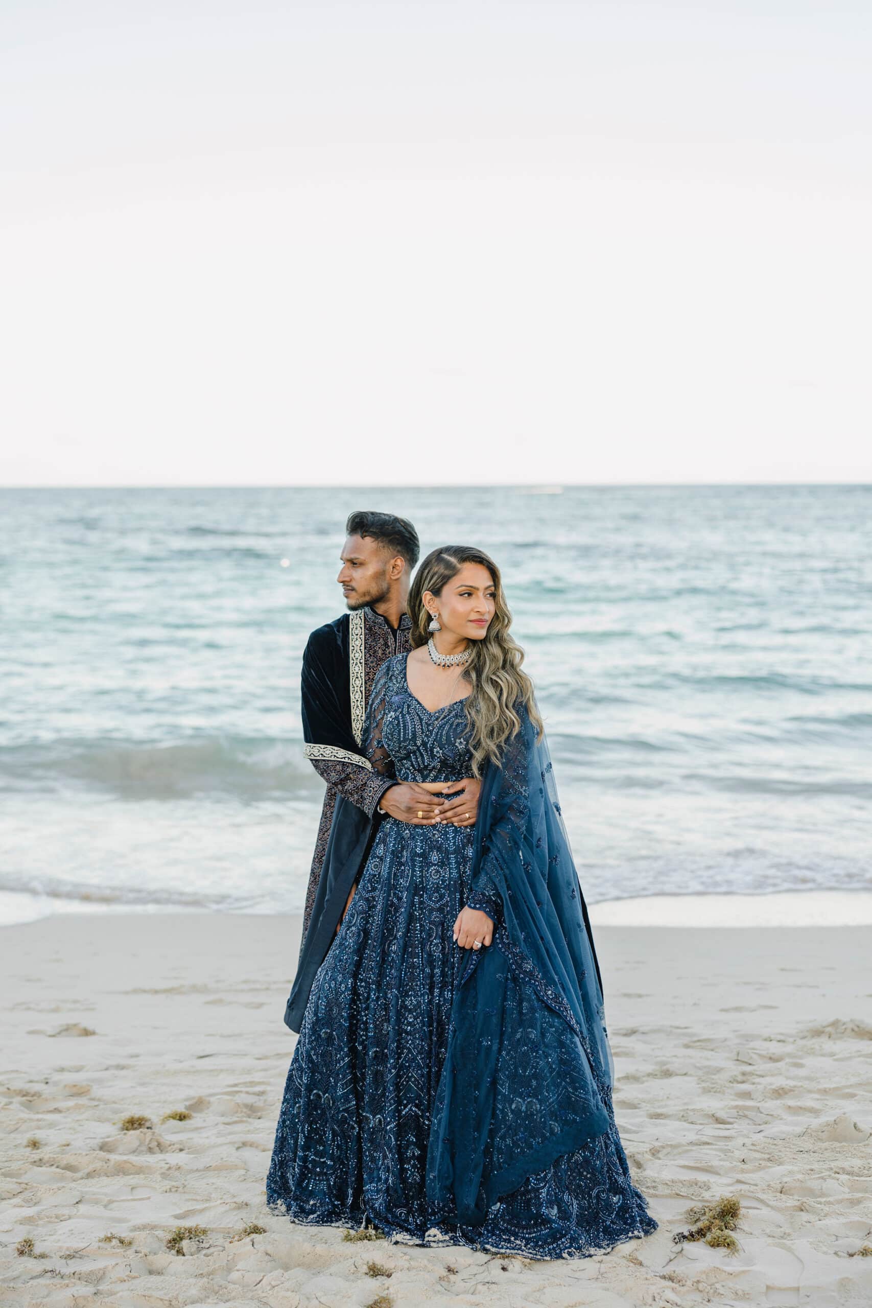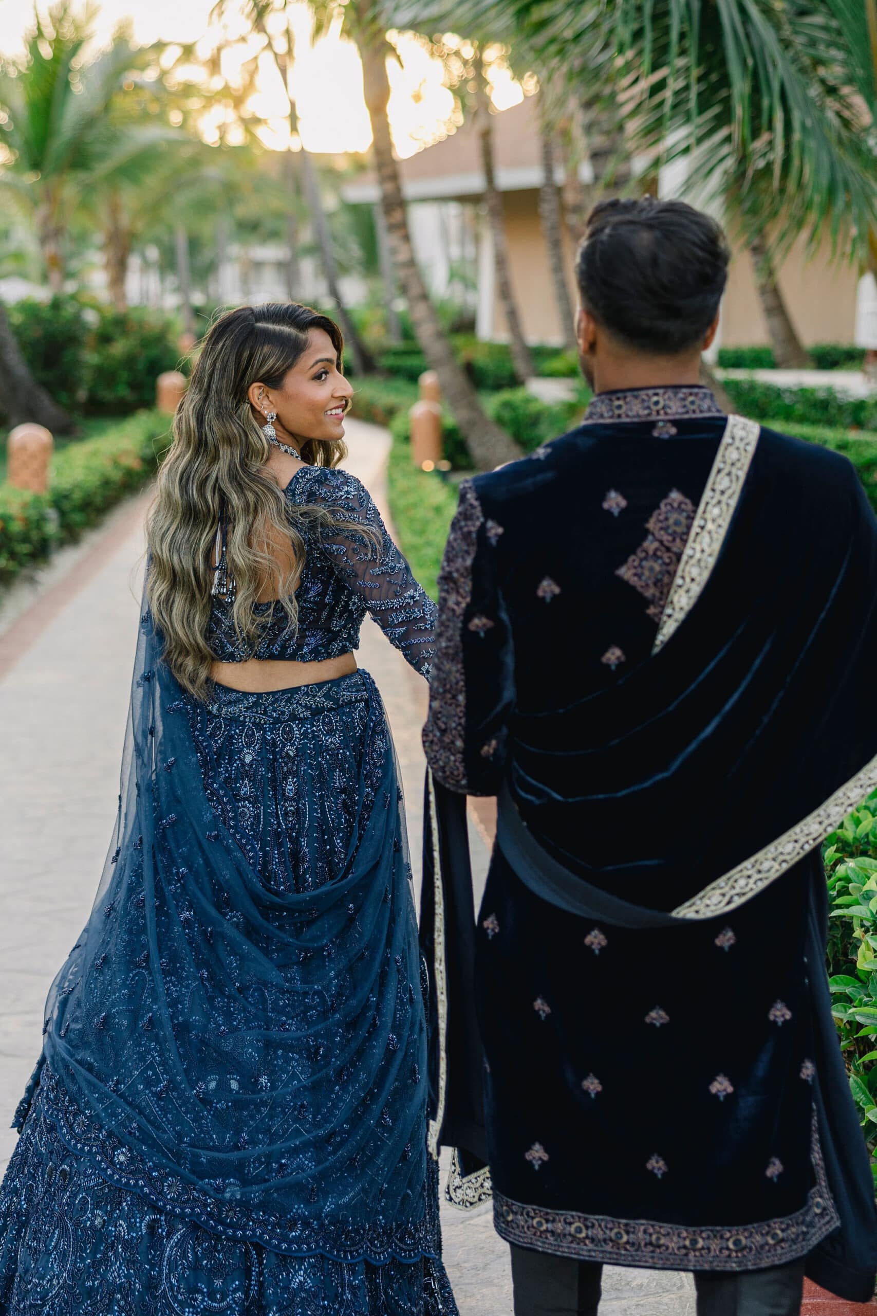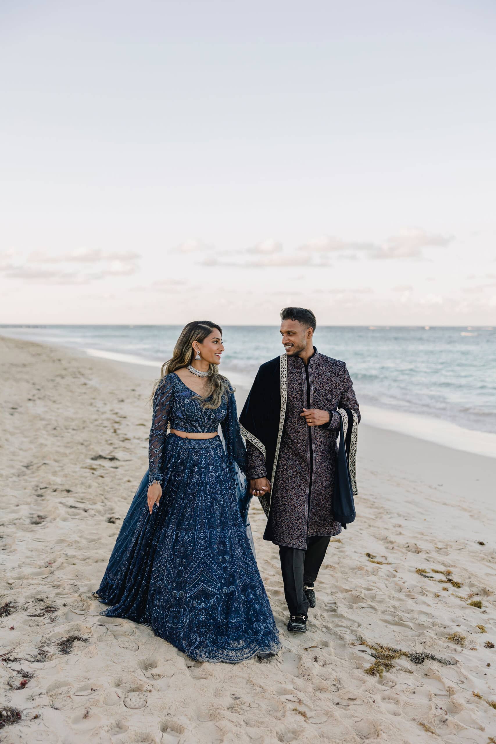 As the day transitioned into evening, the celebration took on a more intimate and romantic tone. Dressed in elegant traditional attire, Hanshika and Kajalakshan embraced their cultural roots, sharing quiet, heartfelt moments along the beach at sunset. Later, under the night sky, they stood together overlooking the glowing lights of the resort as fireworks lit up the darkness, symbolizing the beginning of their new journey together. Every part of their wedding—from the serene morning moments to the vibrant ceremony and magical night—told a story of love, unity, and beauty, making their wedding at Majestic Mirage Punta Cana truly unforgettable.
