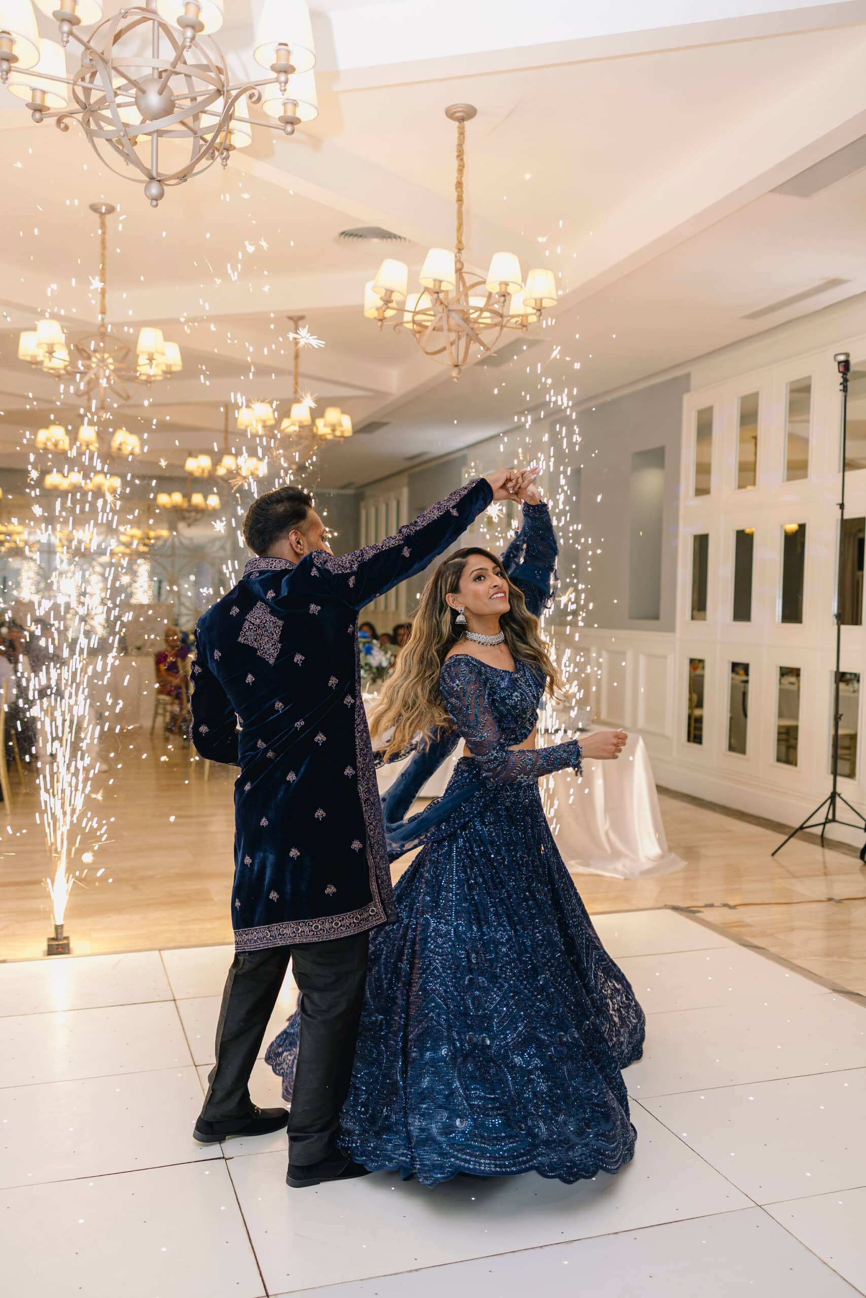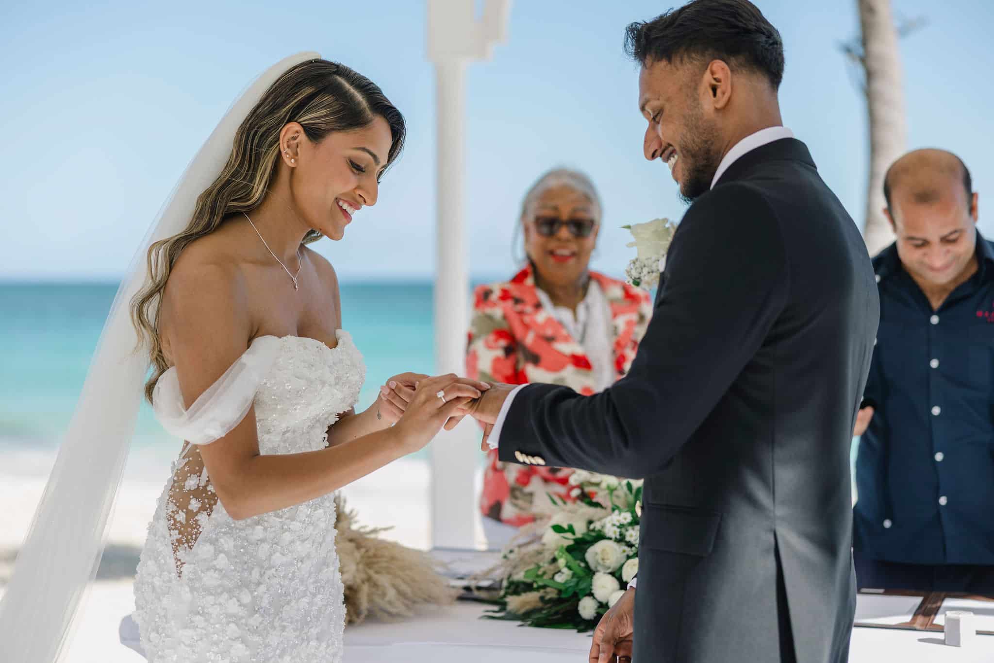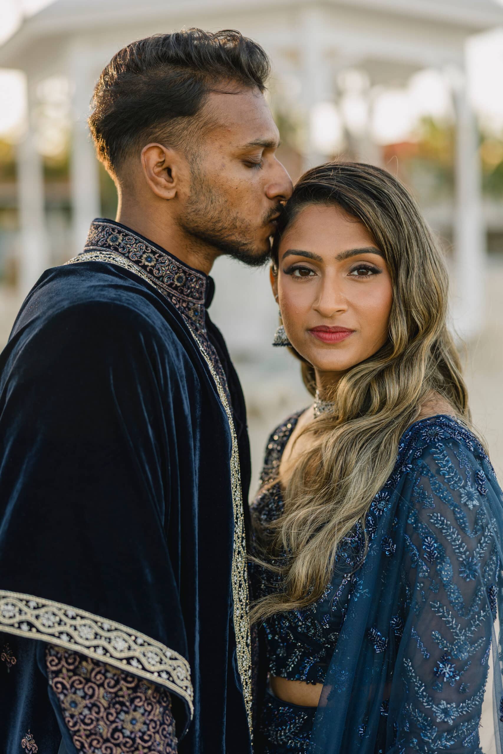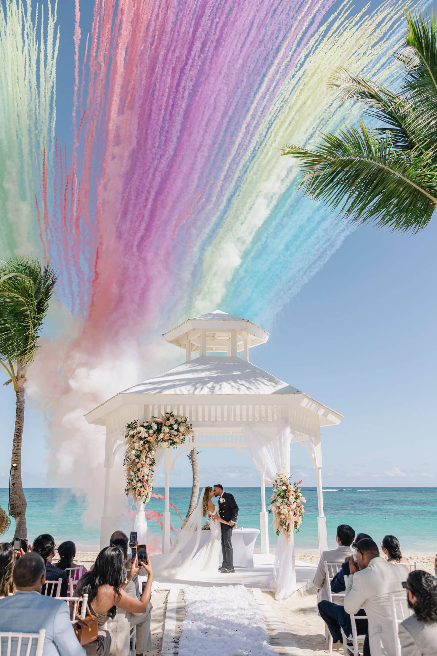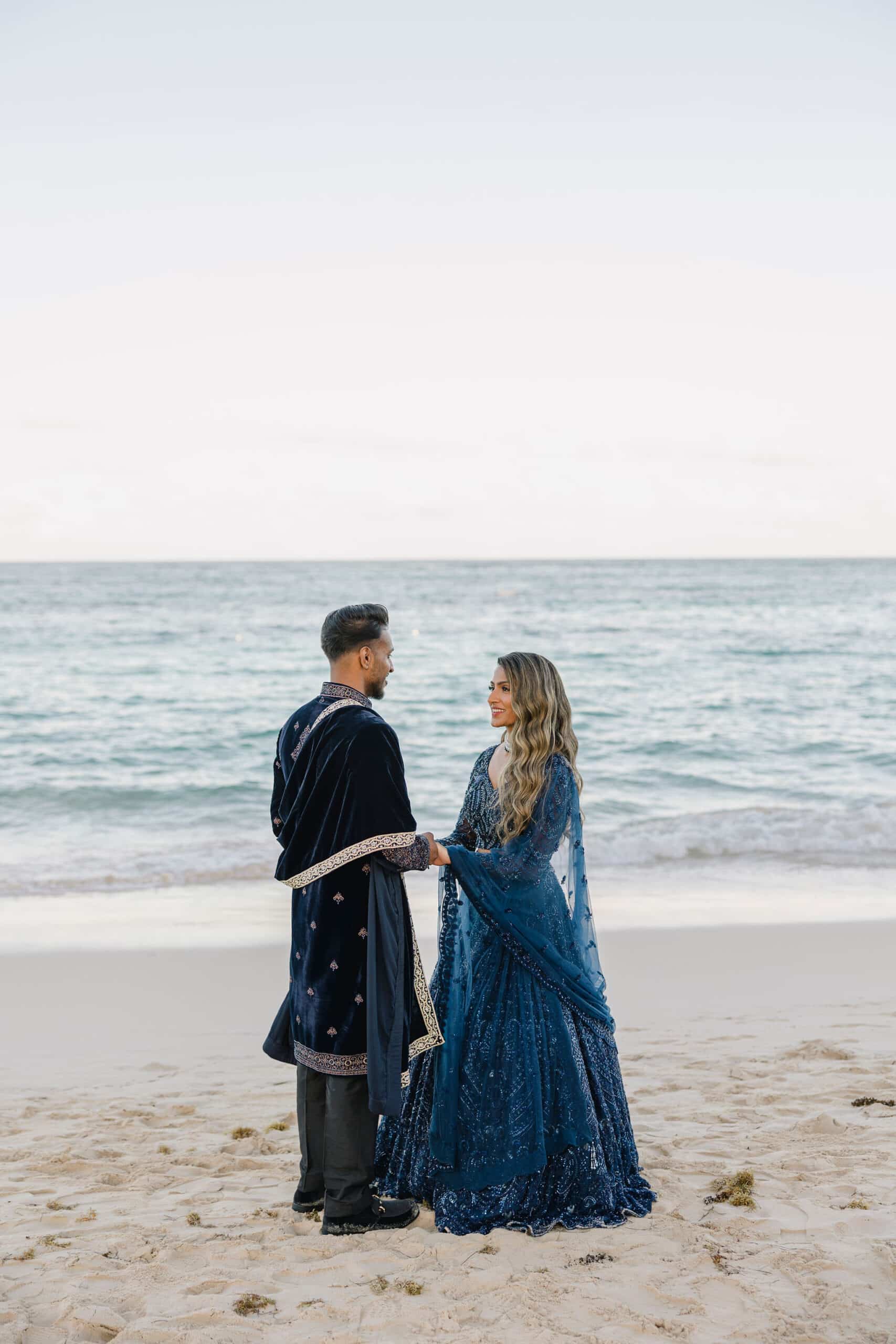 As the day transitioned into evening, the celebration took on a more intimate and romantic tone. Dressed in elegant traditional attire, Hanshika and Kajalakshan embraced their cultural roots, sharing quiet, heartfelt moments along the beach at sunset. Later, under the night sky, they stood together overlooking the glowing lights of the resort as fireworks lit up the darkness, symbolizing the beginning of their new journey together. Every part of their wedding—from the serene morning moments to the vibrant ceremony and magical night—told a story of love, unity, and beauty, making their wedding at Majestic Mirage Punta Cana truly unforgettable.