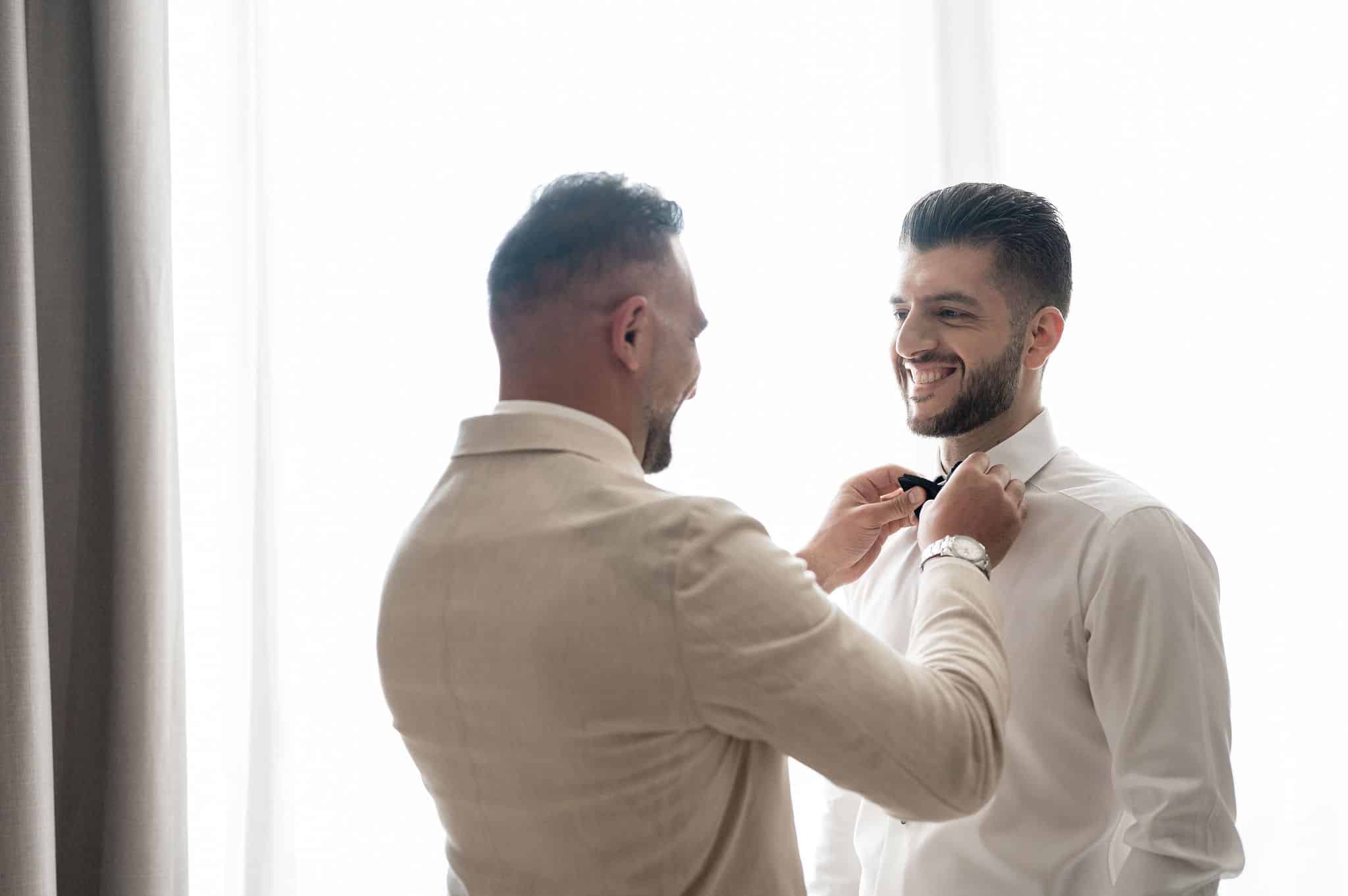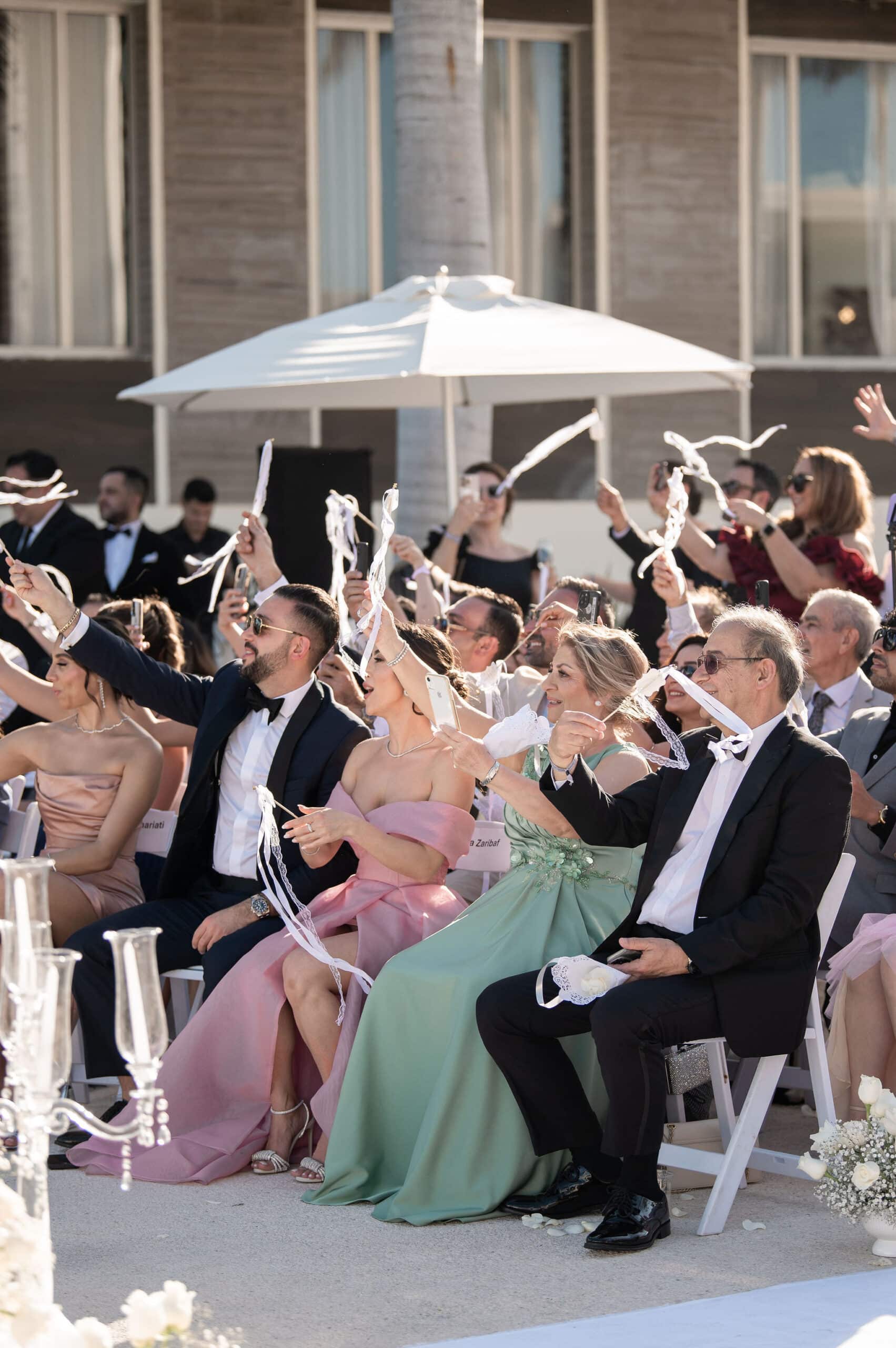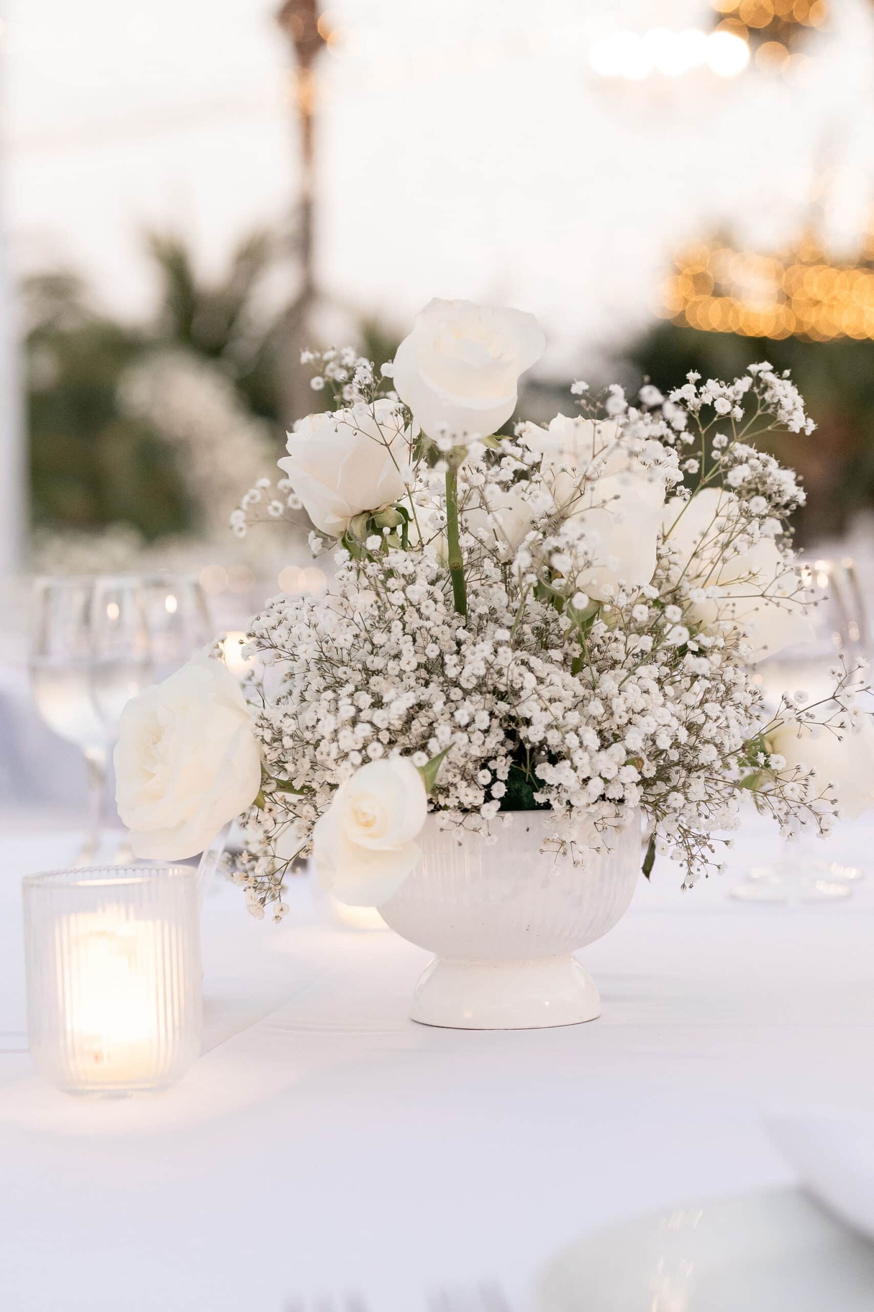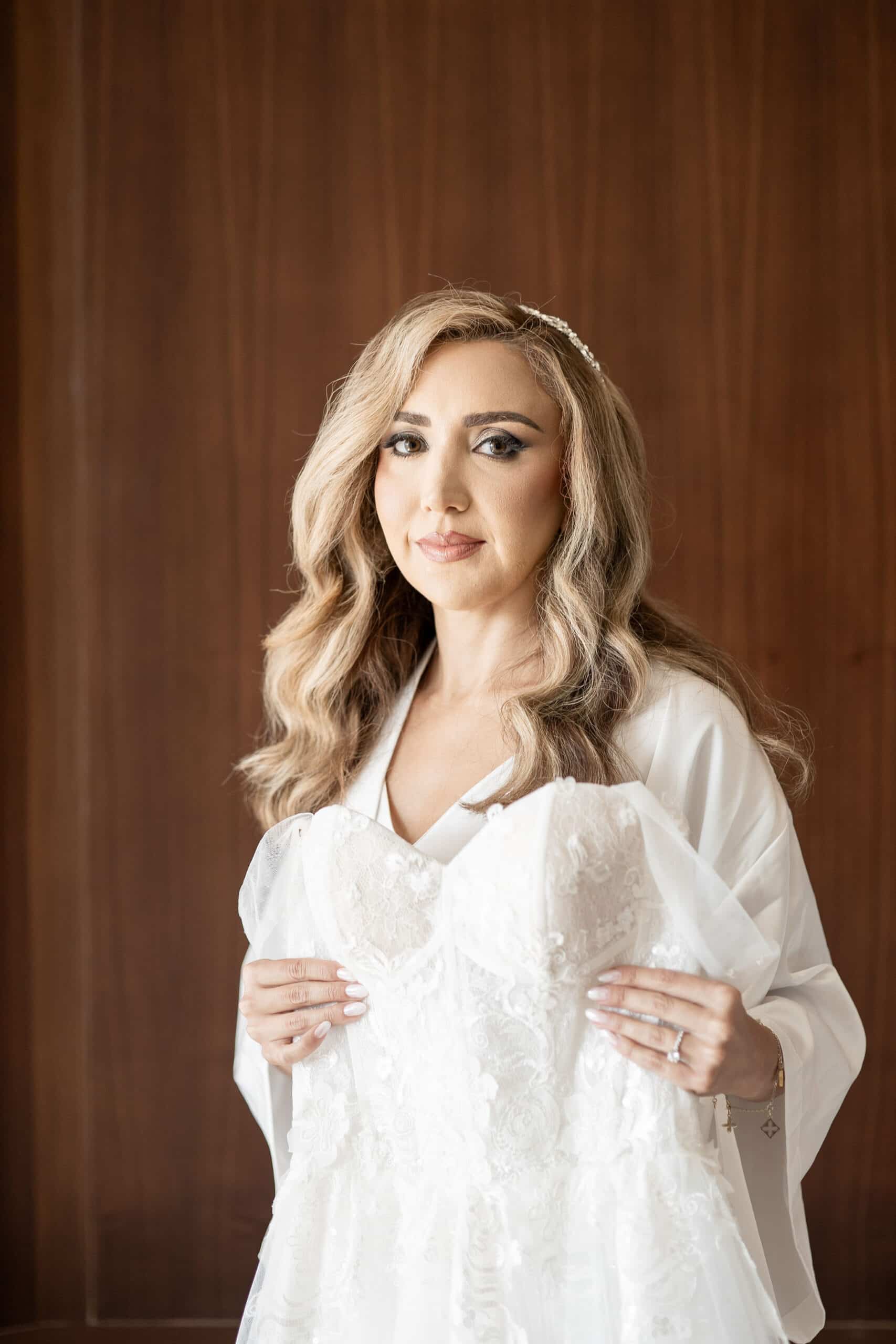 The ceremony was held in an idyllic setting framed by lush greenery and a breathtaking circular floral arch filled with soft white roses and baby’s breath. With the water gently flowing behind them and their closest loved ones watching, Kamelia and Amir exchanged vows with genuine emotion in their voices and tears in their eyes. It was a deeply touching ceremony, full of connection and grace, where every detail was carefully chosen to reflect their story.
