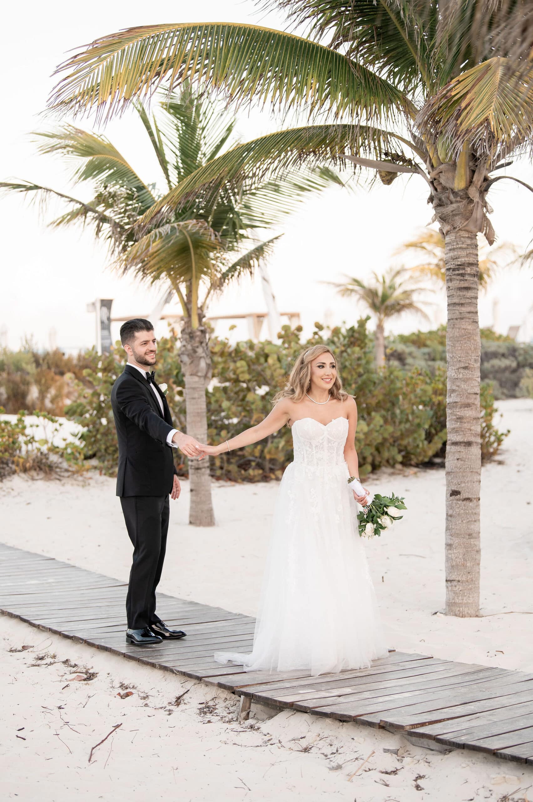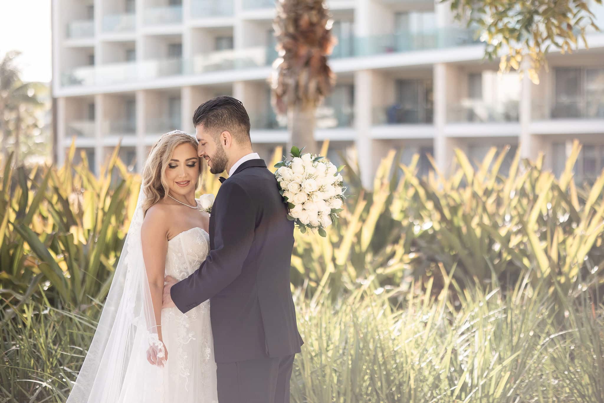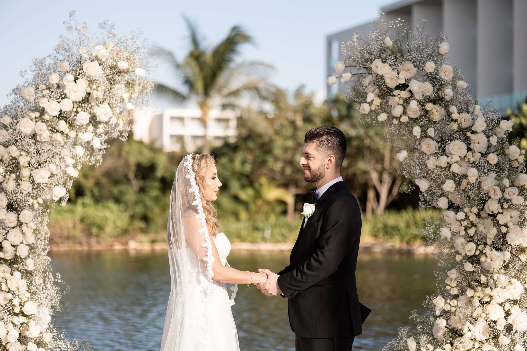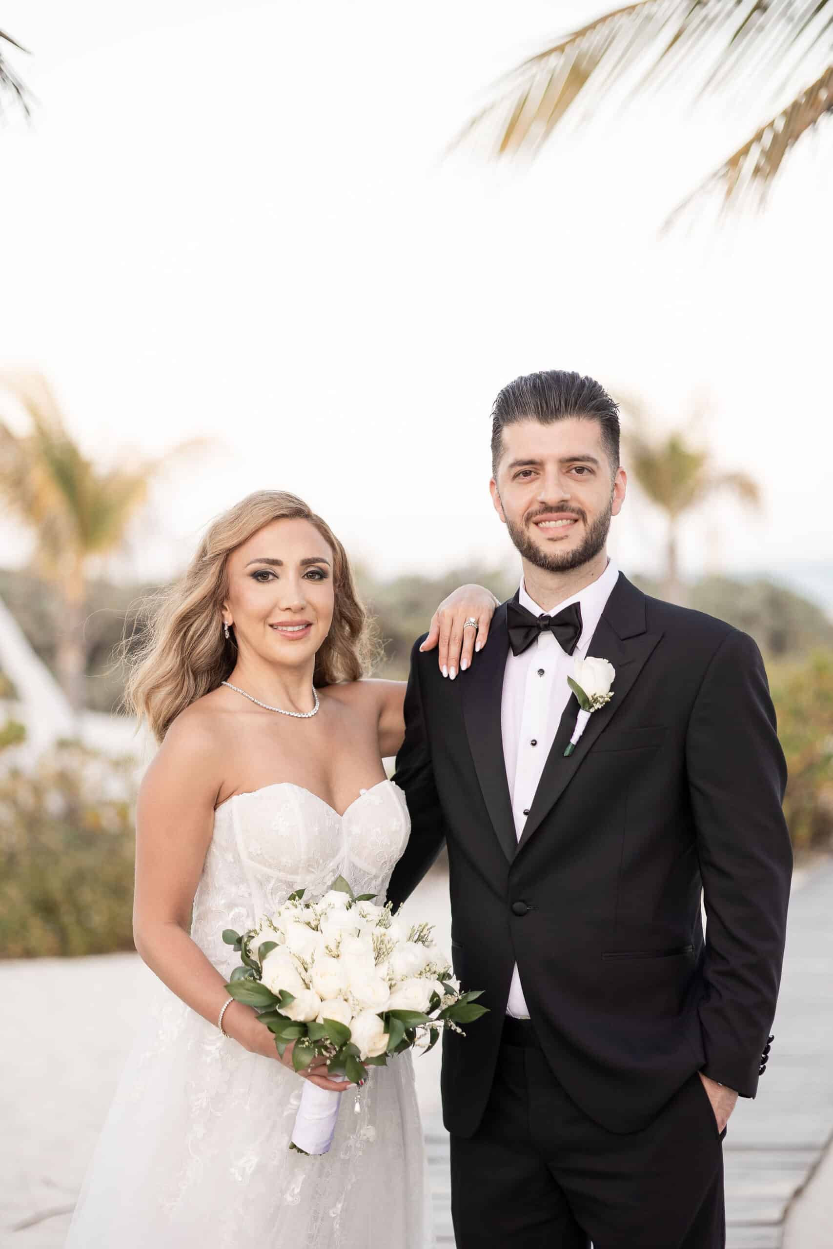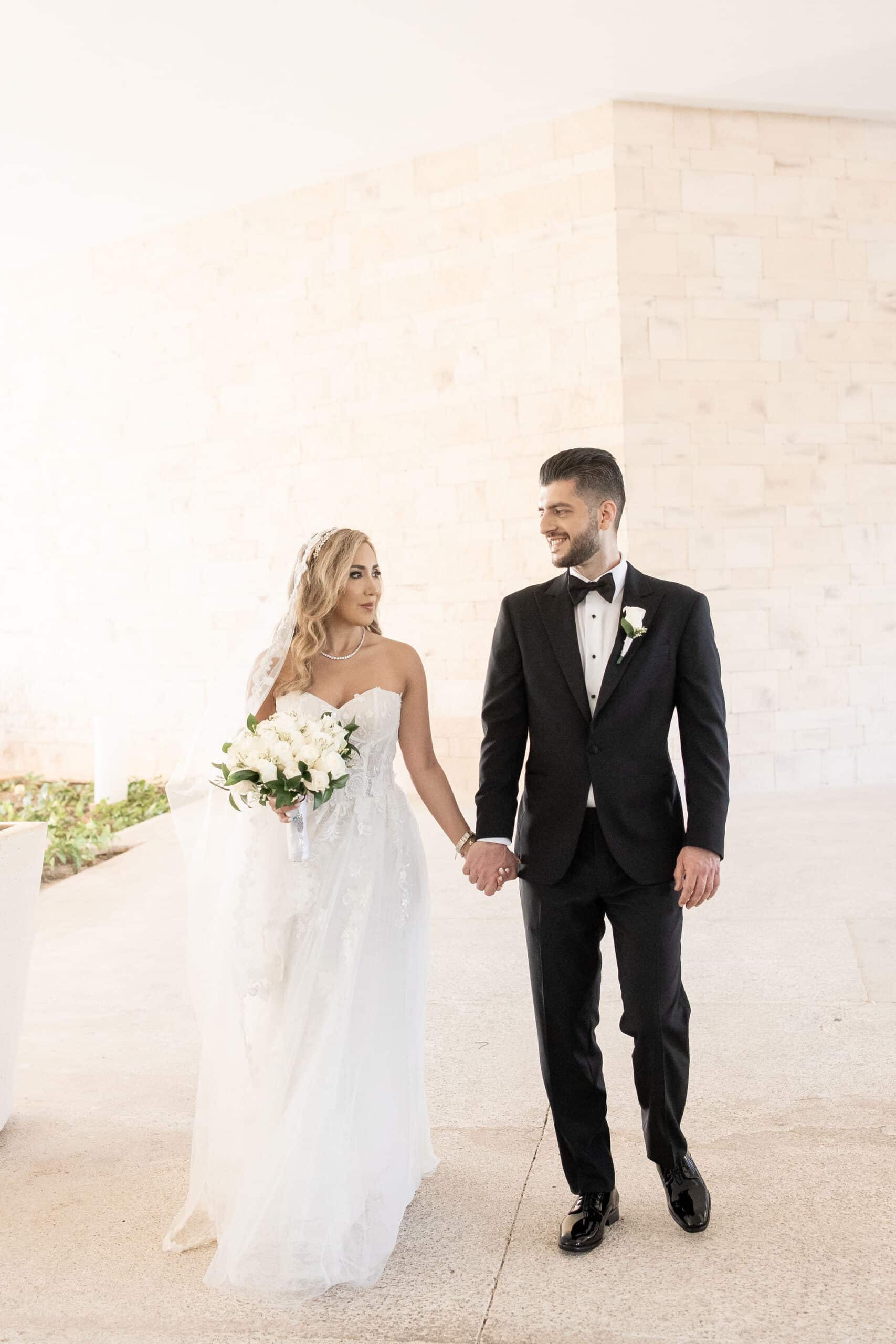 Kamelia and Amir’s wedding at the stunning Grand Palladium Costa Mujeres was a celebration filled with elegance, joy, and heartfelt emotion. Their big day began with a dreamy boat ride through the resort’s tranquil waterways—just the two of them holding hands, stealing kisses, and soaking in the beauty of the moment. Kamelia, in her delicate lace veil and flowing gown, looked ethereal, while Amir stood beside her in a classic black tux, both radiating love and excitement.