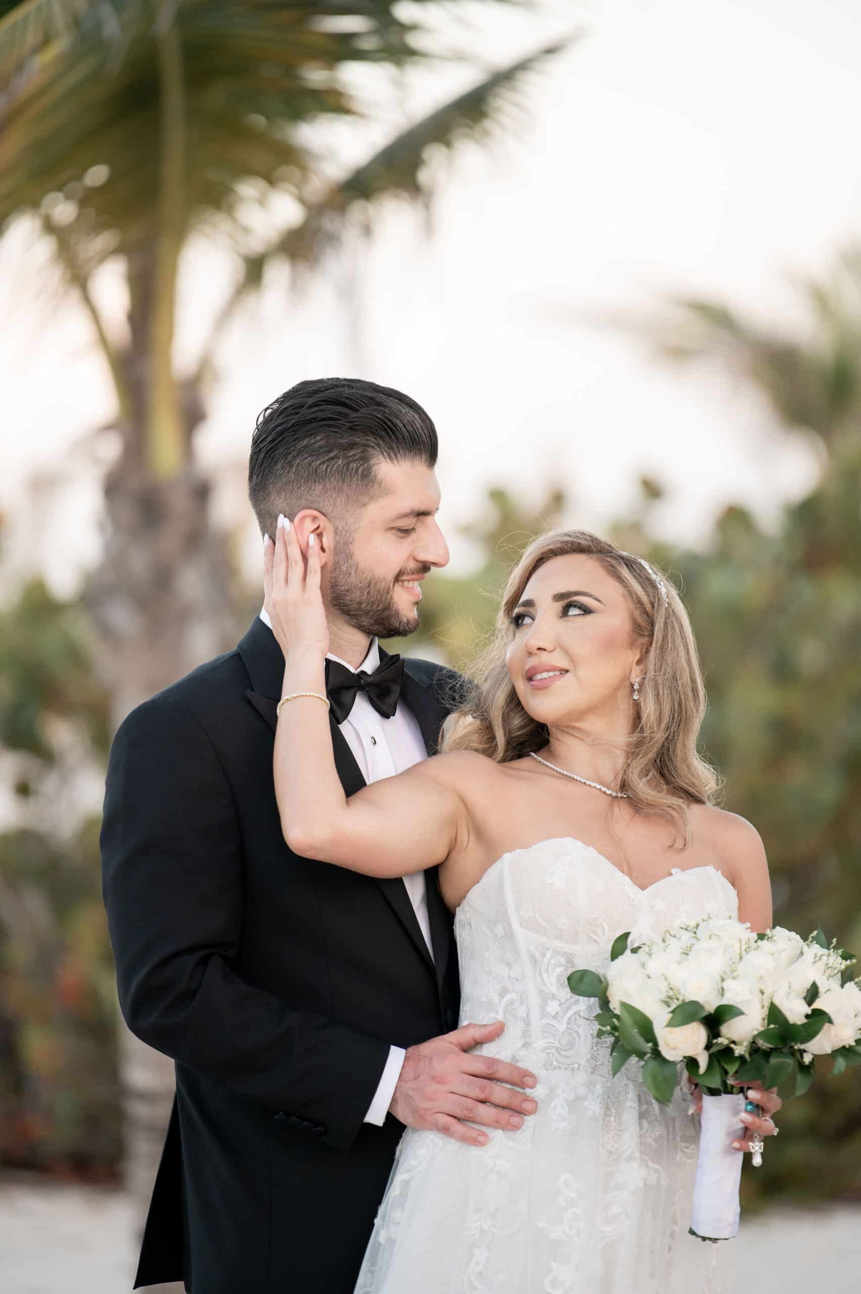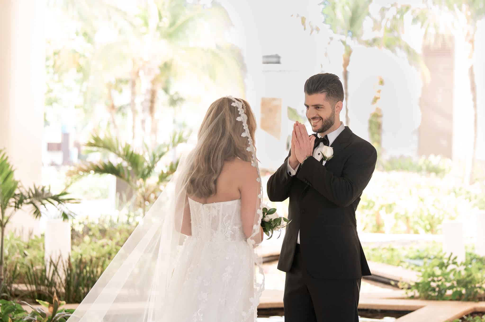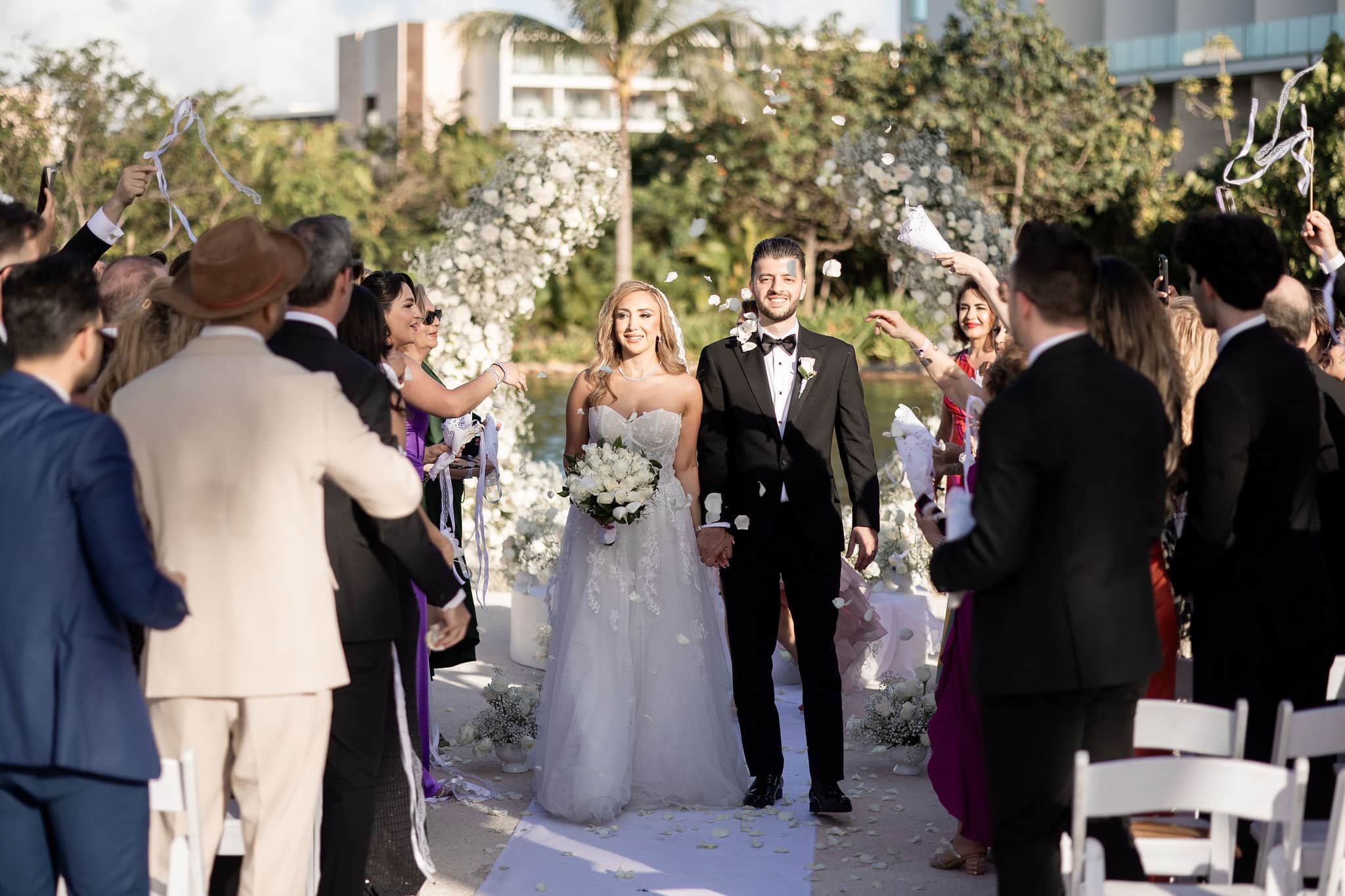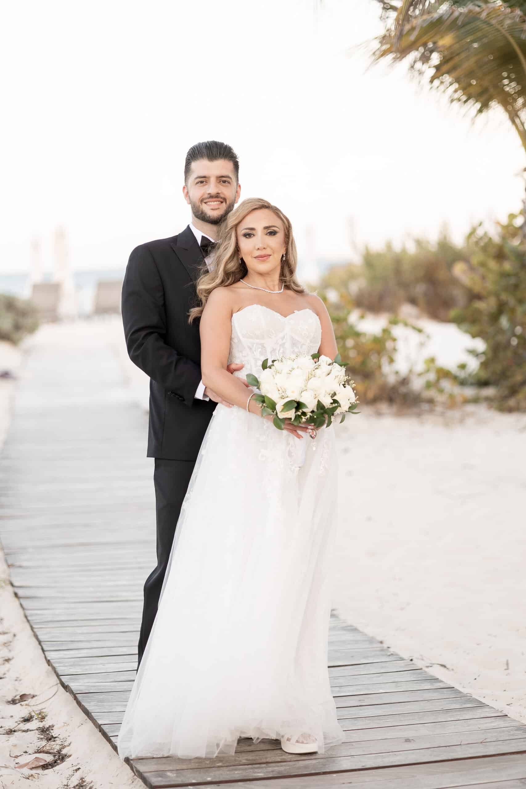 Kamelia and Amir’s wedding at the stunning Grand Palladium Costa Mujeres was a celebration filled with elegance, joy, and heartfelt emotion. Their big day began with a dreamy boat ride through the resort’s tranquil waterways—just the two of them holding hands, stealing kisses, and soaking in the beauty of the moment. Kamelia, in her delicate lace veil and flowing gown, looked ethereal, while Amir stood beside her in a classic black tux, both radiating love and excitement.