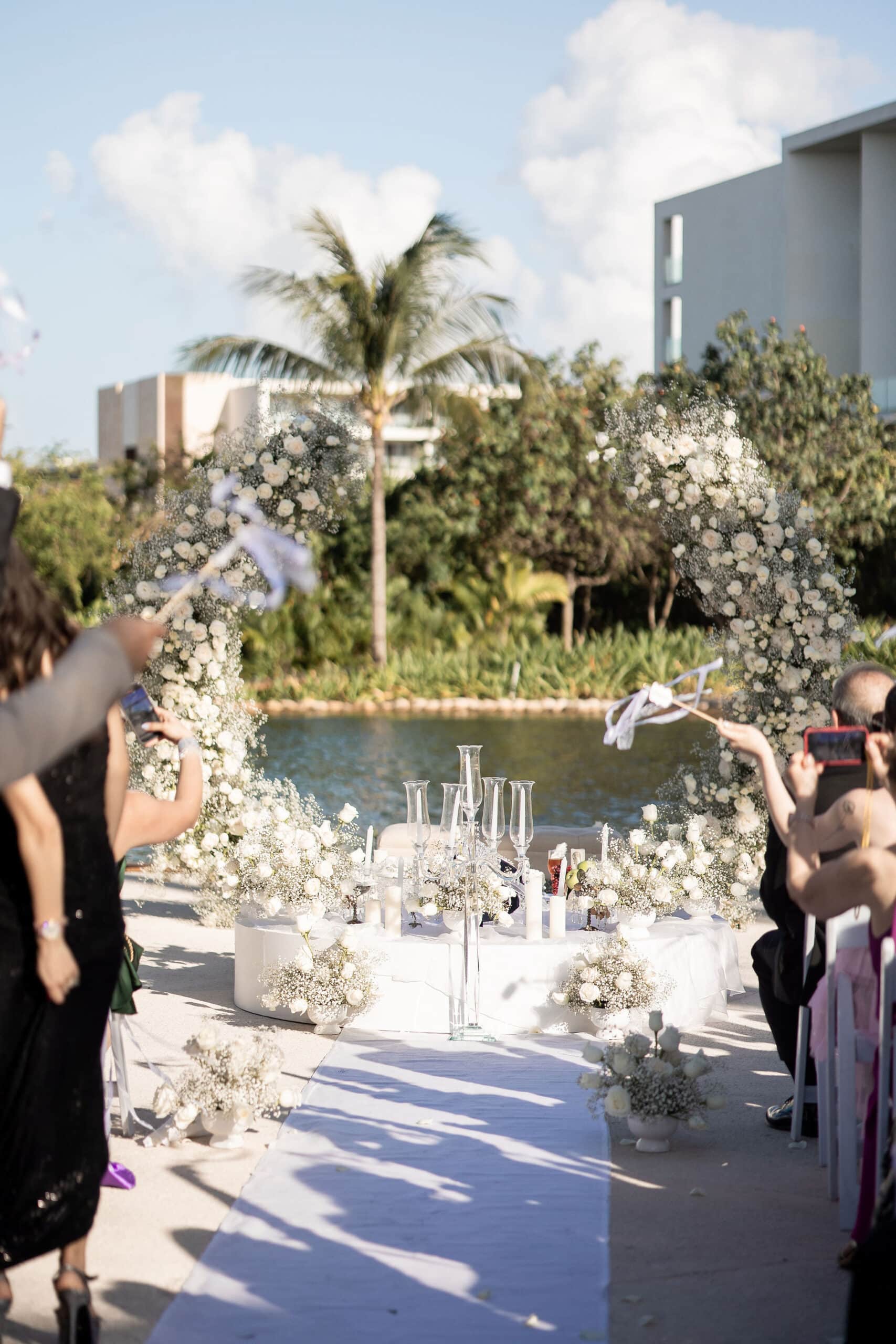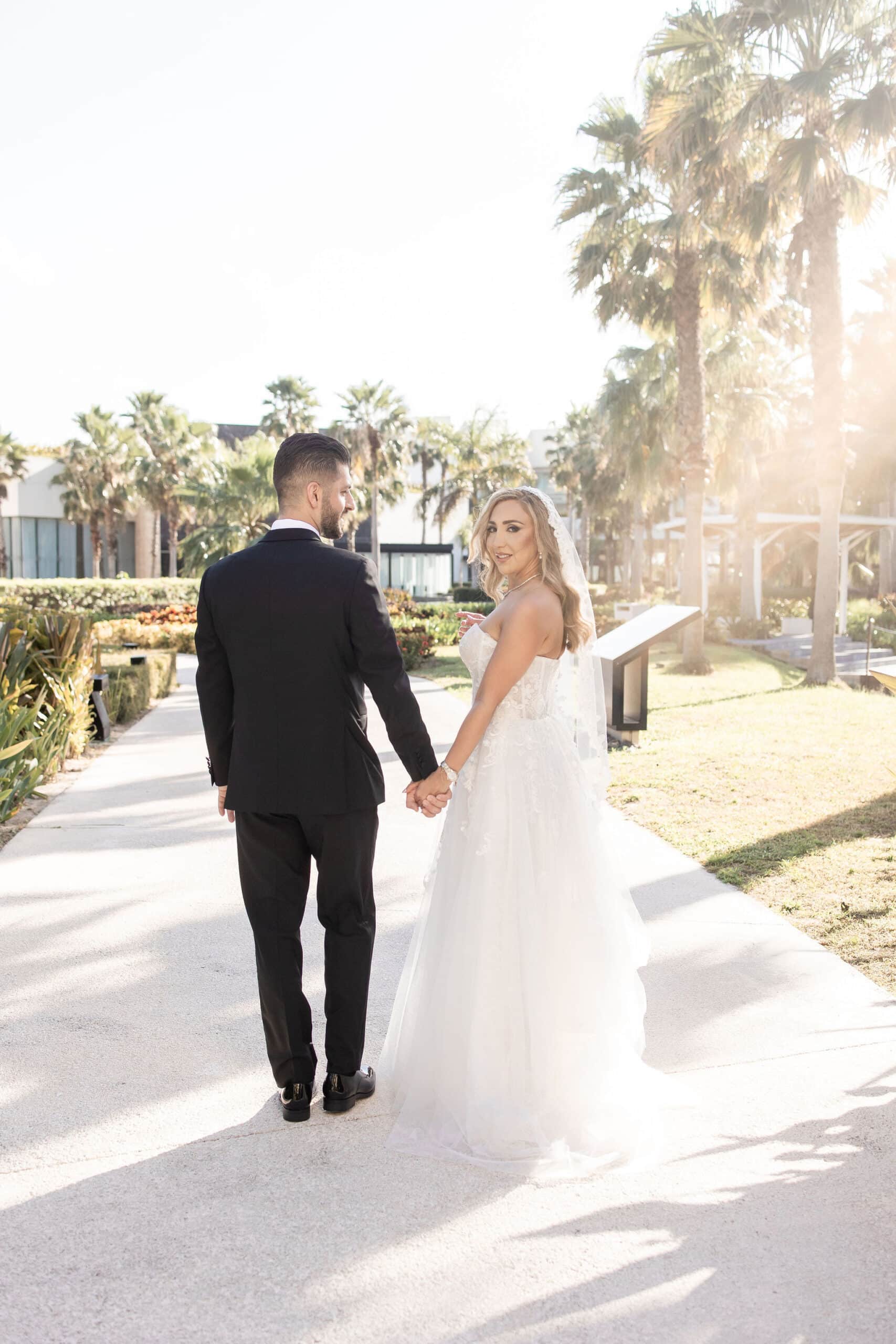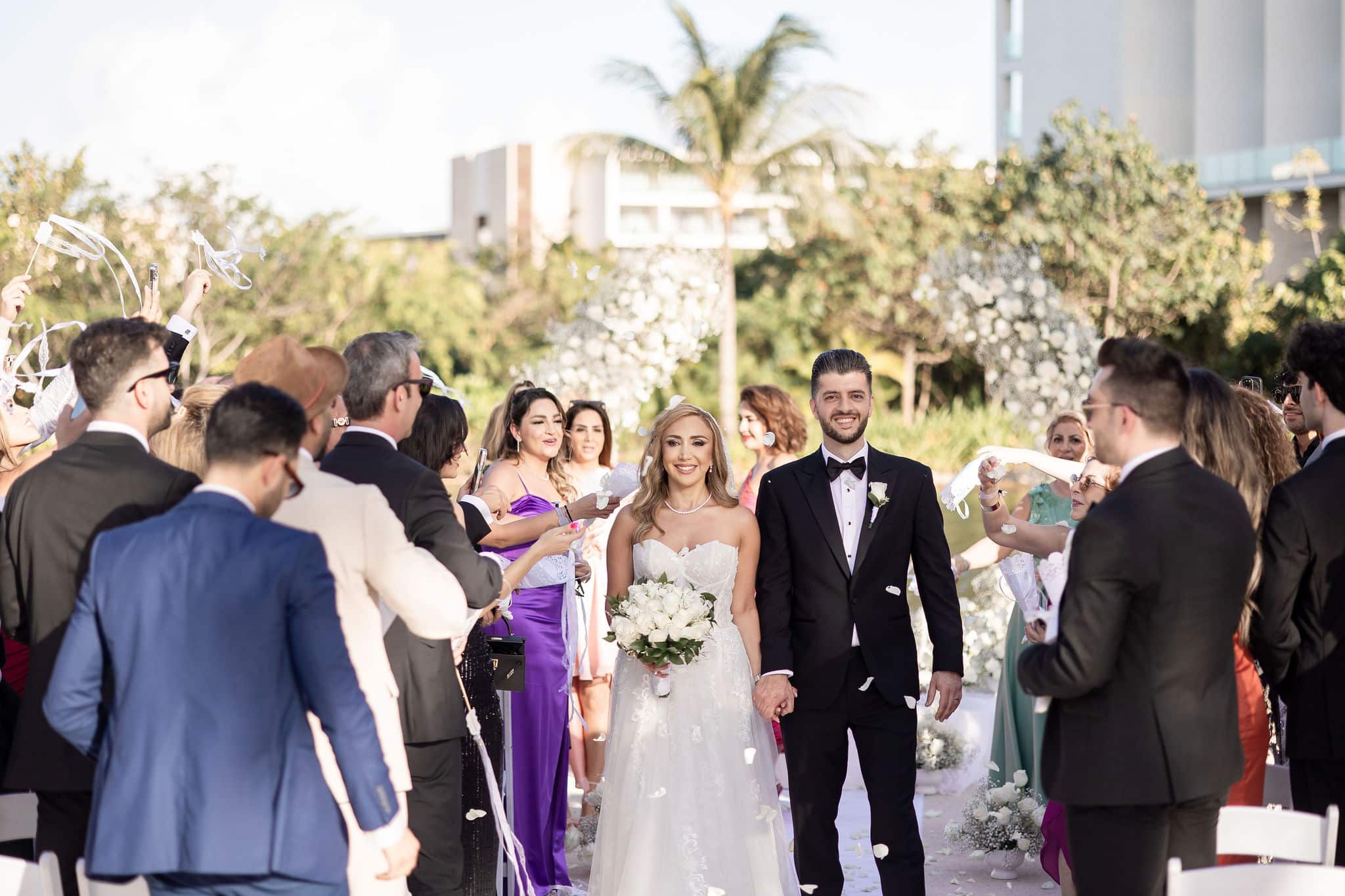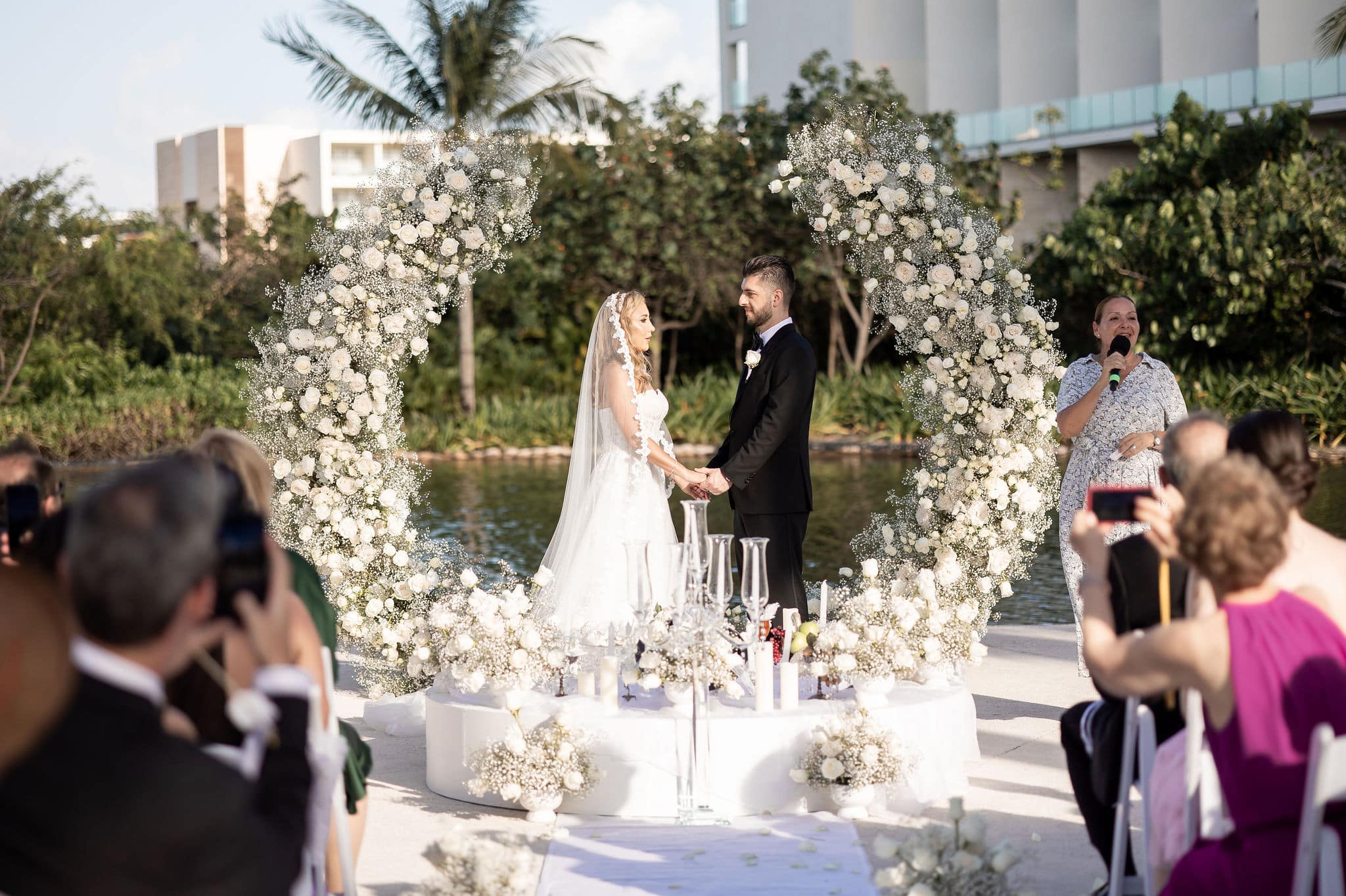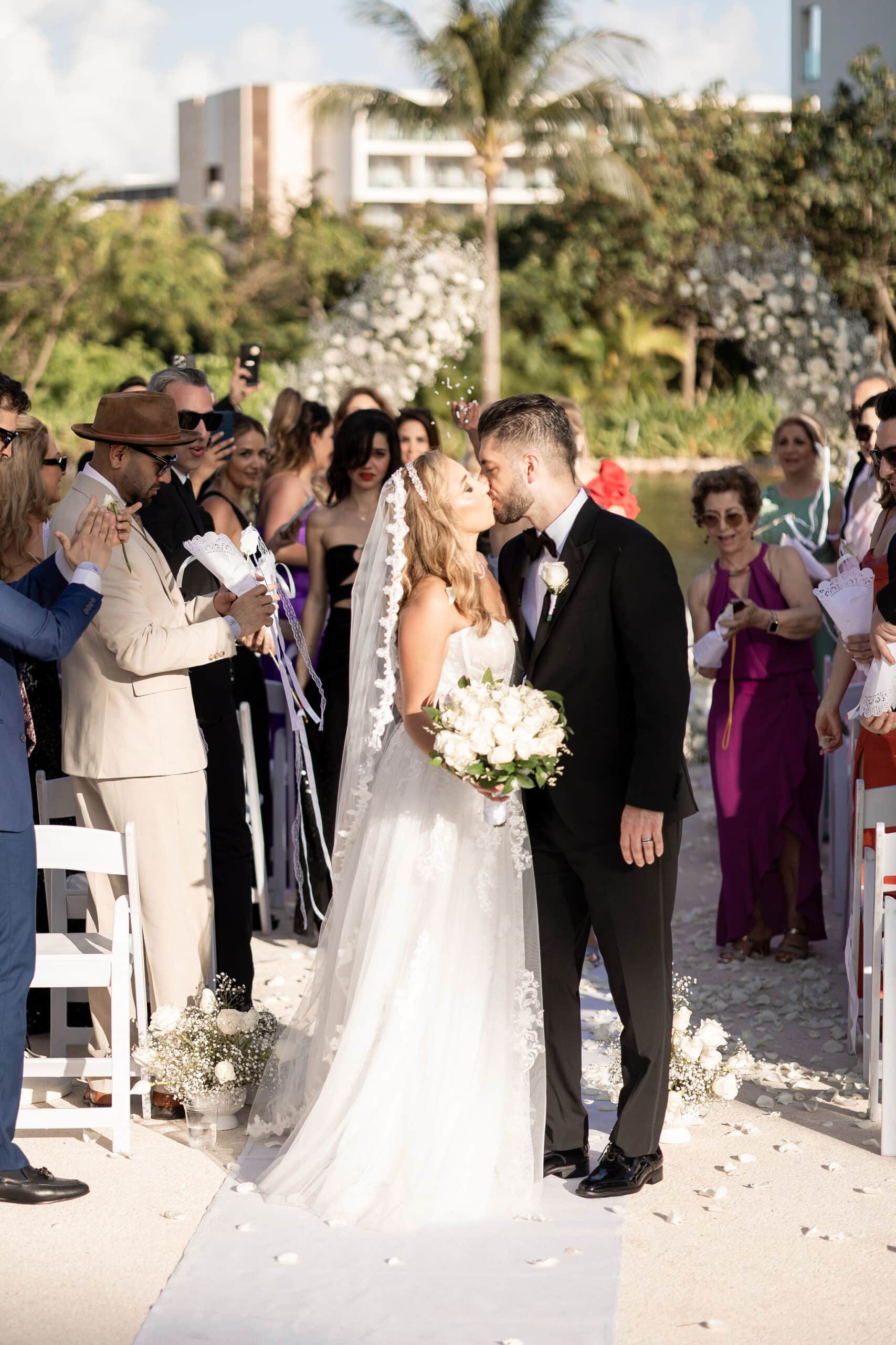 Kamelia and Amir’s wedding at the stunning Grand Palladium Costa Mujeres was a celebration filled with elegance, joy, and heartfelt emotion. Their big day began with a dreamy boat ride through the resort’s tranquil waterways—just the two of them holding hands, stealing kisses, and soaking in the beauty of the moment. Kamelia, in her delicate lace veil and flowing gown, looked ethereal, while Amir stood beside her in a classic black tux, both radiating love and excitement.