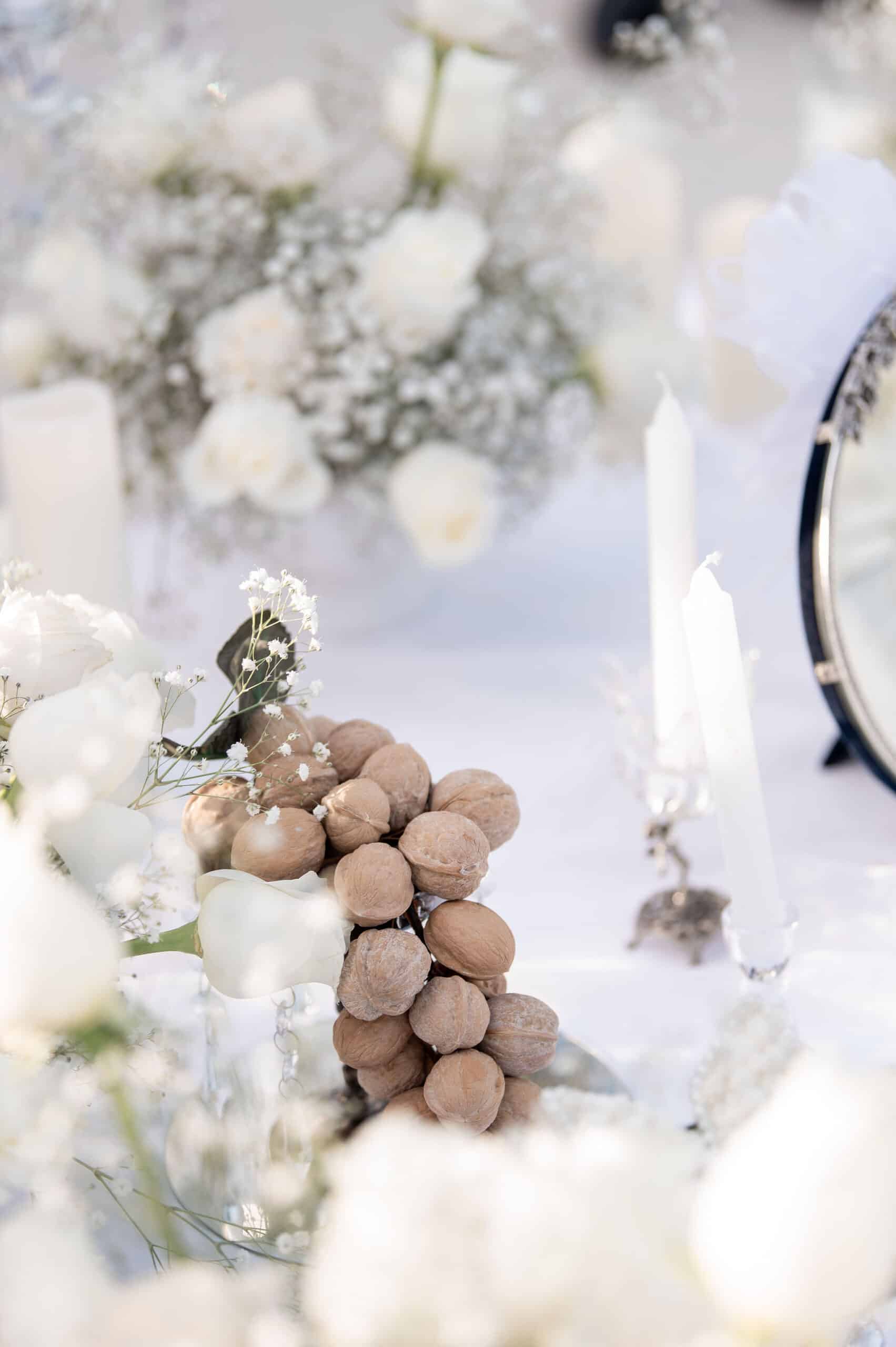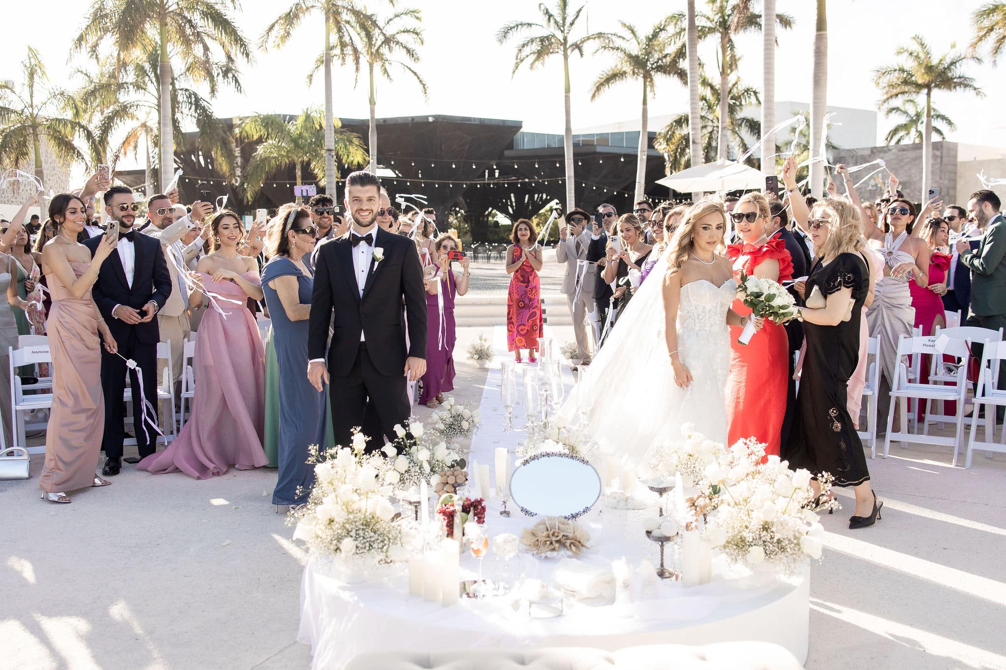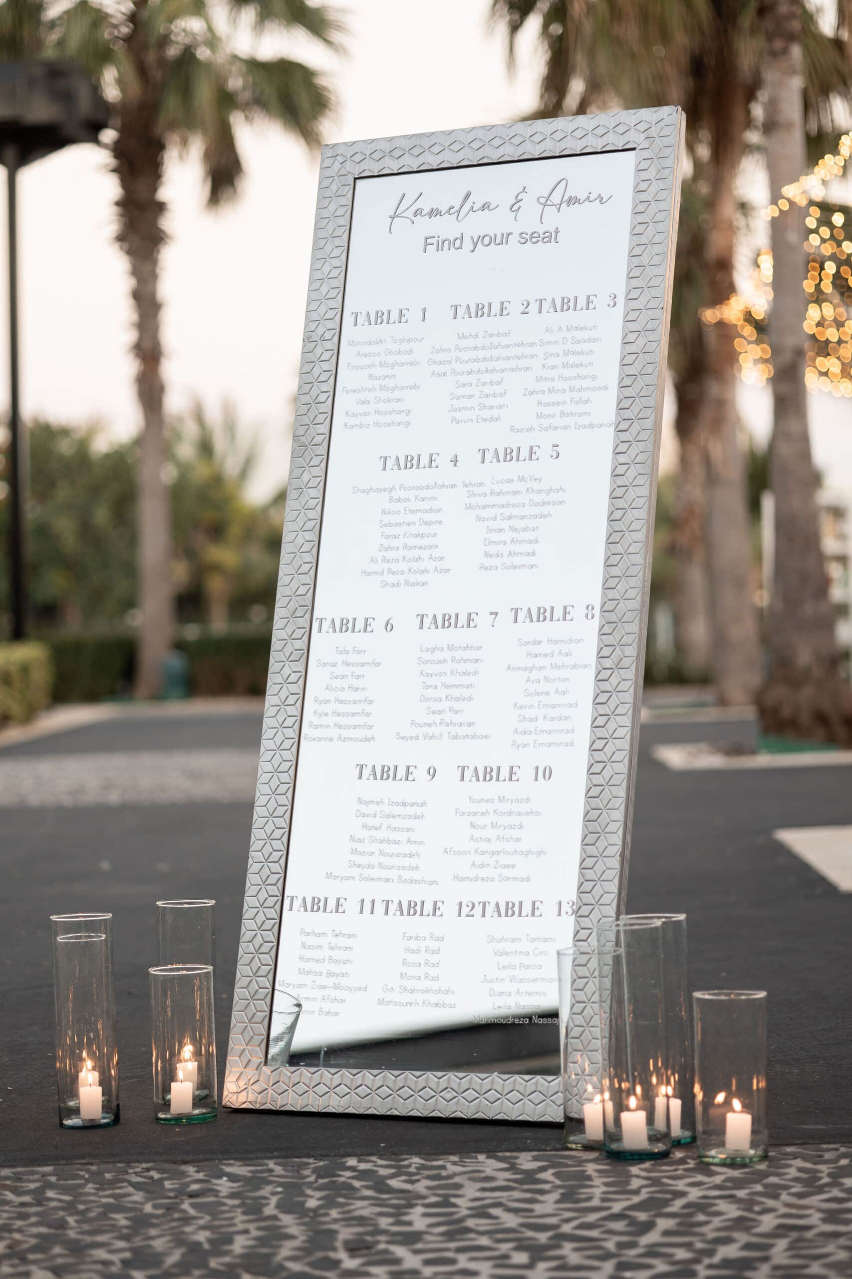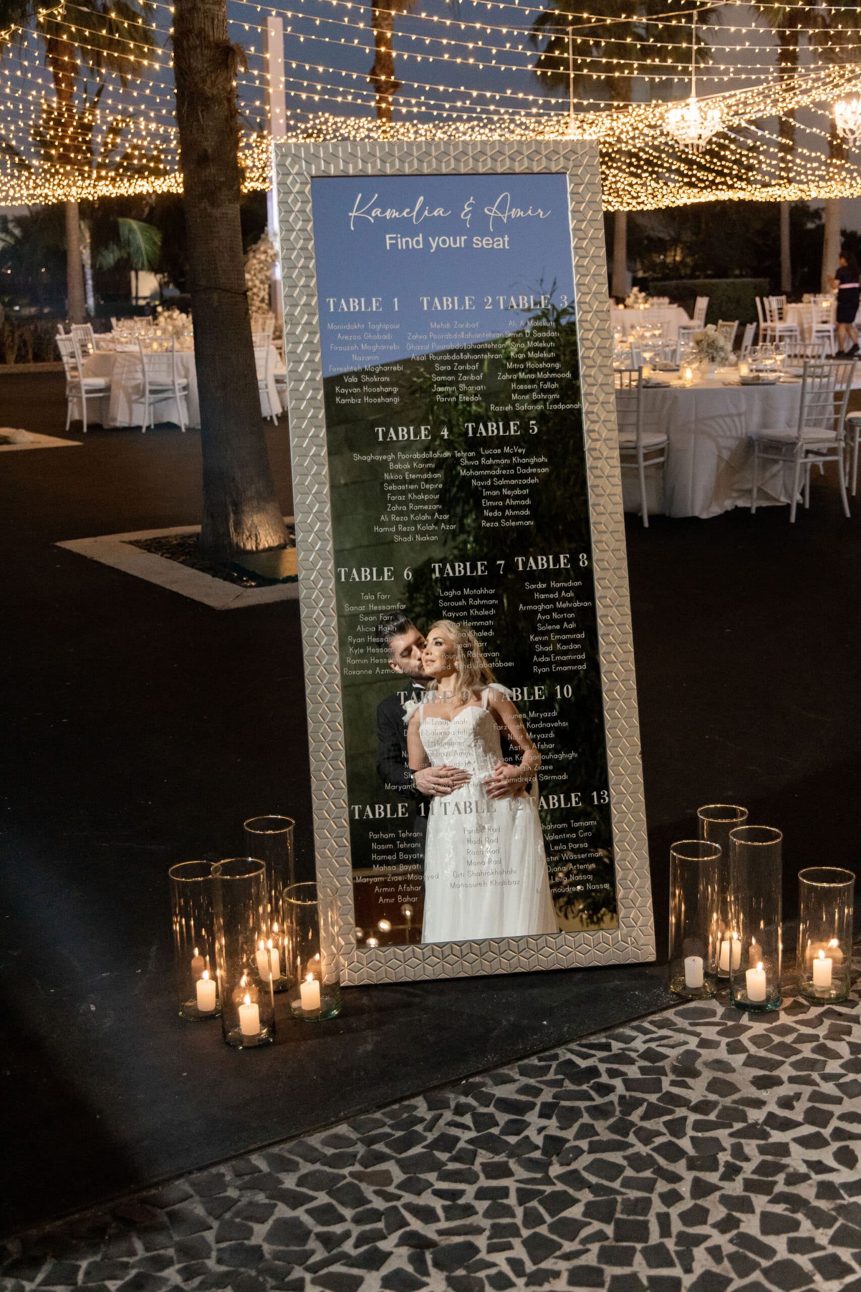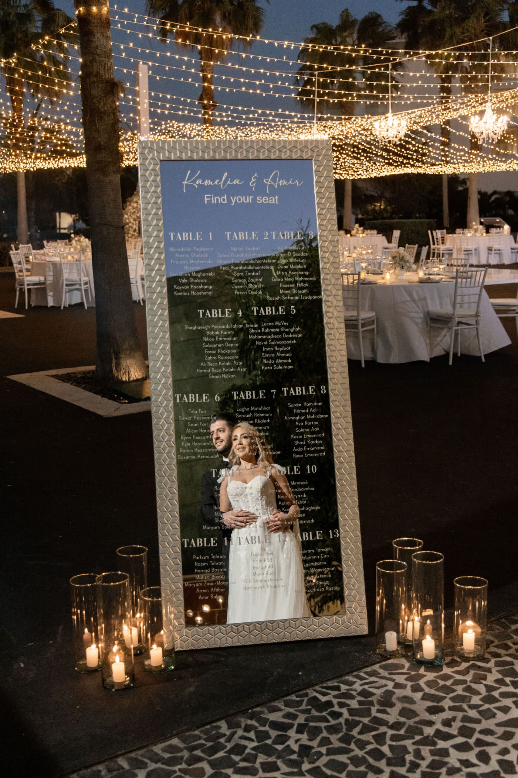The evening continued with an elegant outdoor reception where soft candlelight, mirrored tables, and lush florals created a dreamy atmosphere. The décor was modern and romantic, with gold flatware and delicate details that reflected their refined taste. Laughter, dancing, and heartfelt toasts filled the night as friends and family celebrated the beginning of a beautiful new chapter for Kamelia and Amir. Their wedding wasn’t just a stunning visual experience—it was a day full of meaning, love, and unforgettable memories.