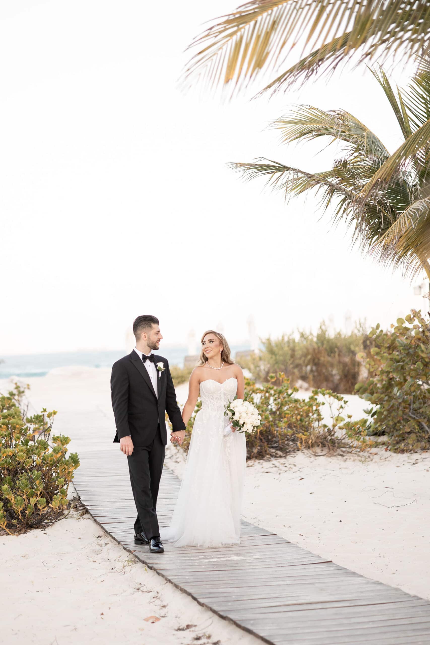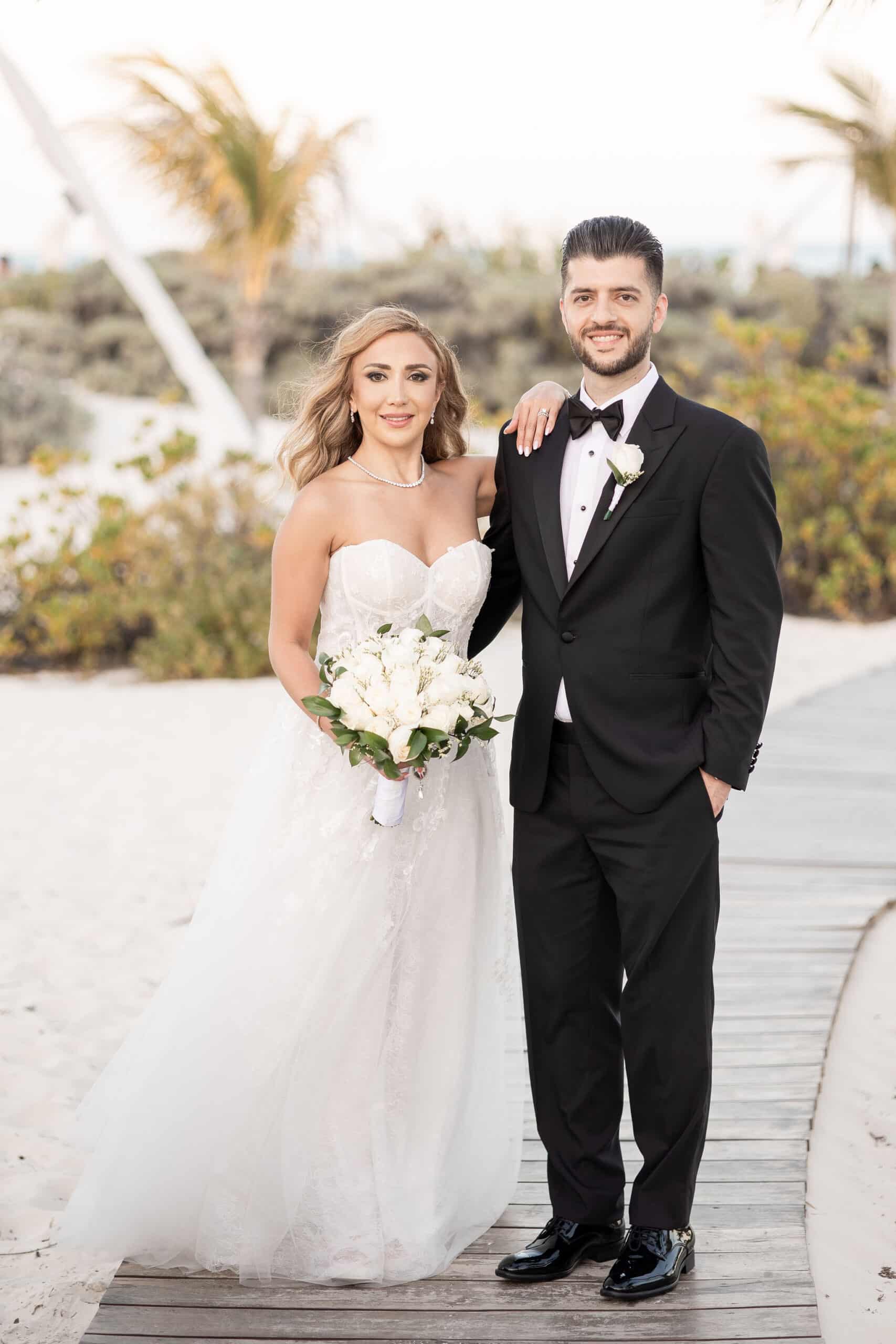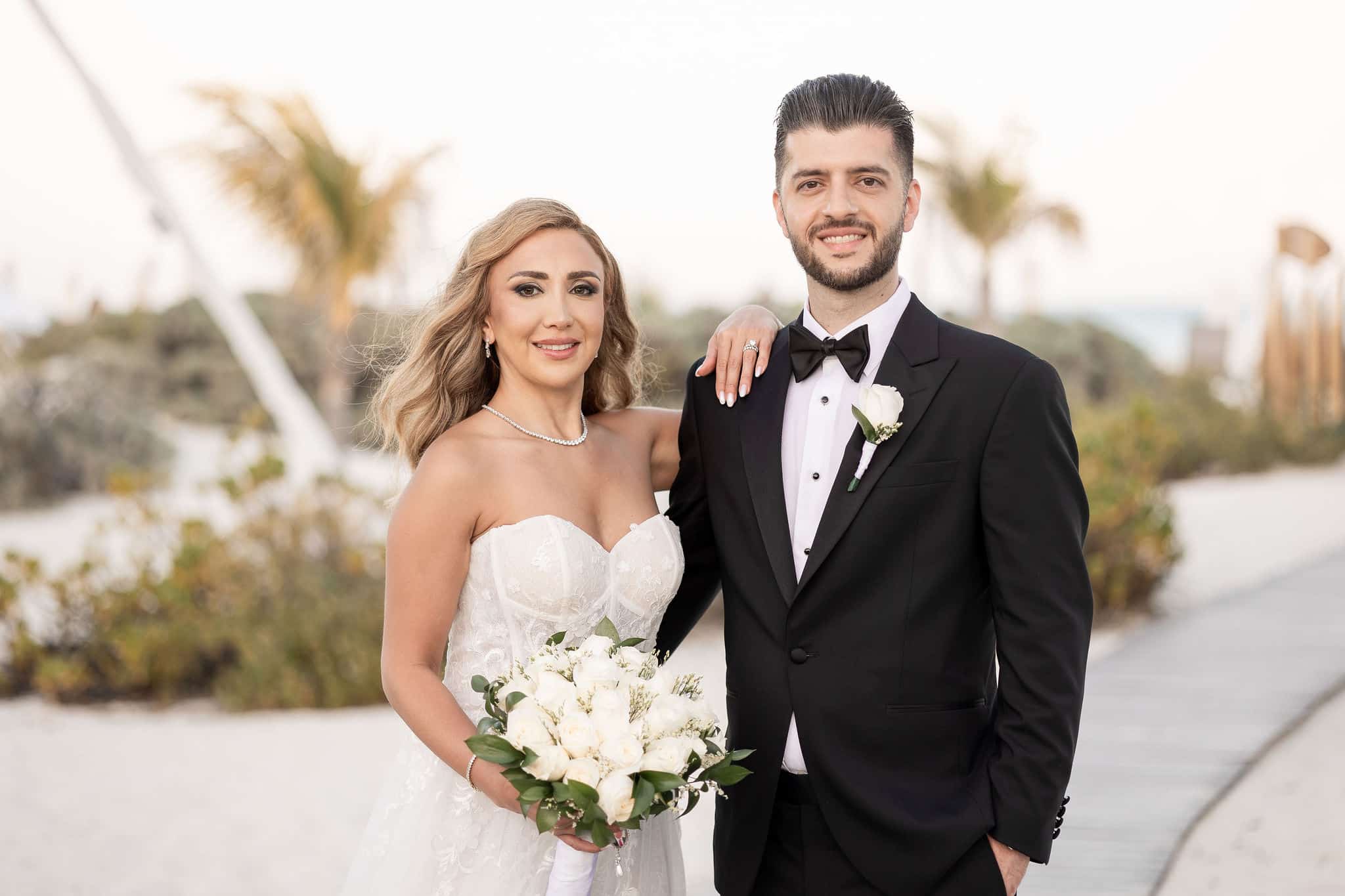 As newlyweds, they were showered with rose petals by cheering guests, creating a joyful and cinematic moment that set the tone for the rest of the evening. Later, they walked hand-in-hand along the white sand beach, capturing romantic portraits against the glowing light of the setting sun. Their chemistry was effortless, and every image was a timeless expression of their love and happiness.